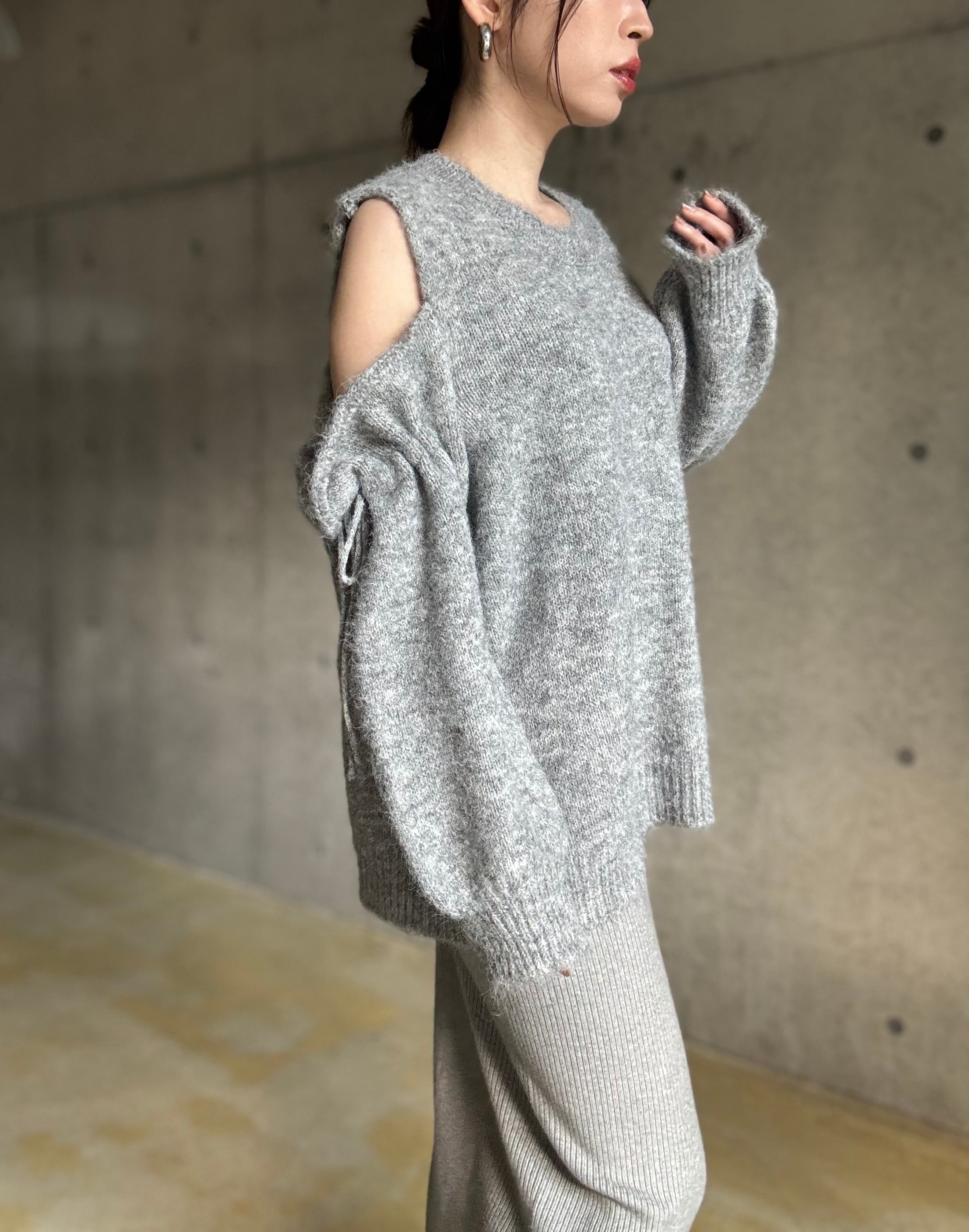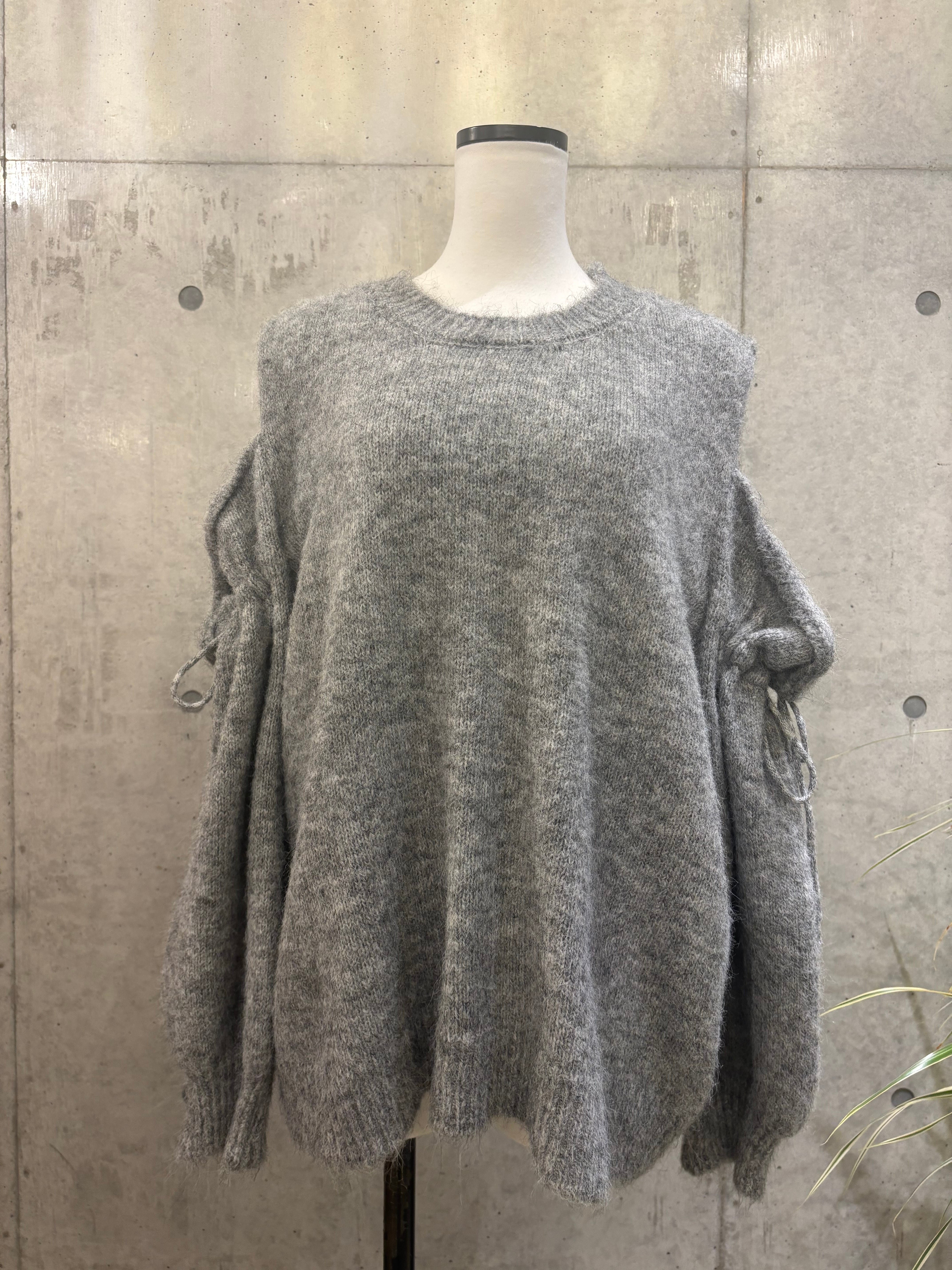 【予約販売】オープンショルダーリボンコードニット【グレー】