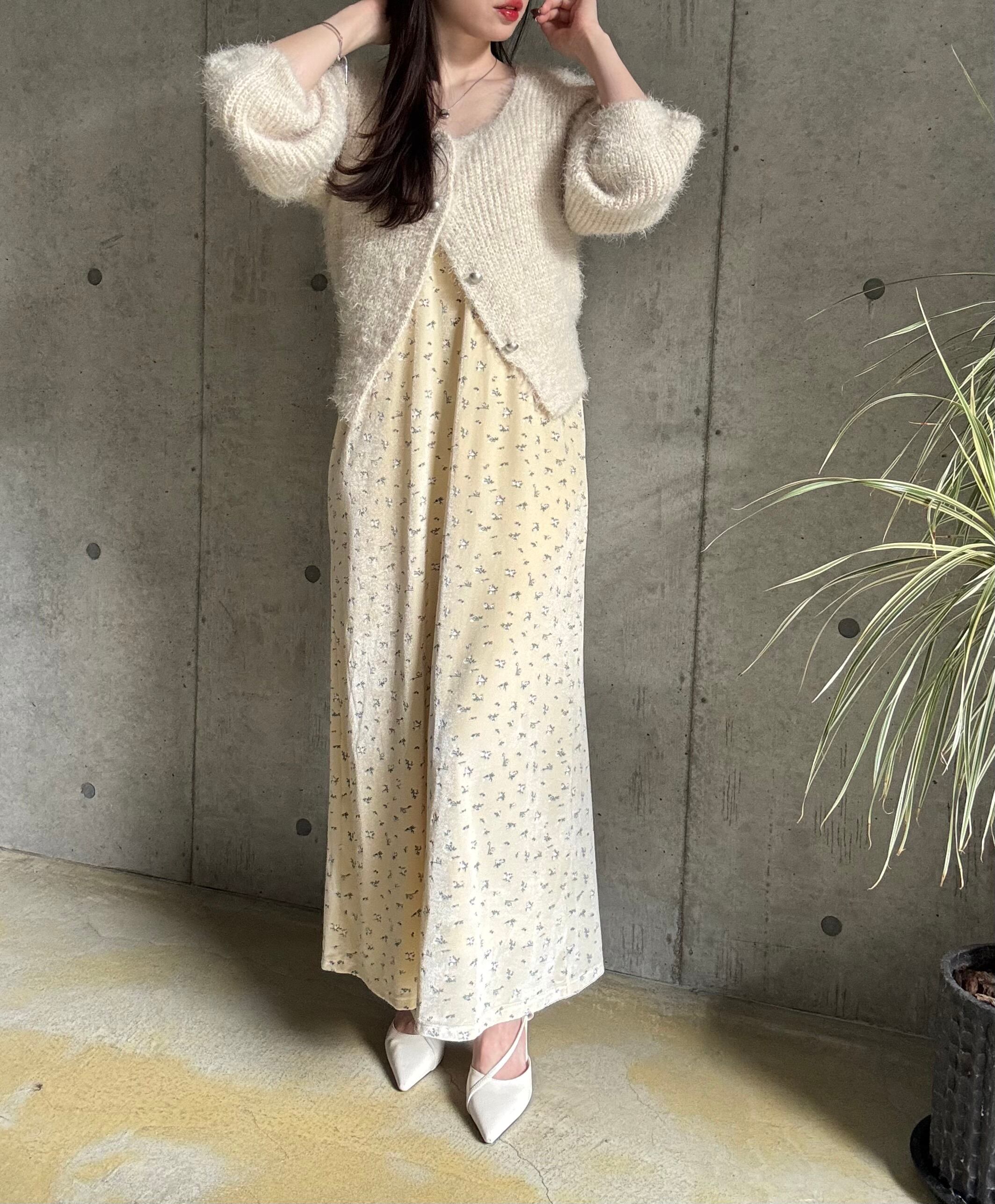 スクエアパールシャギーカーディガン【アイボリー】