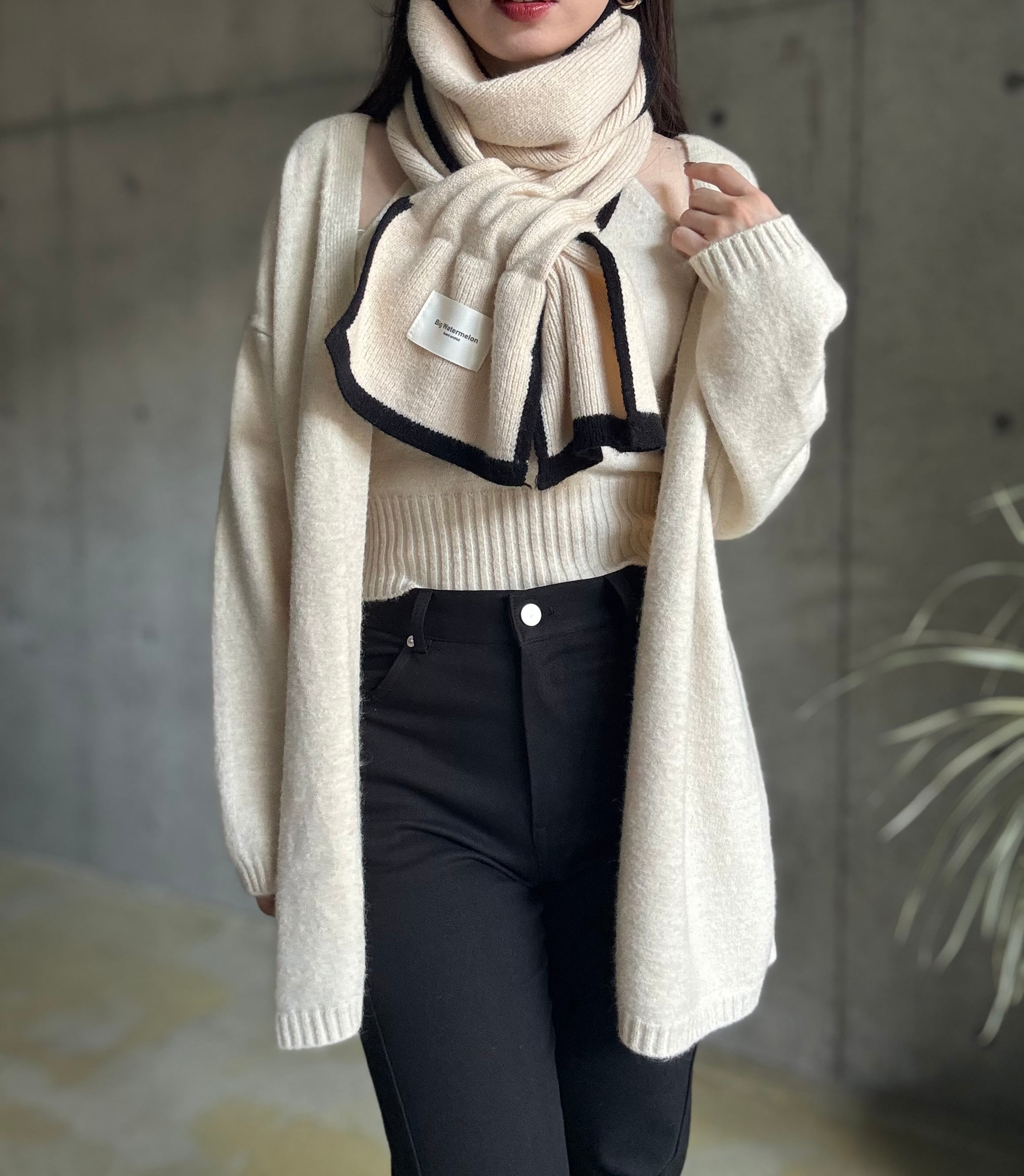 バイカラーパイピングとループデザインが上品な雰囲気のマフラー✨