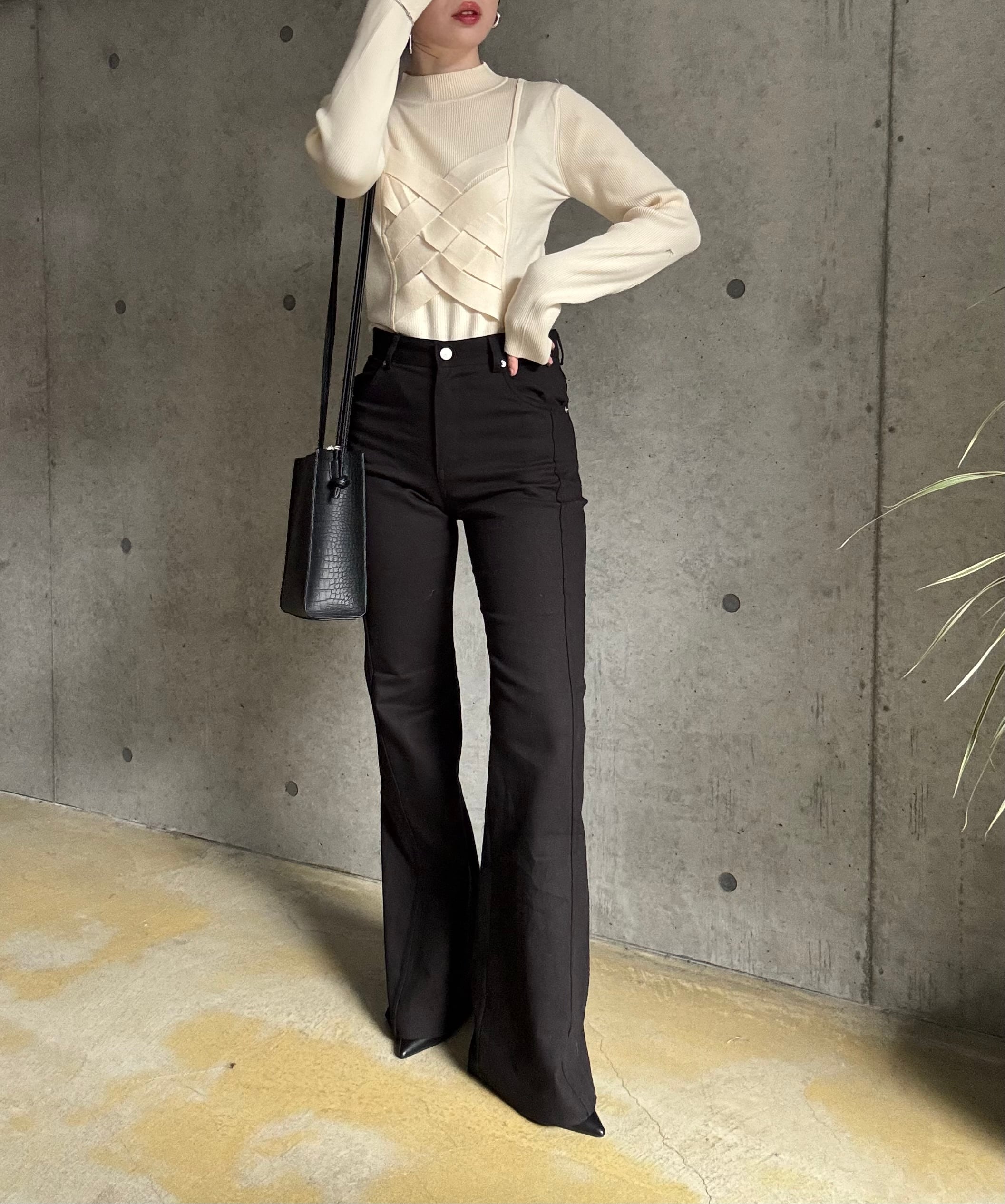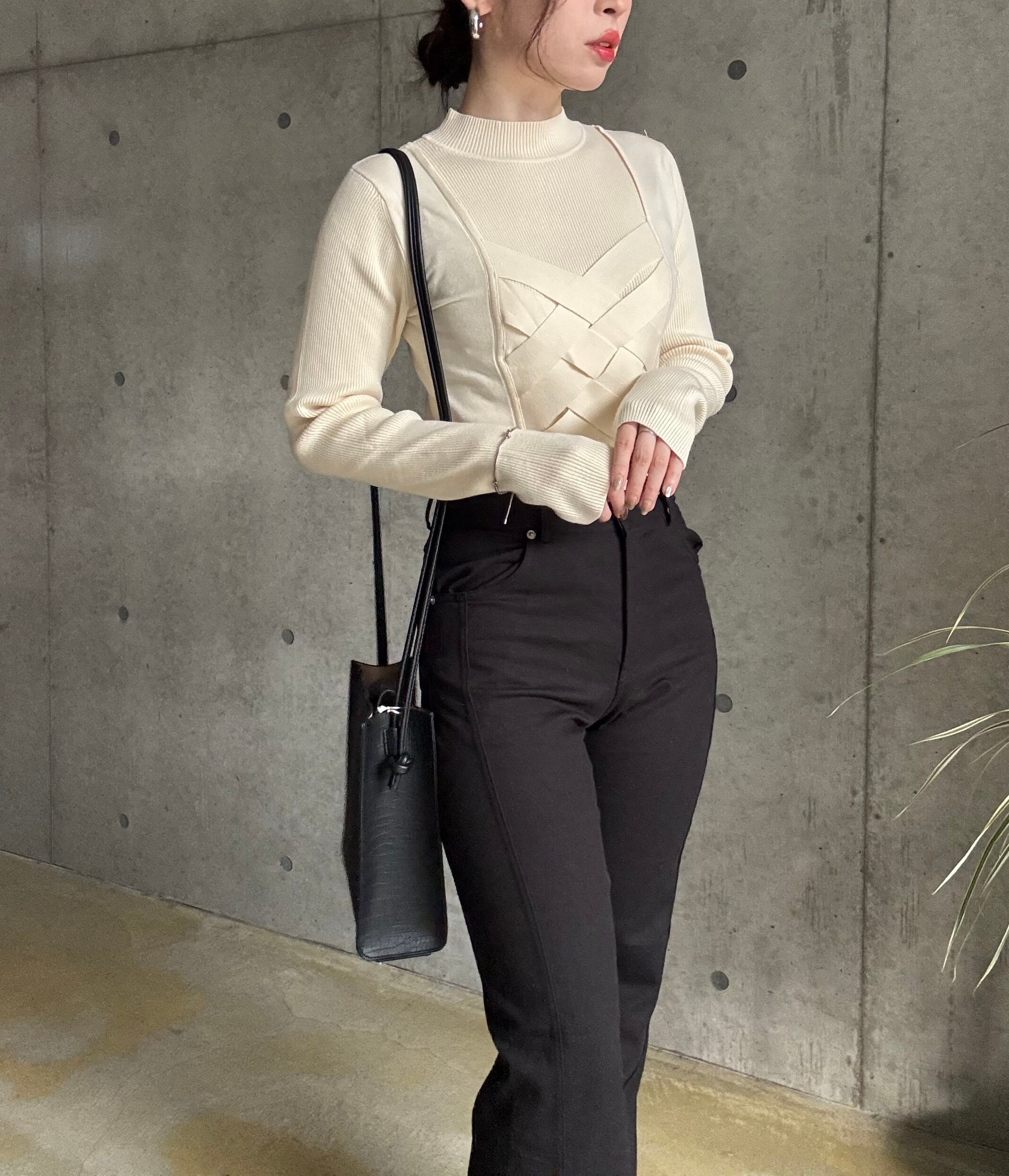 コルセット風にクロスしたデザインがポイントのニットtops✨