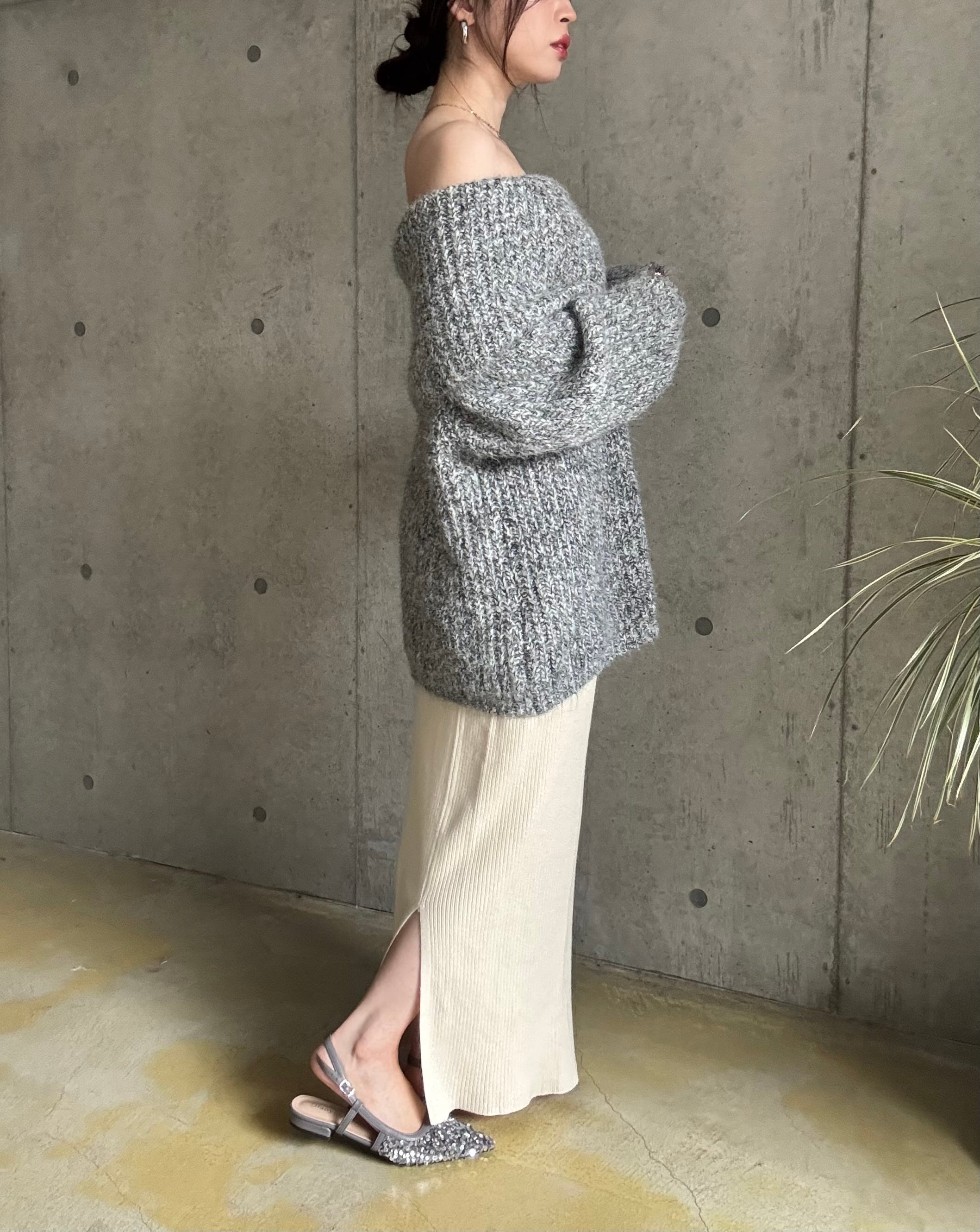 【12/10 21:00〜】MIXニットオフショルオーバーtops【グレー】