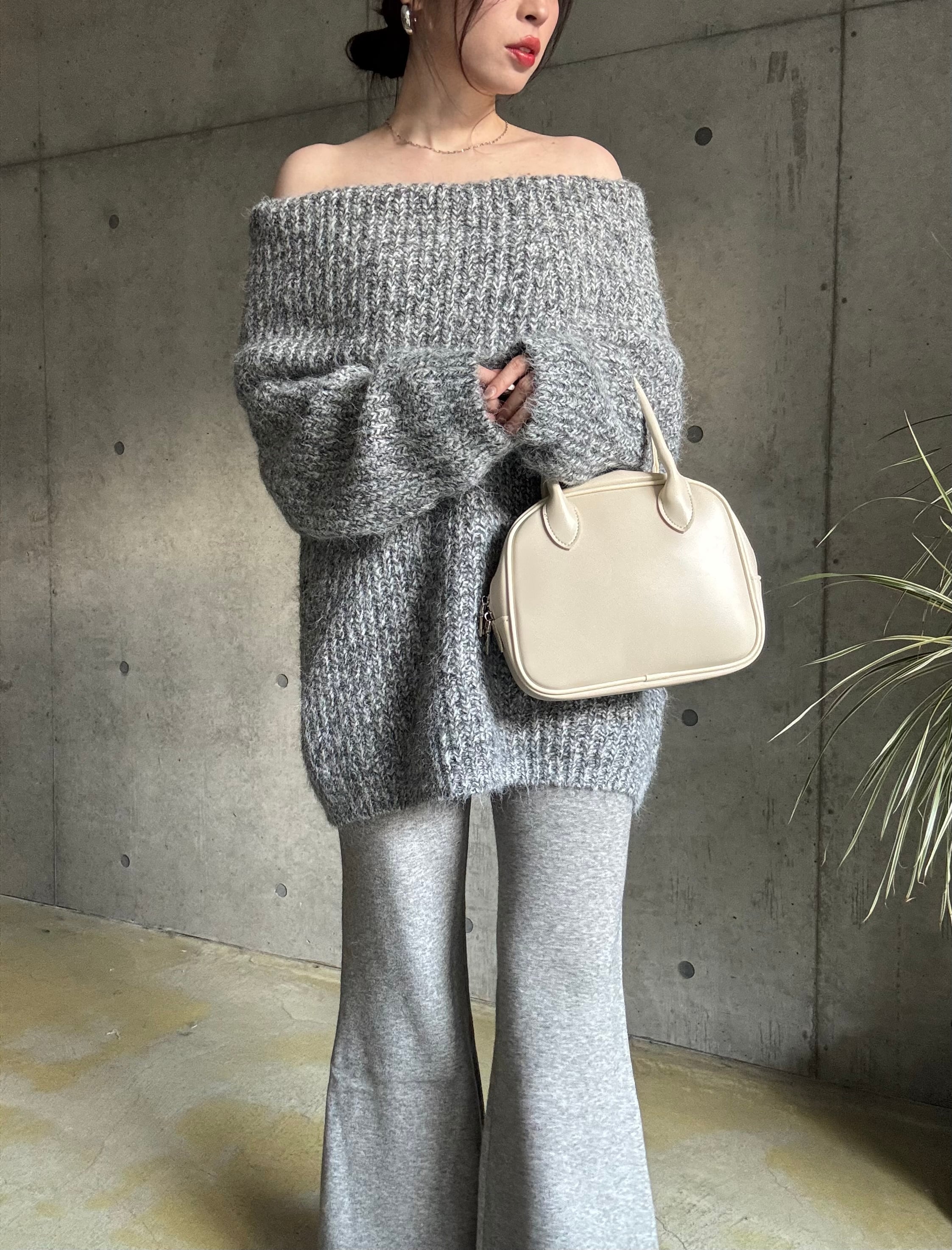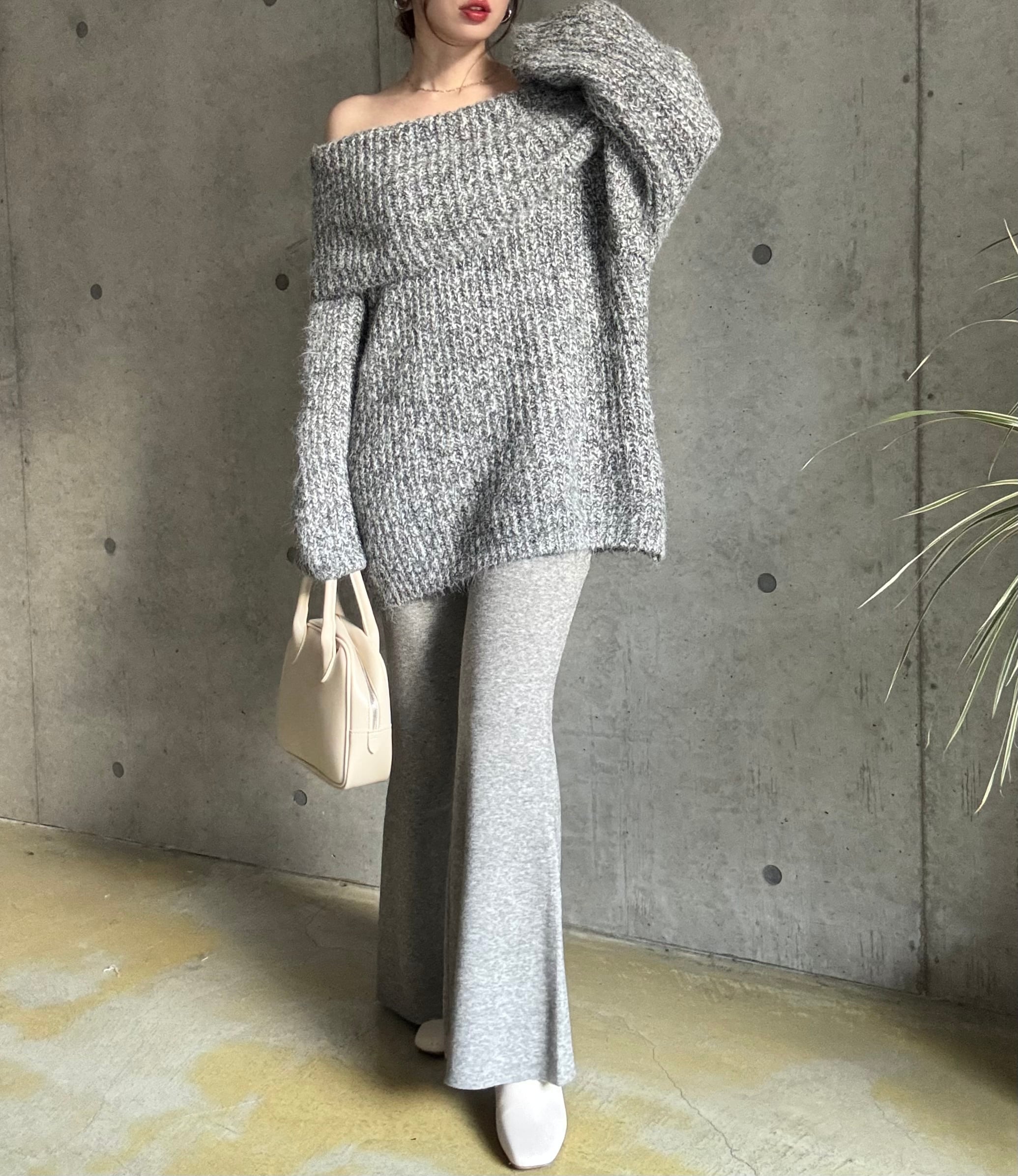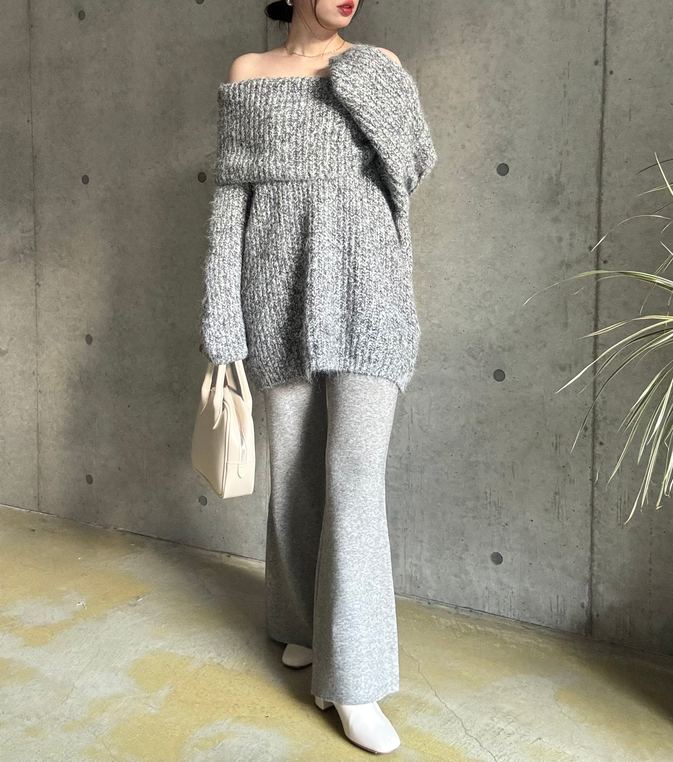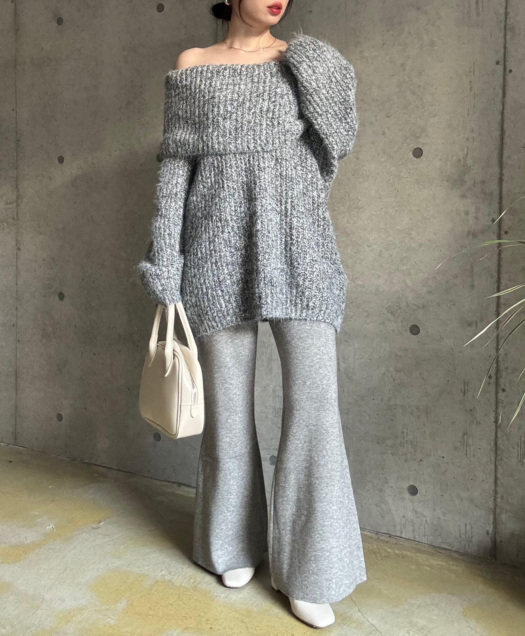 【12/10 21:00〜】裾フレアニットパンツ【グレー】