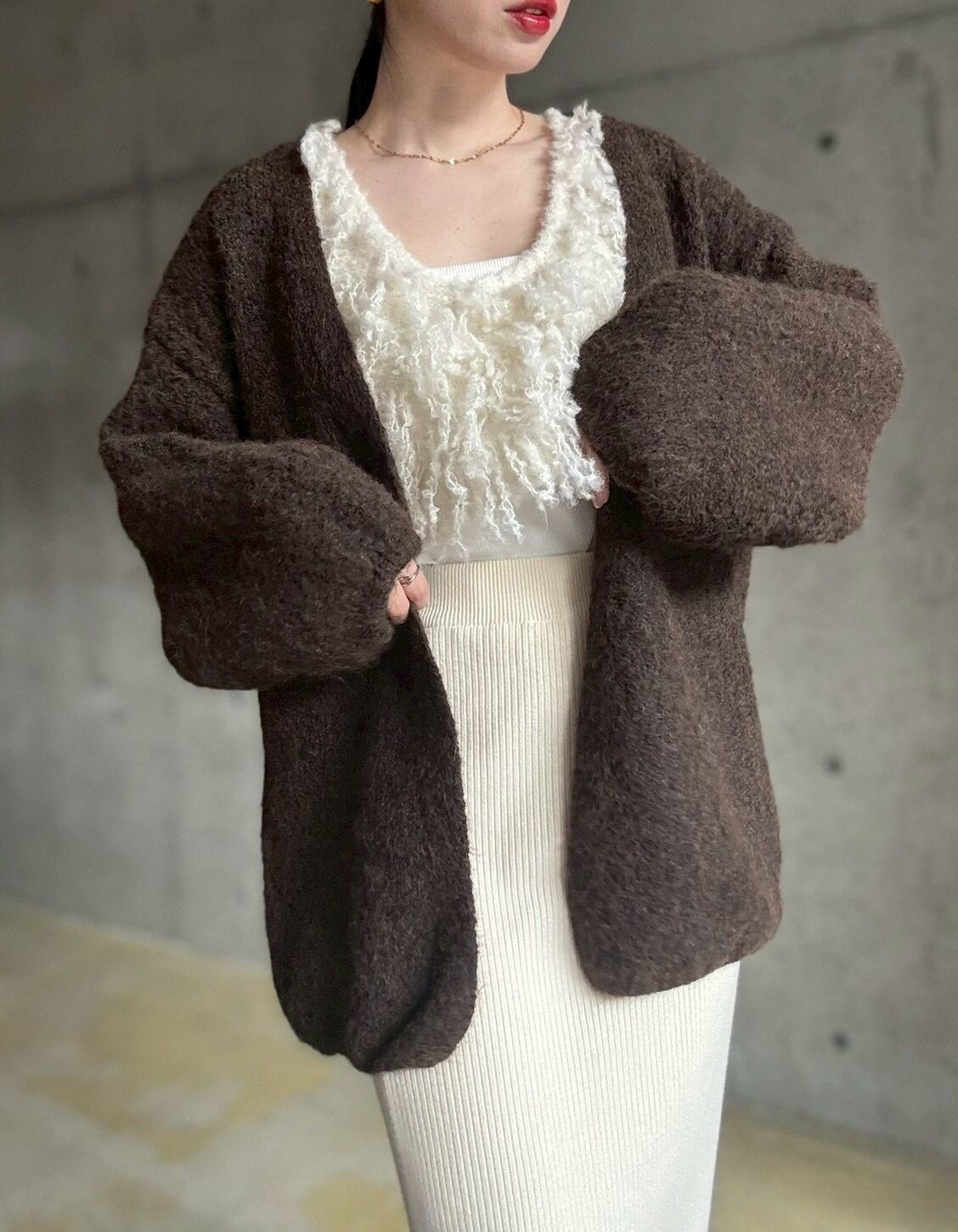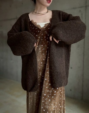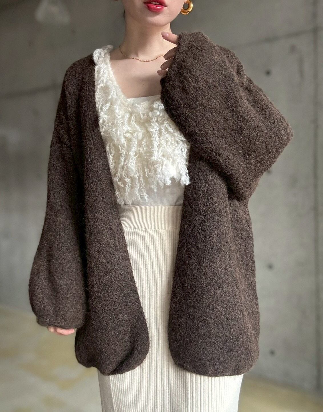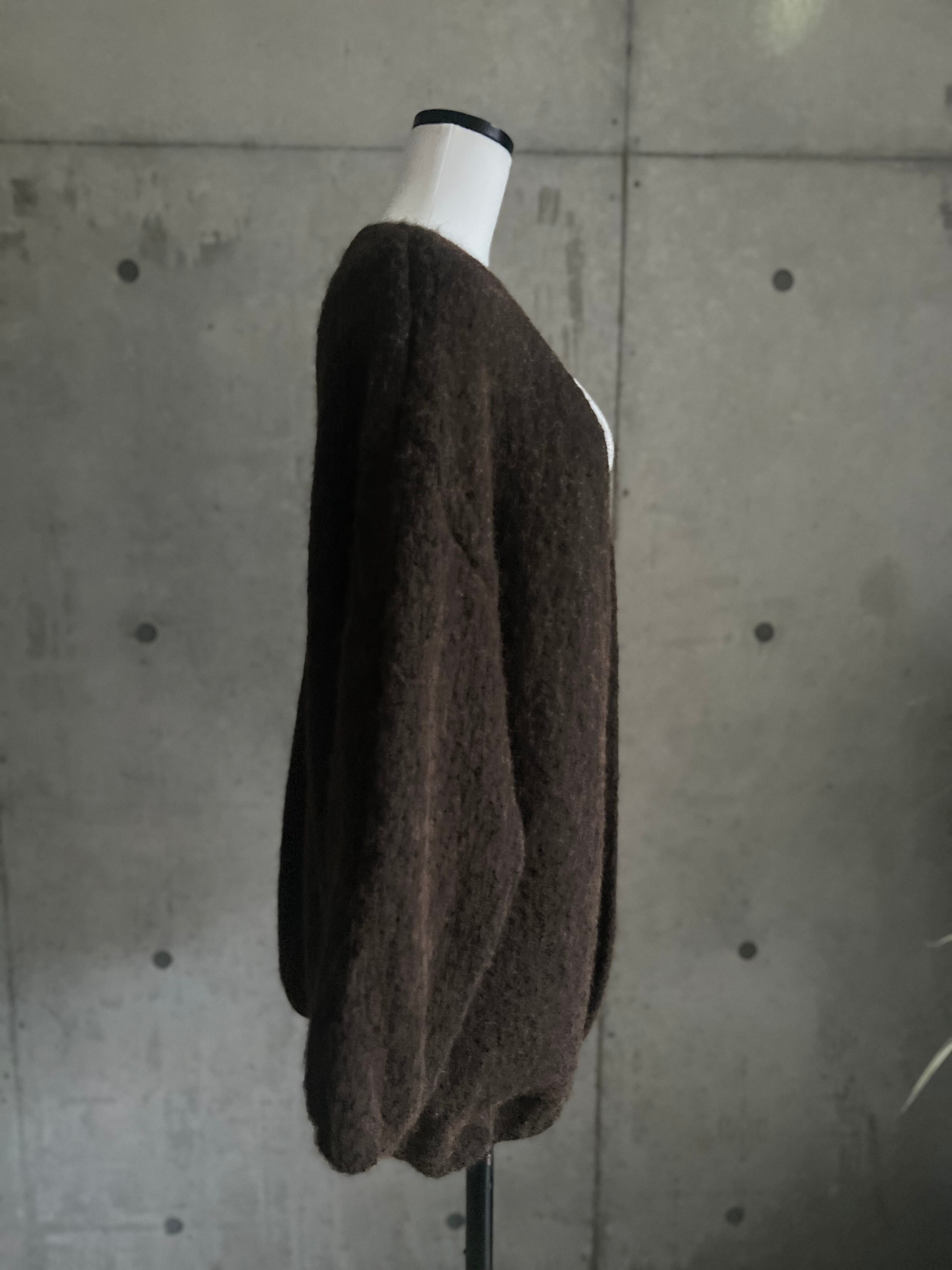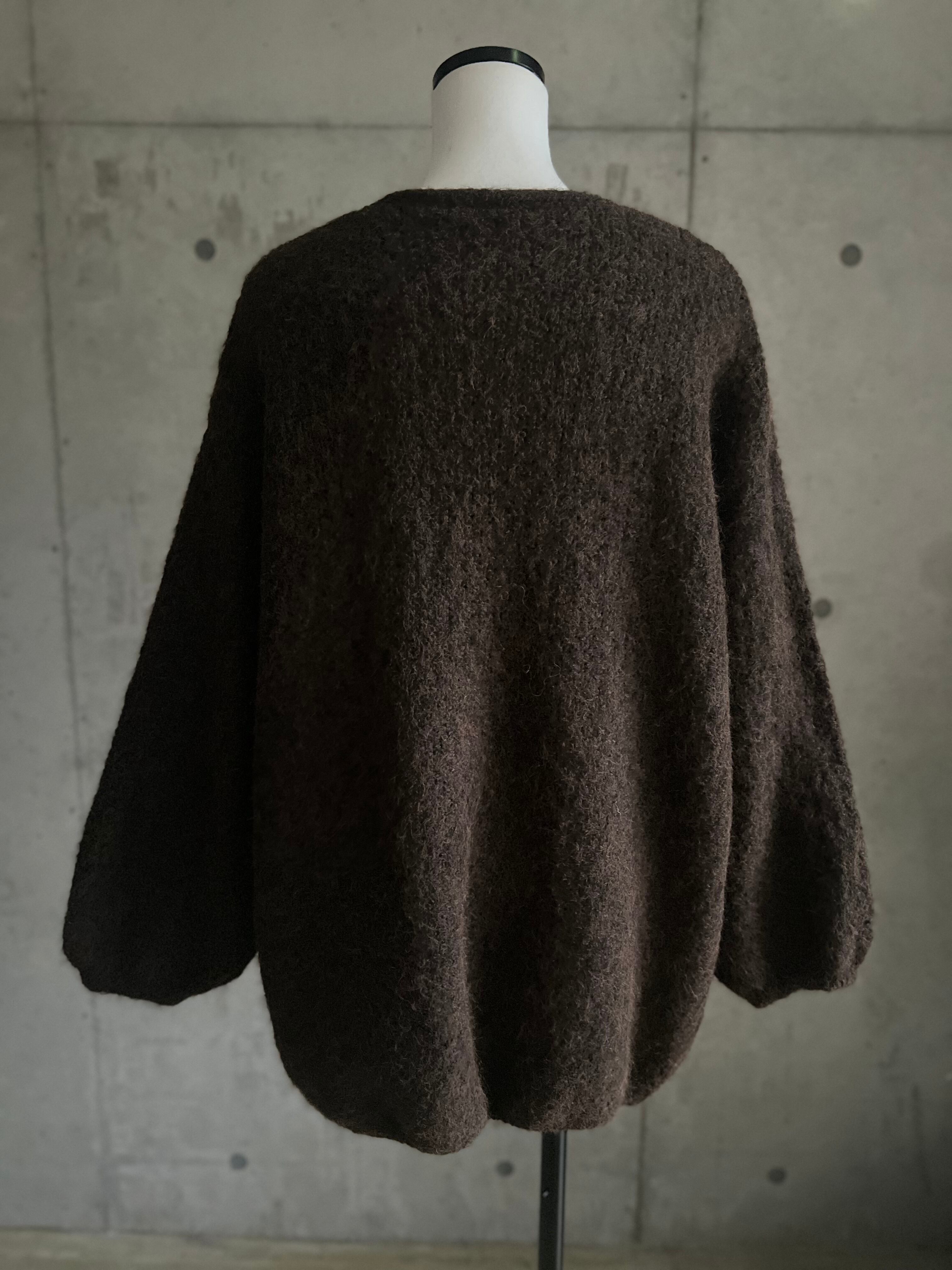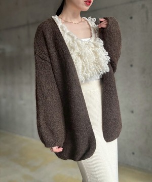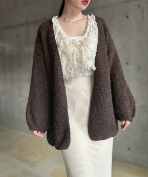 【12/24 21:00〜】袖ボリュームオープンニットカーディガン【ブラウン】