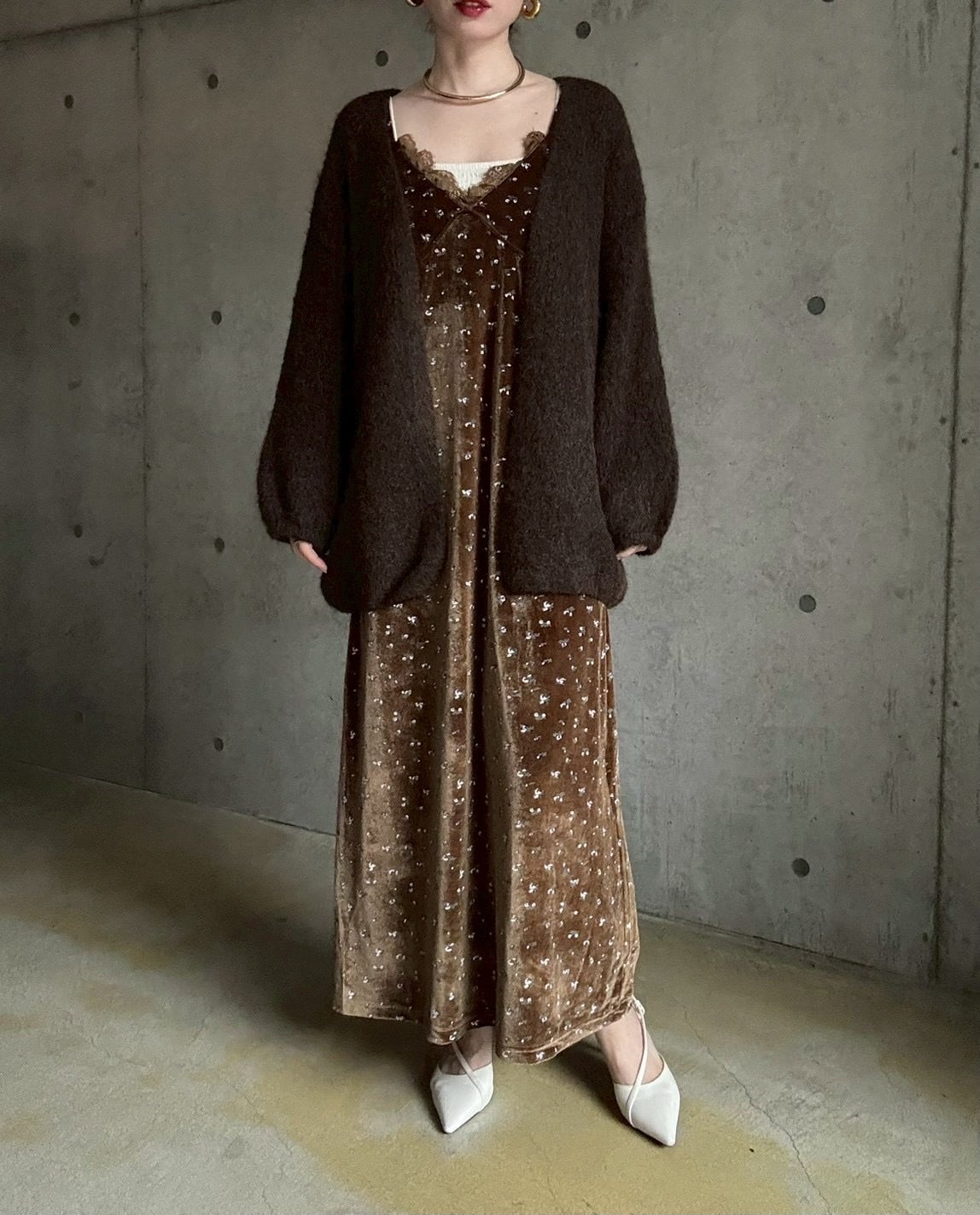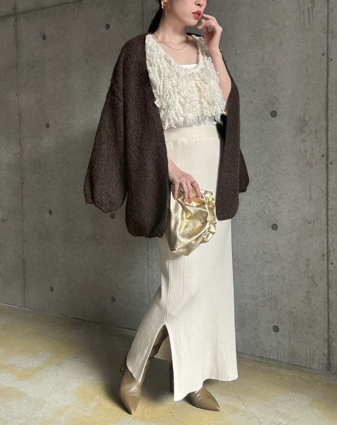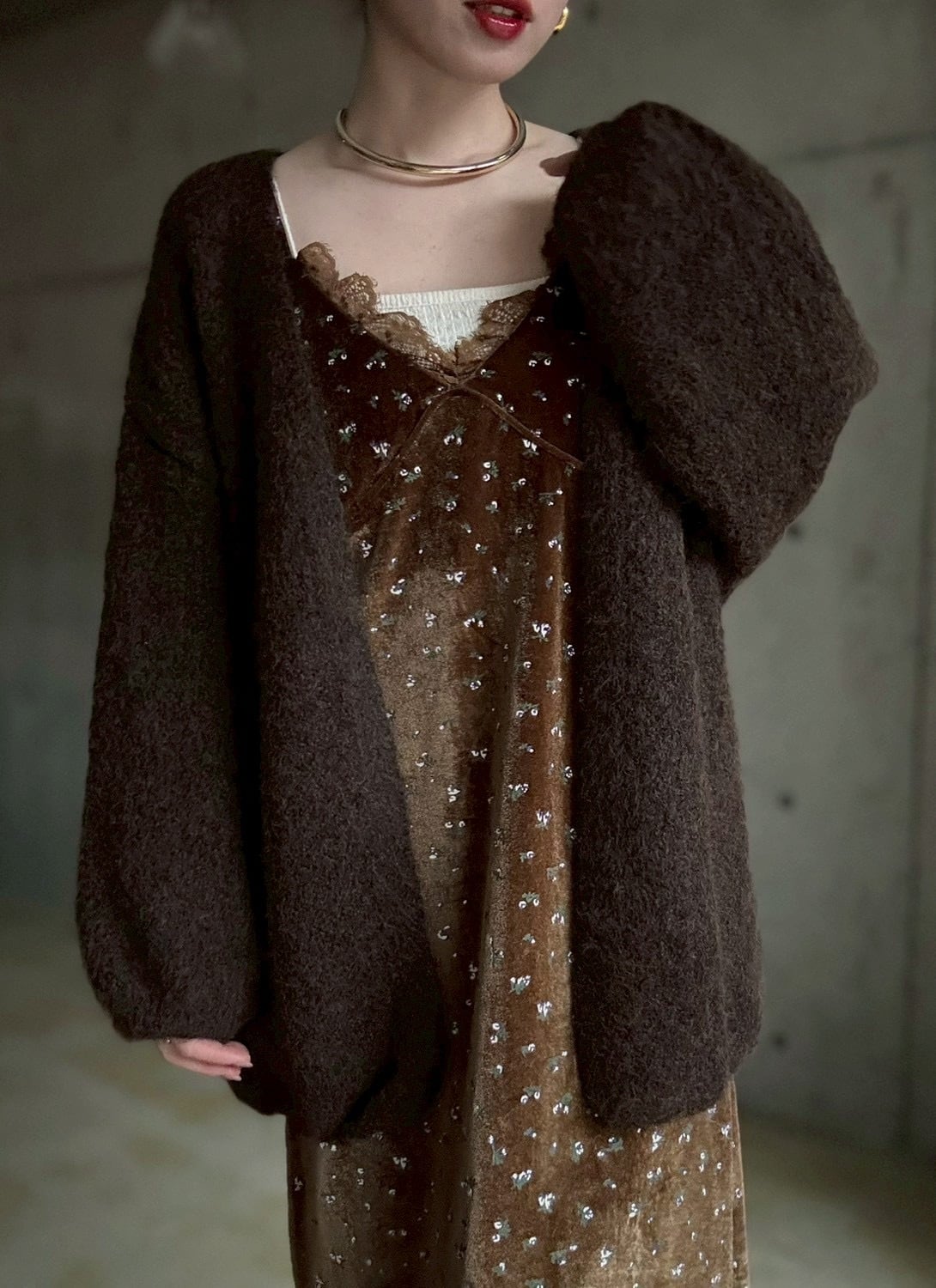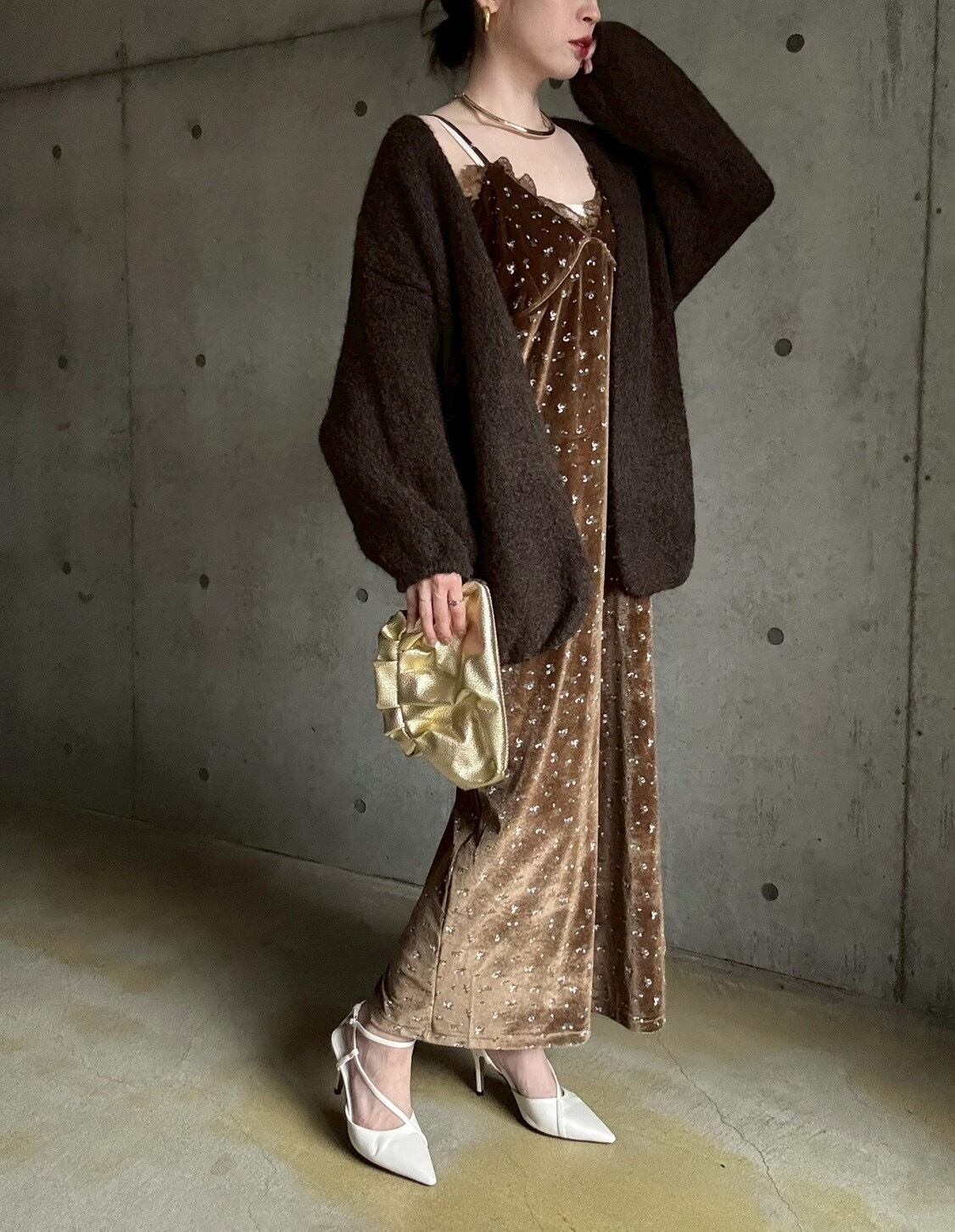 【12/24 21:00〜】袖ボリュームオープンニットカーディガン【ブラウン】