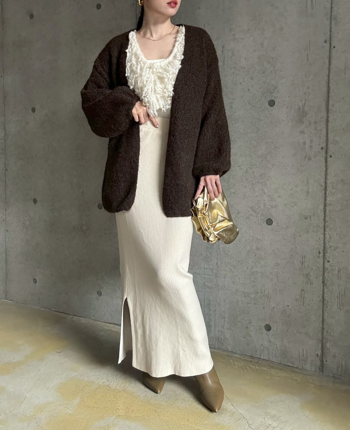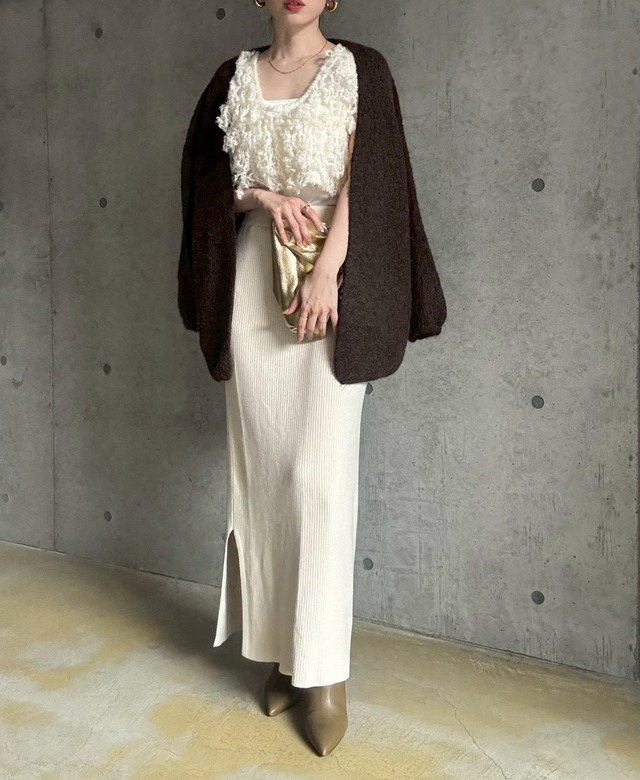 とにかくバランスのとりやすい絶妙なシルエットで、色々な着こなしを楽しめる万能ニットカーディガンです✨