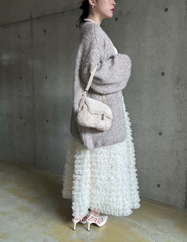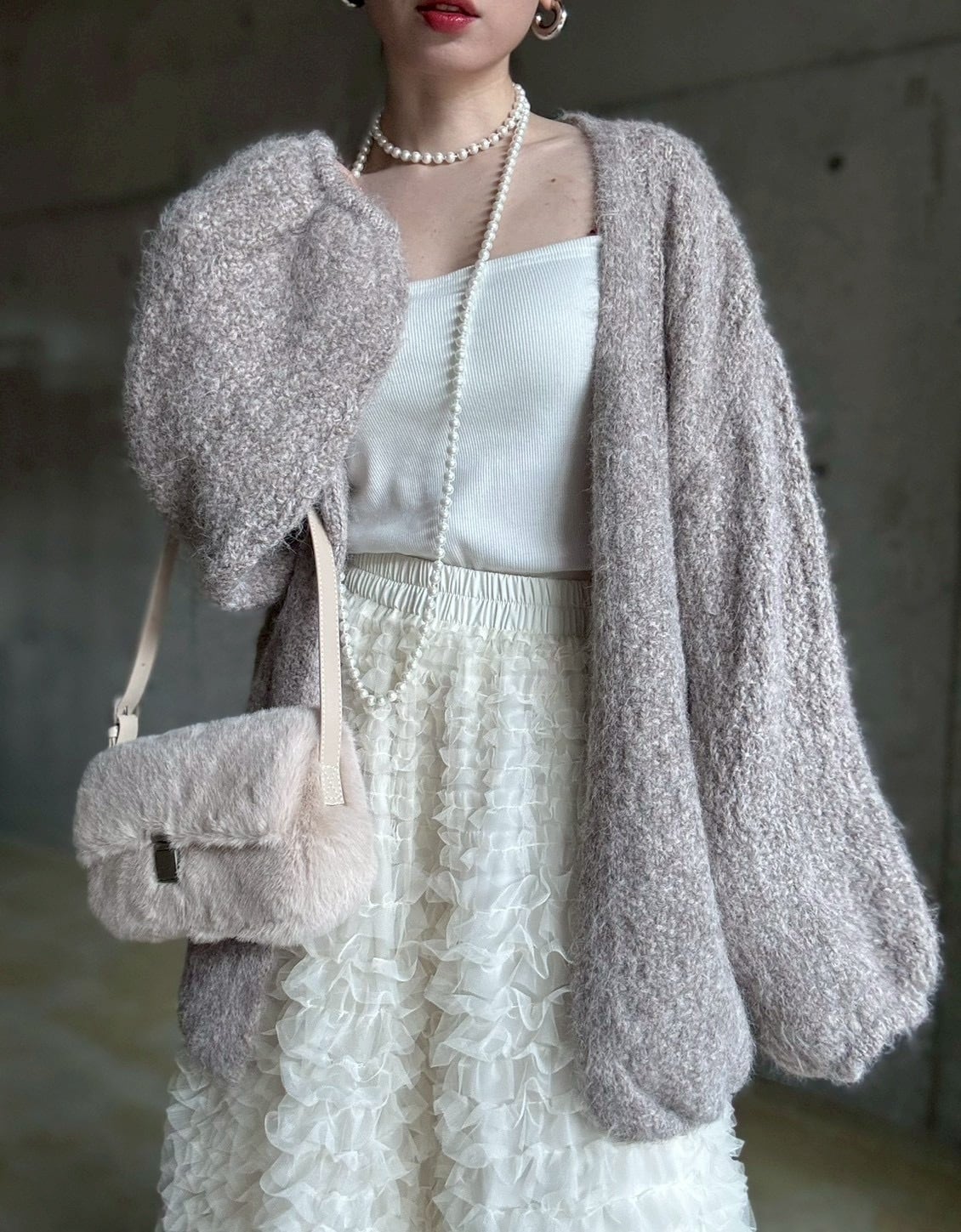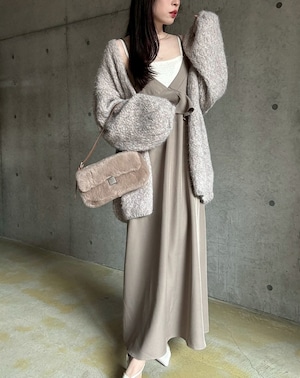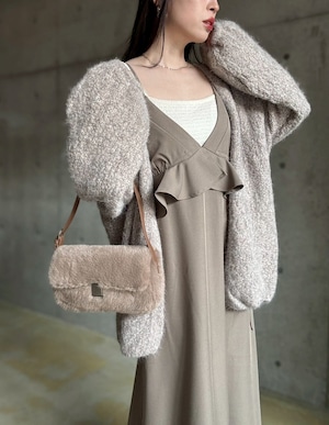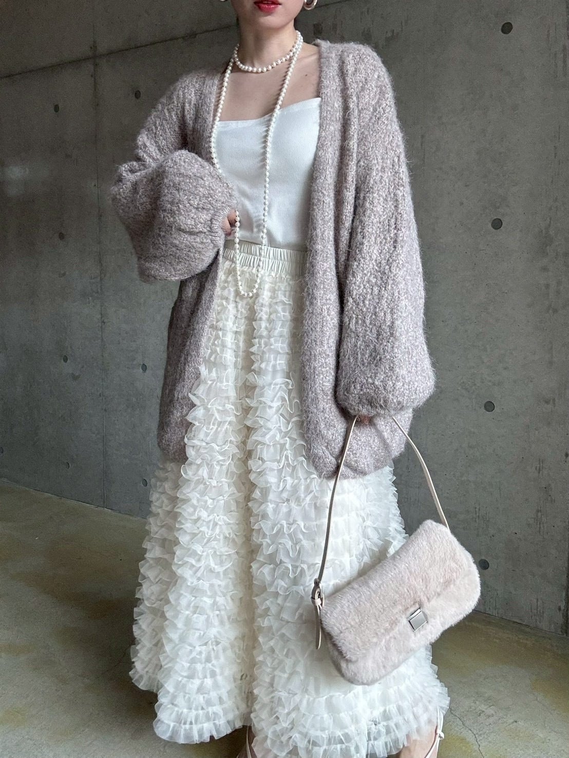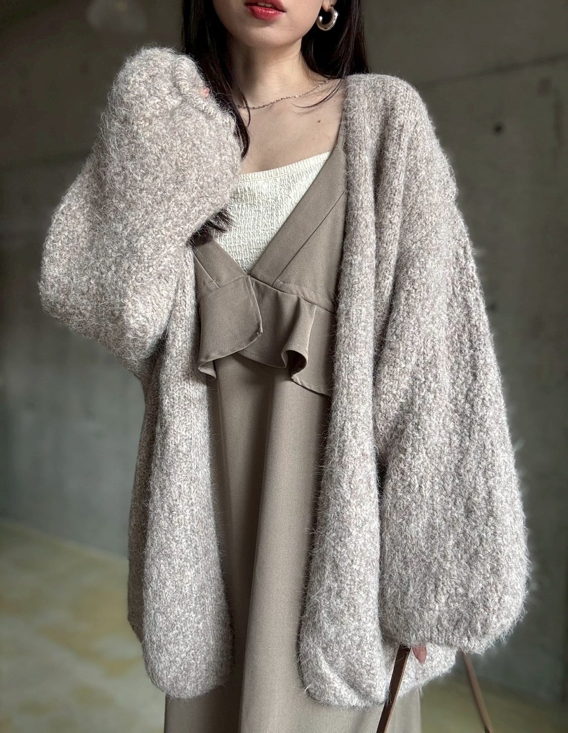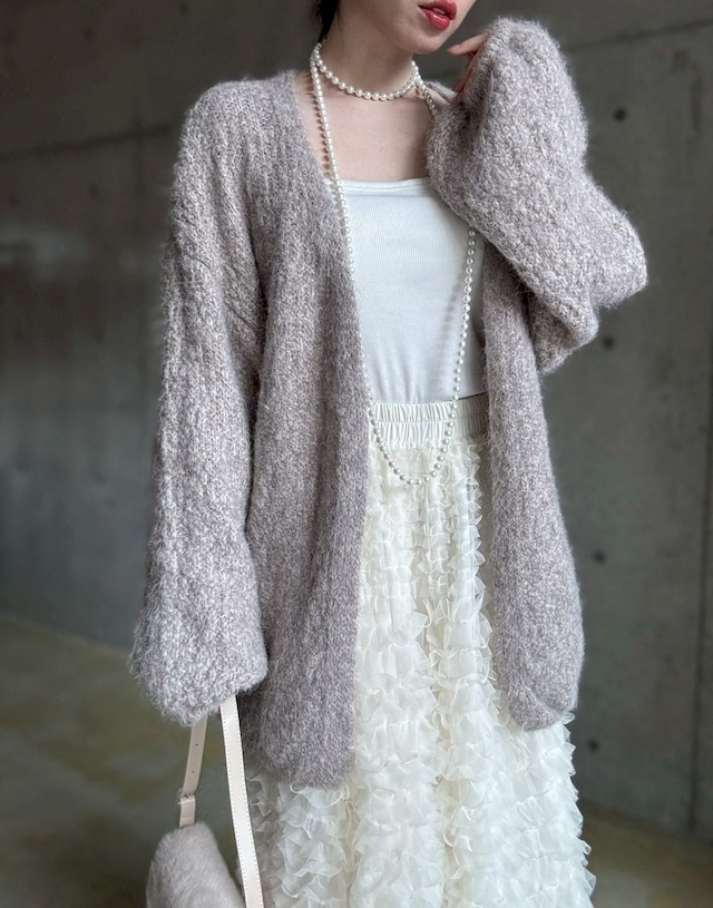 【12/24 21:00〜】袖ボリュームオープンニットカーディガン【ライトベージュ】