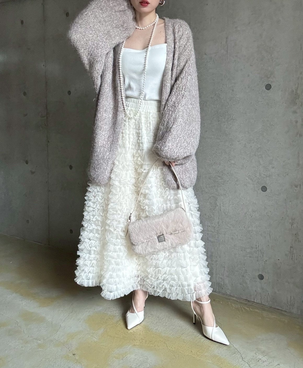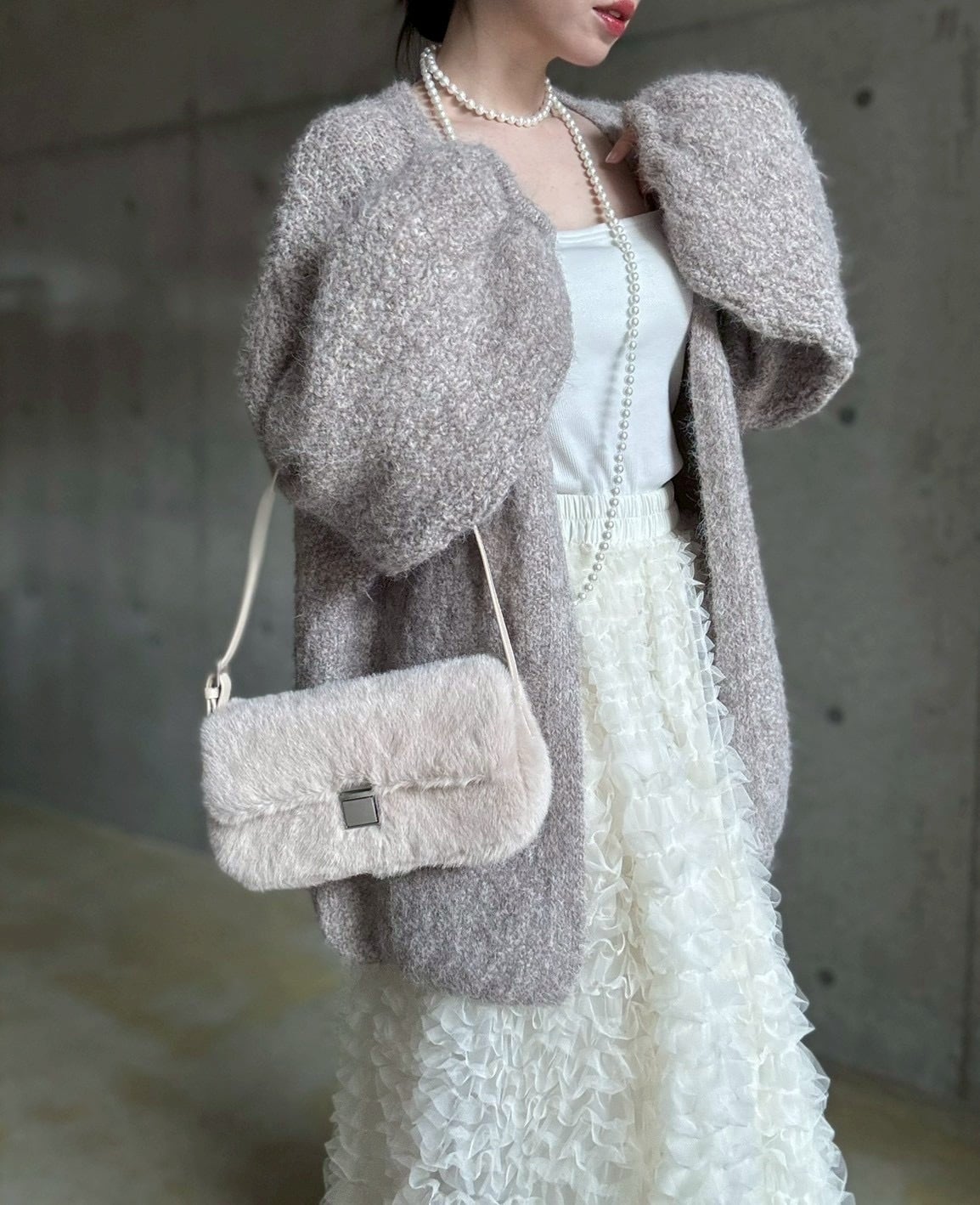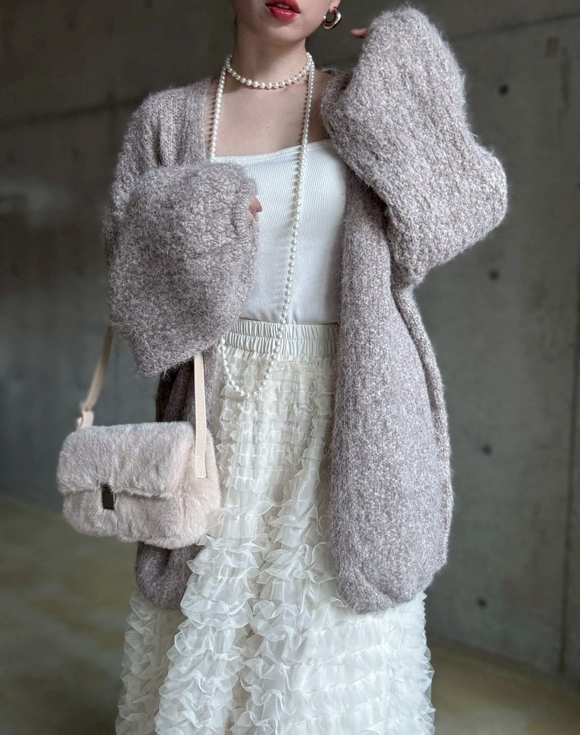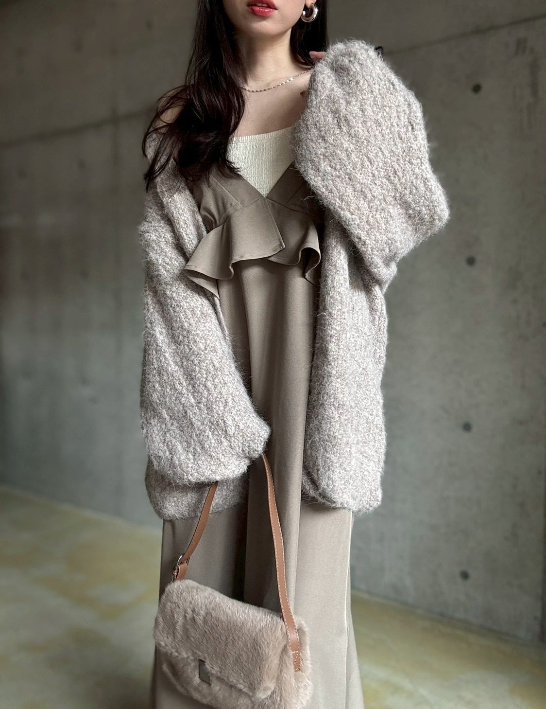 【12/24 21:00〜】袖ボリュームオープンニットカーディガン【ライトベージュ】