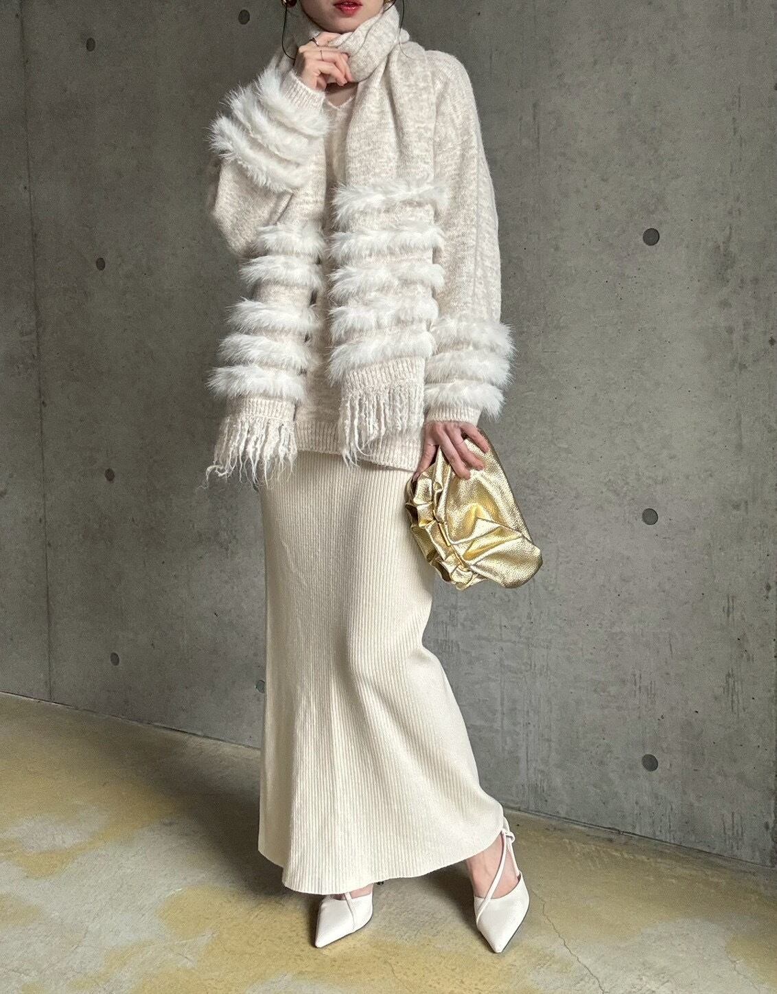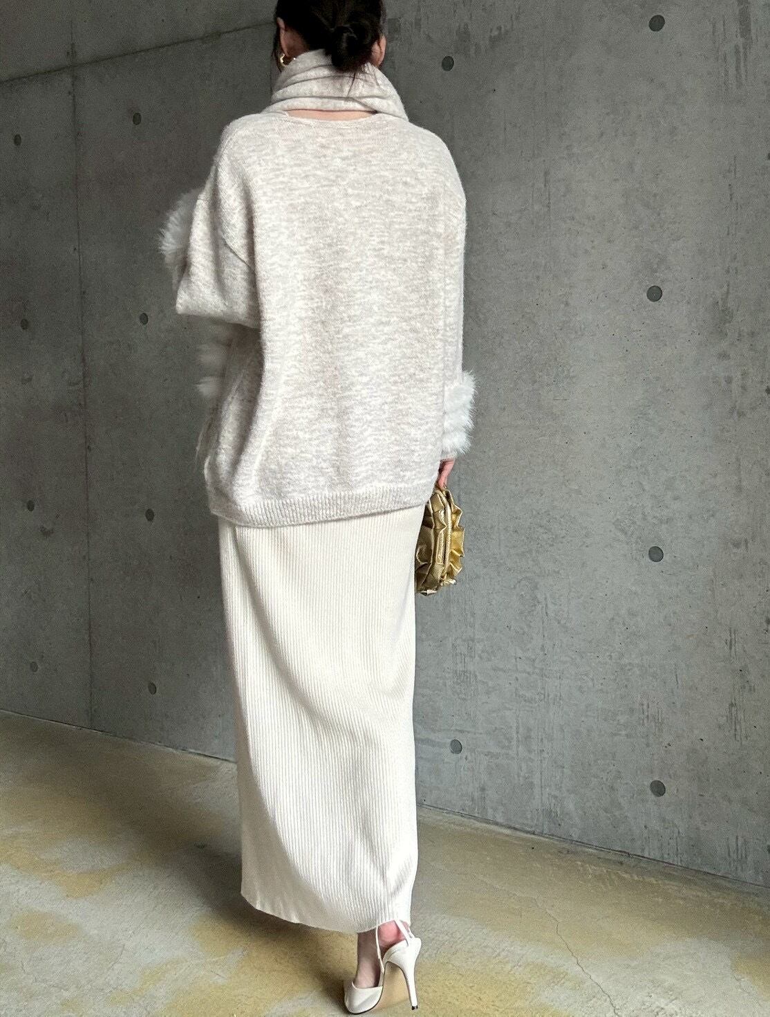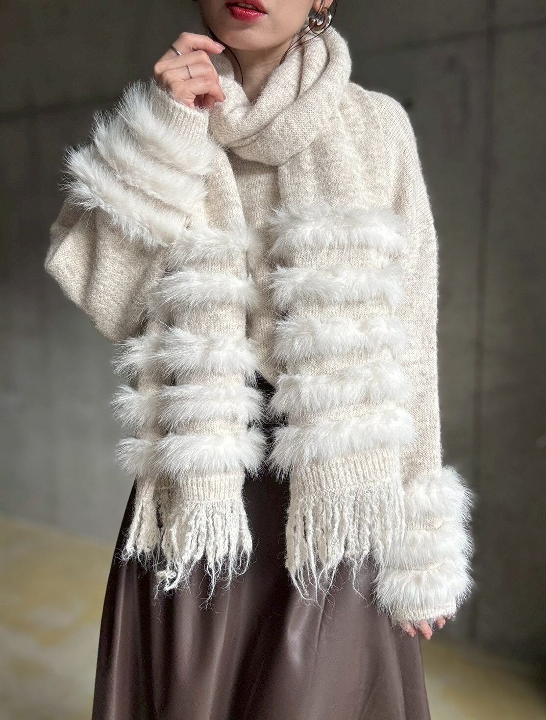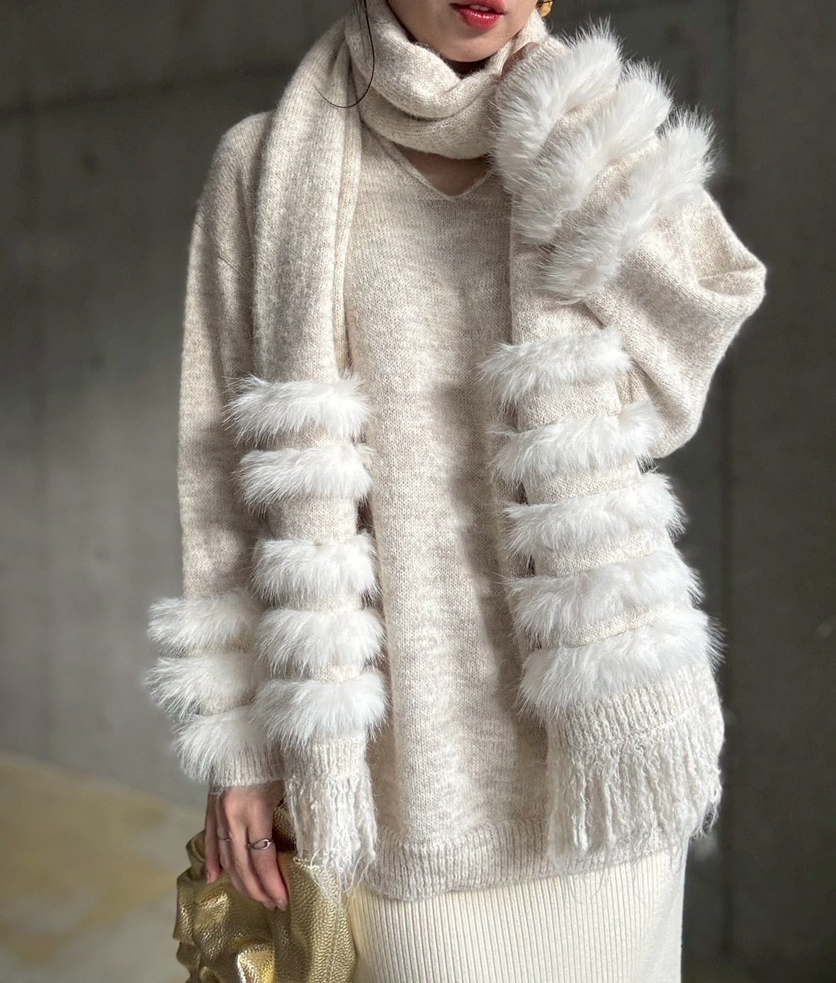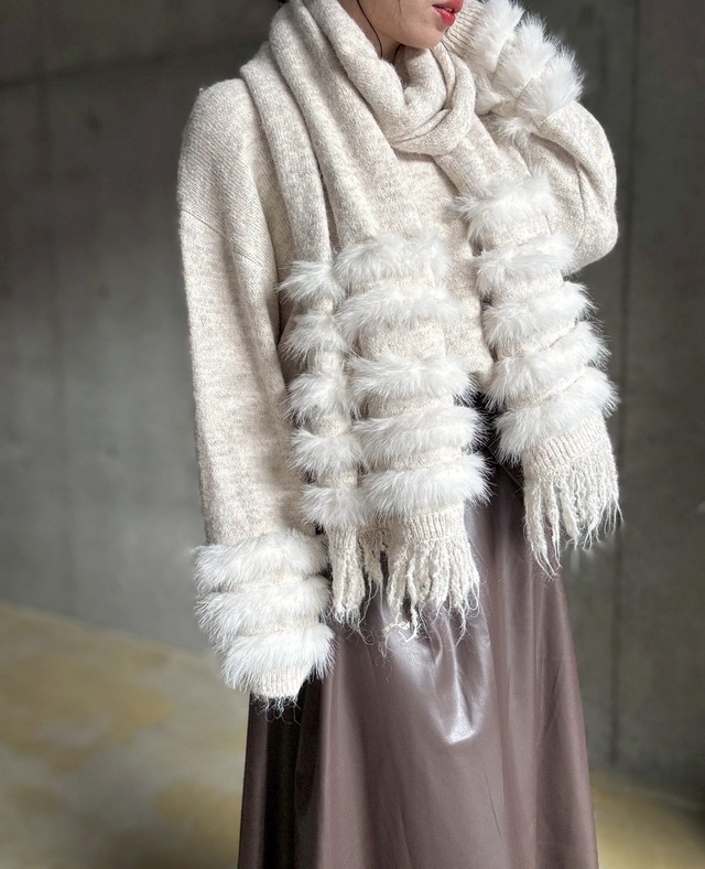 【12/24 21:00〜】ファー付きマフラー+ニットプルオーバーset【アイボリー】