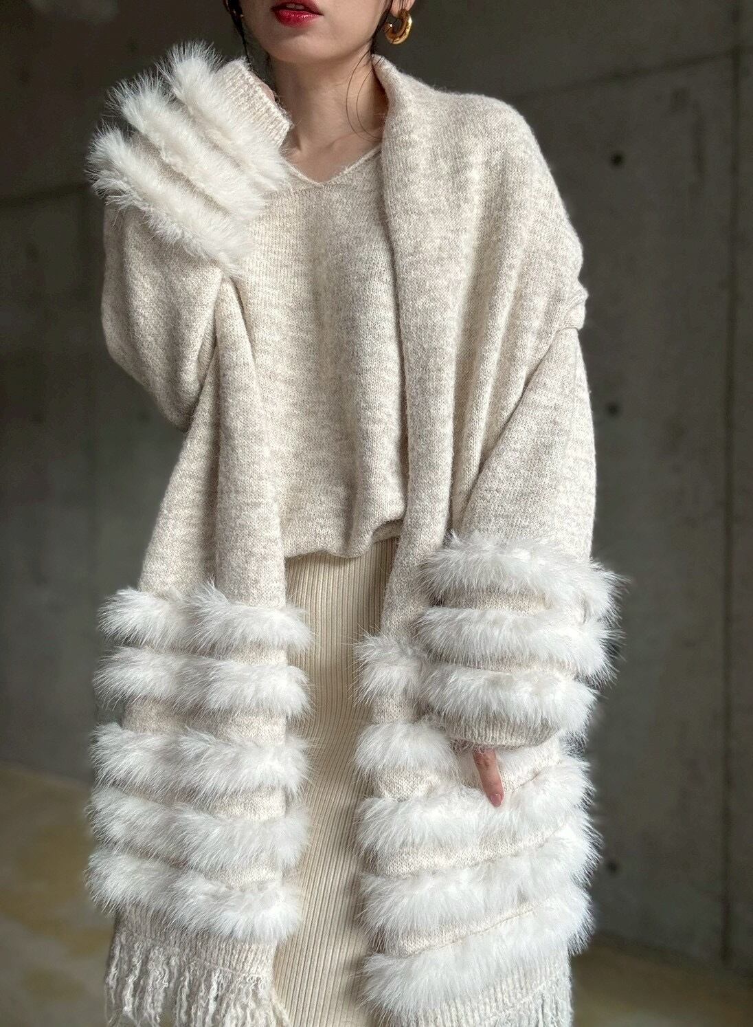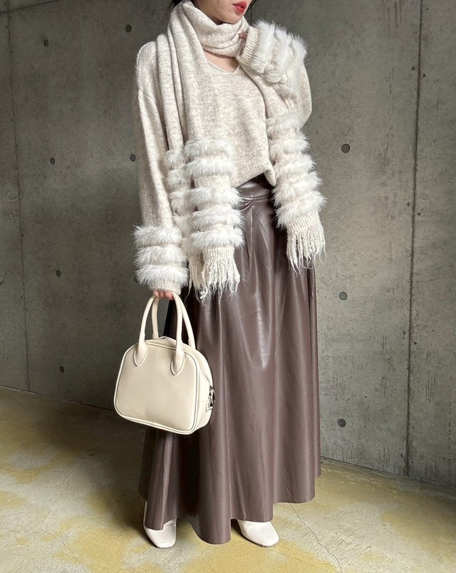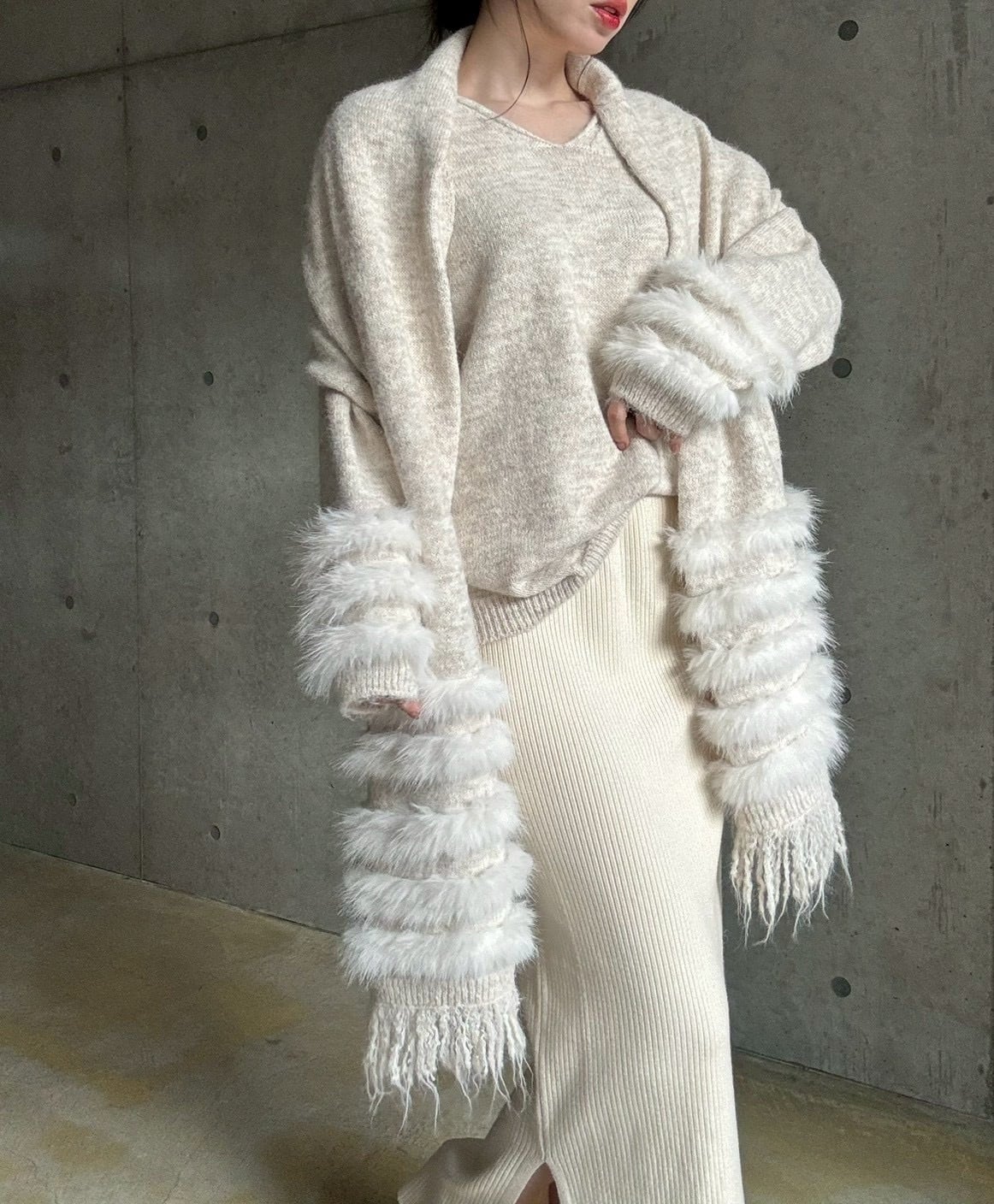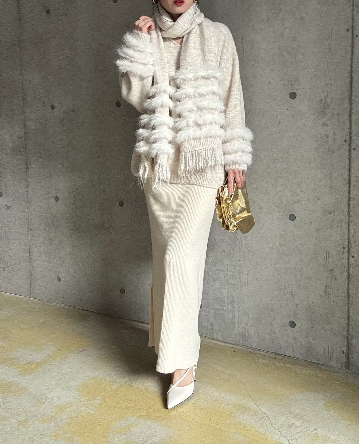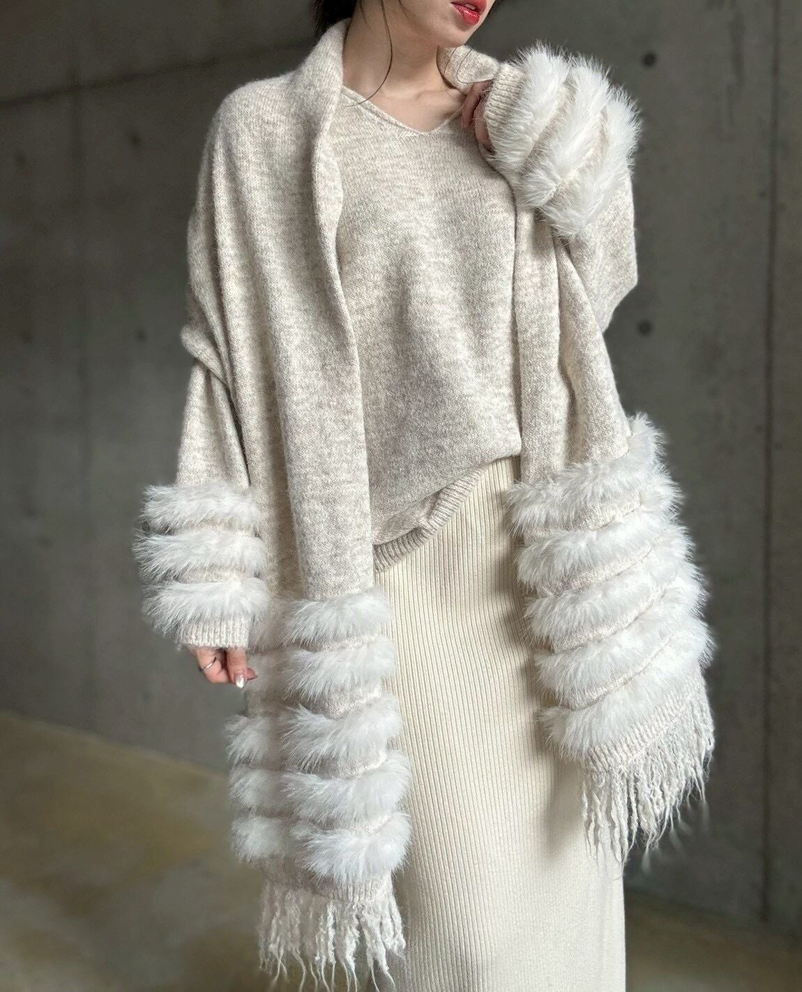 【12/24 21:00〜】ファー付きマフラー+ニットプルオーバーset【アイボリー】