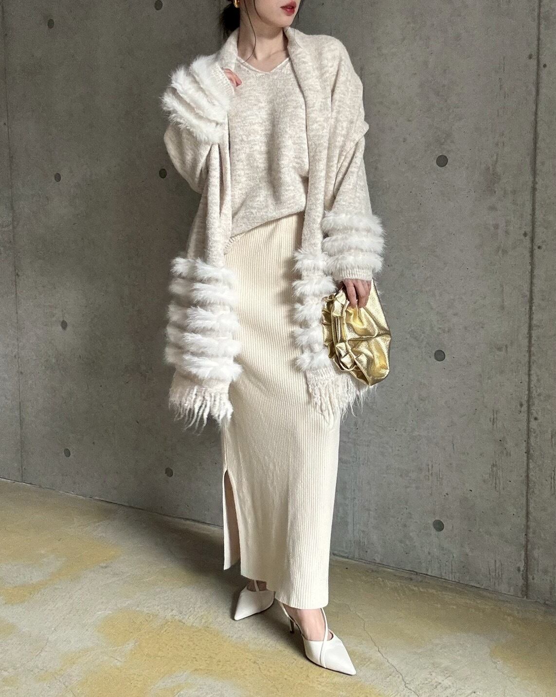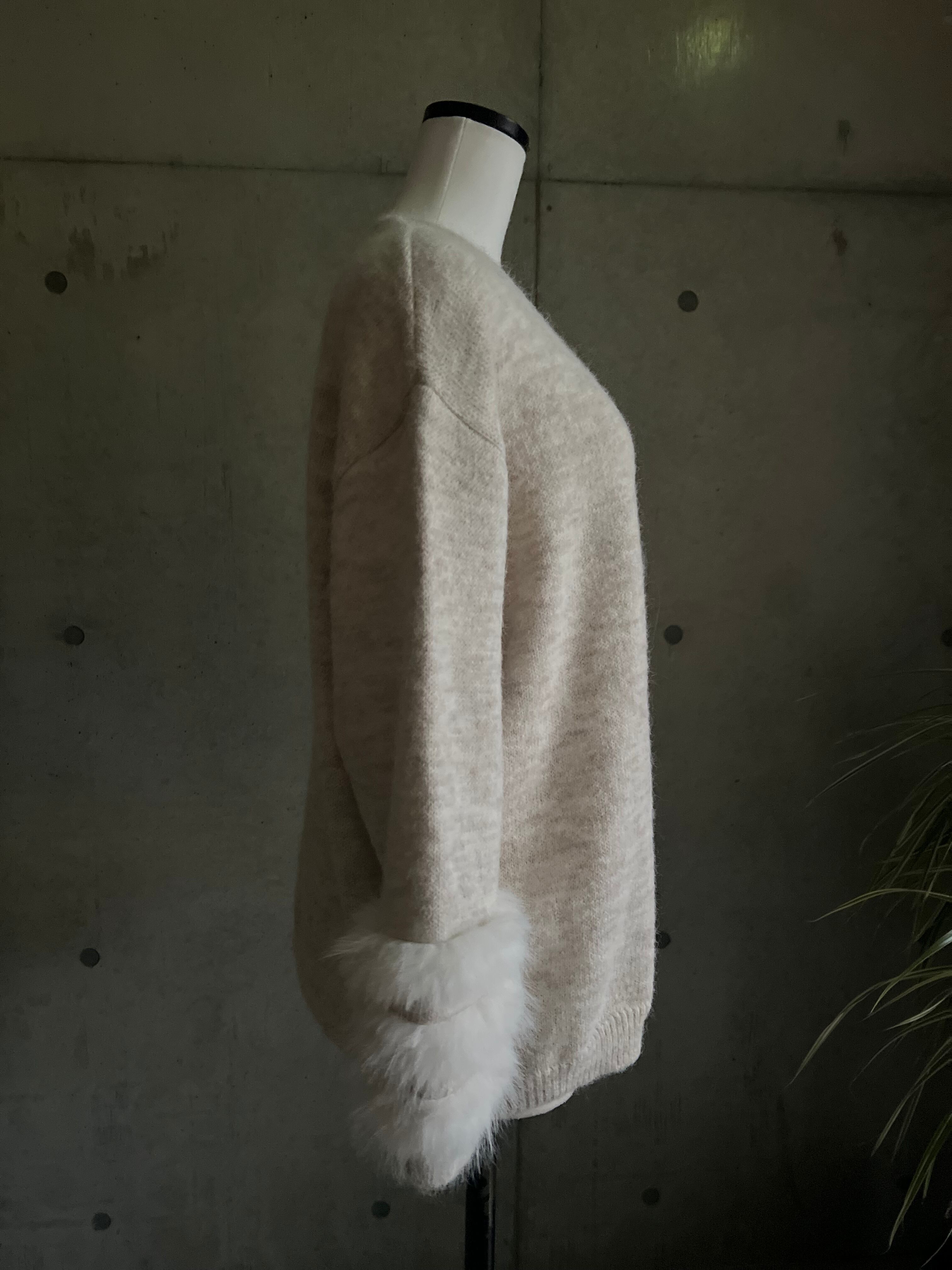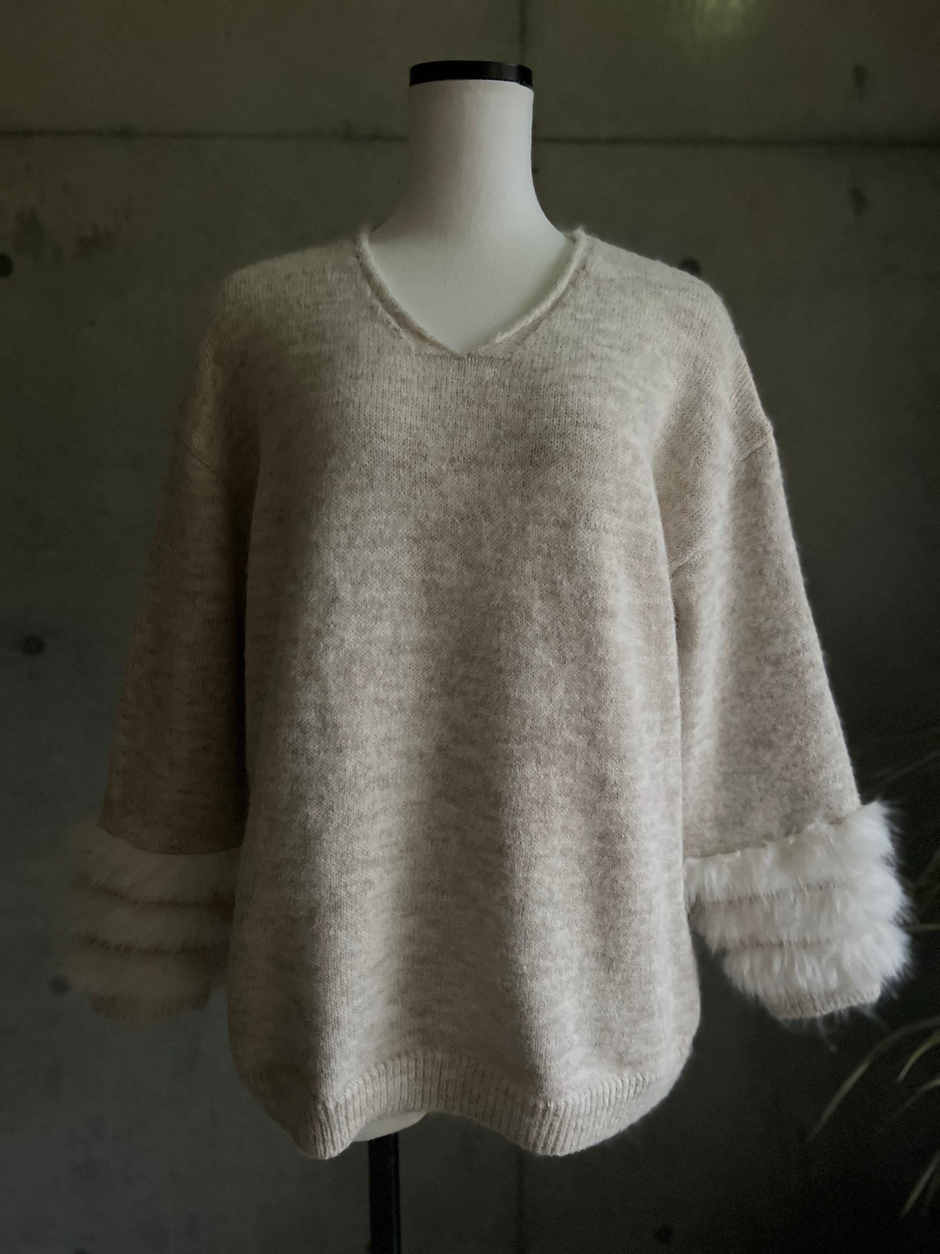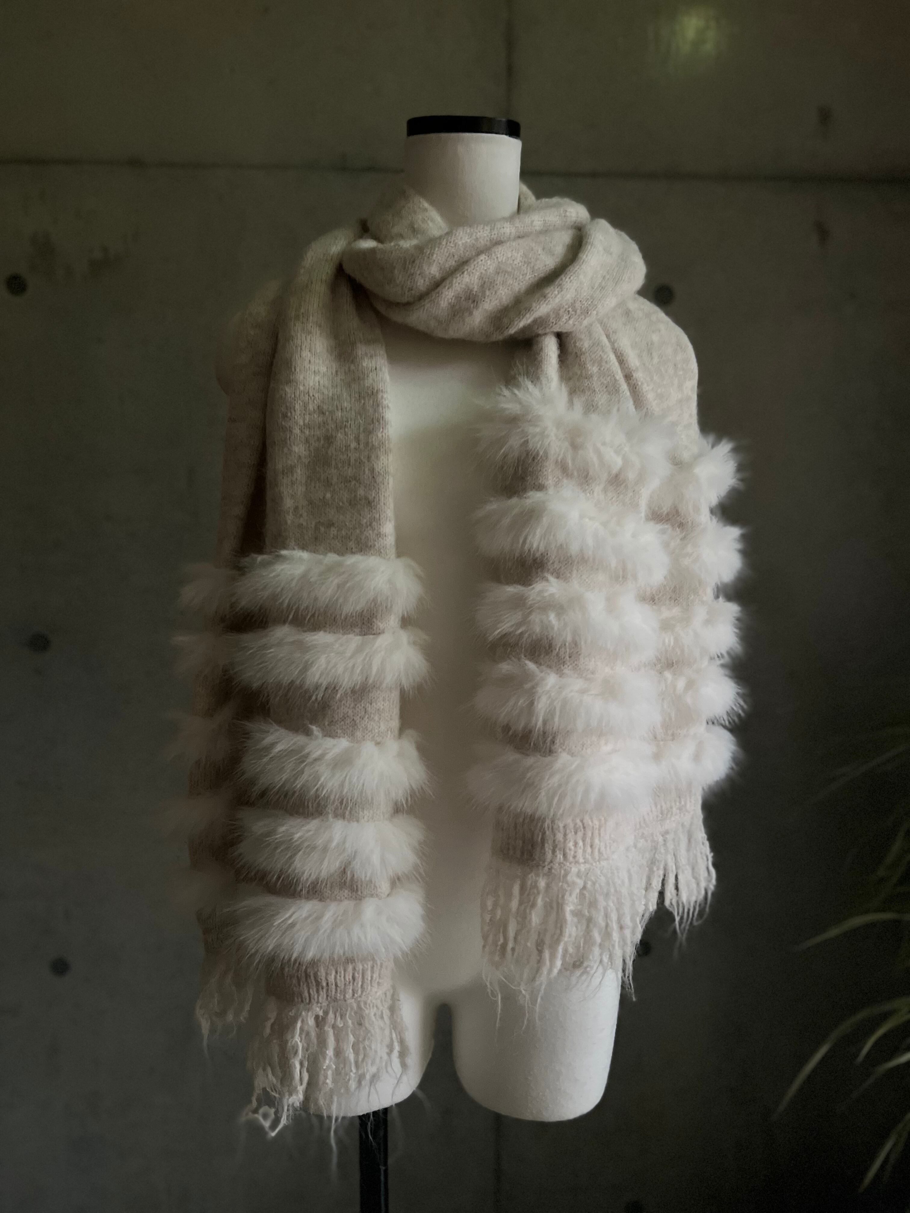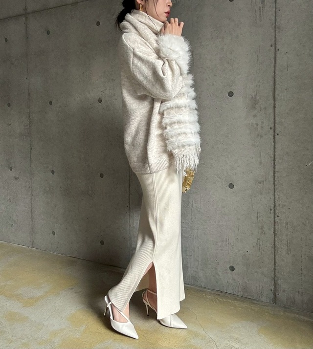 【12/24 21:00〜】ファー付きマフラー+ニットプルオーバーset【アイボリー】