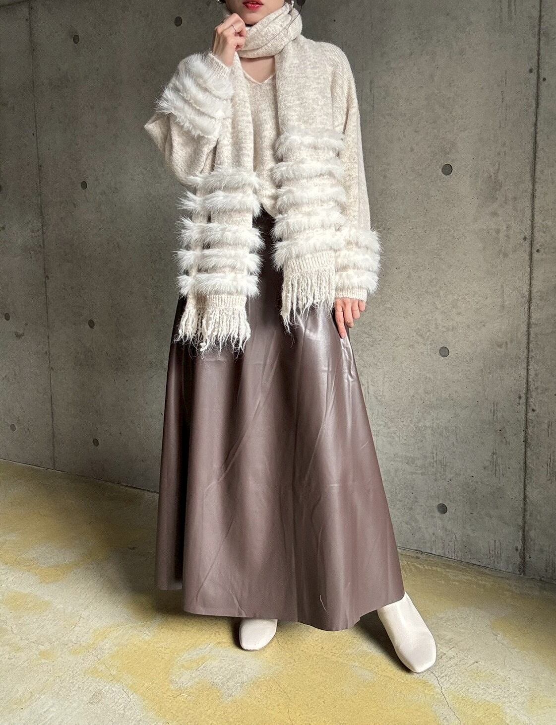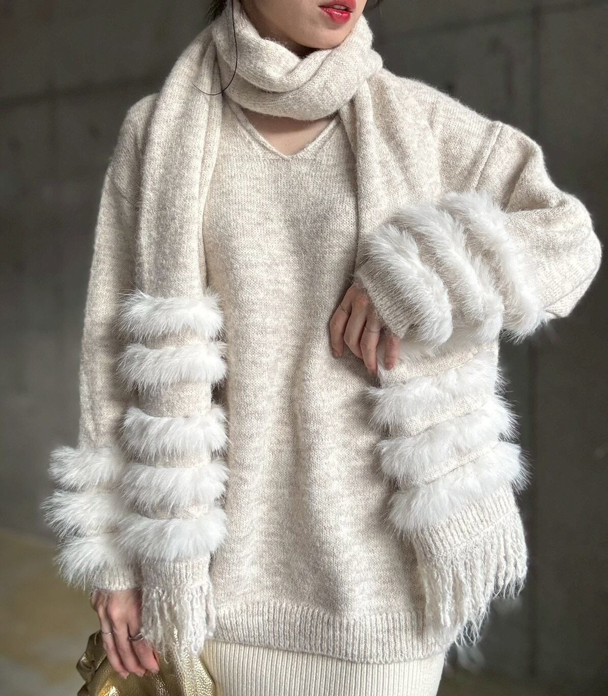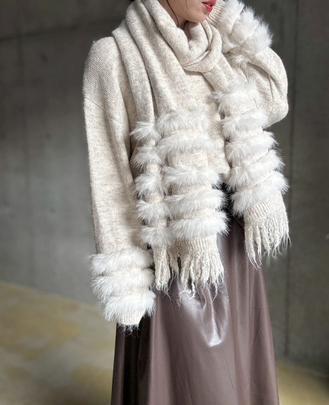 ふわふわファー付き♪ロングマフラーとプルオーバーの2ピースニットセットアイテム✨