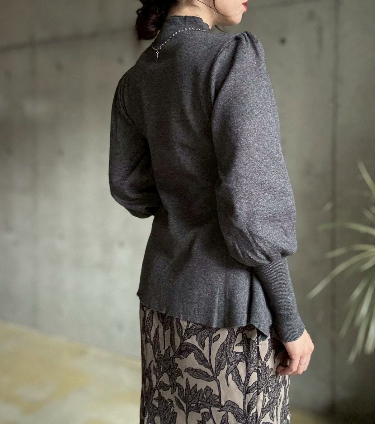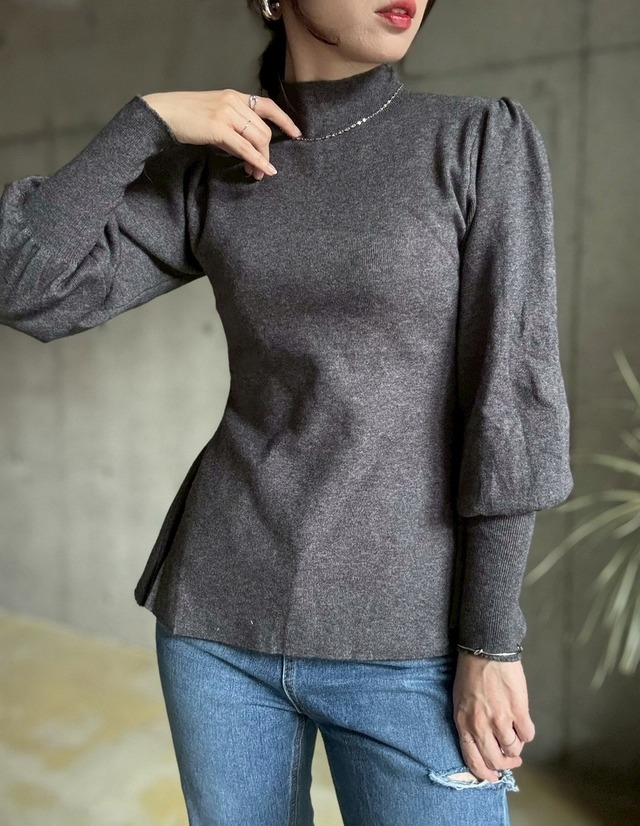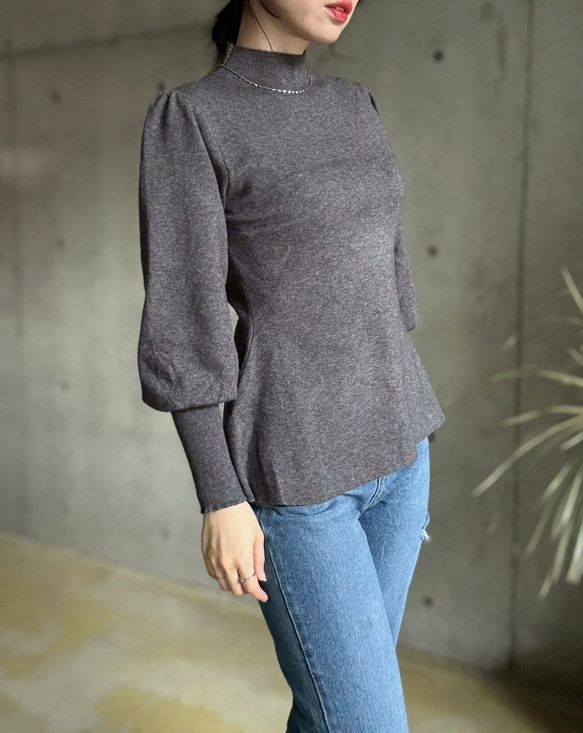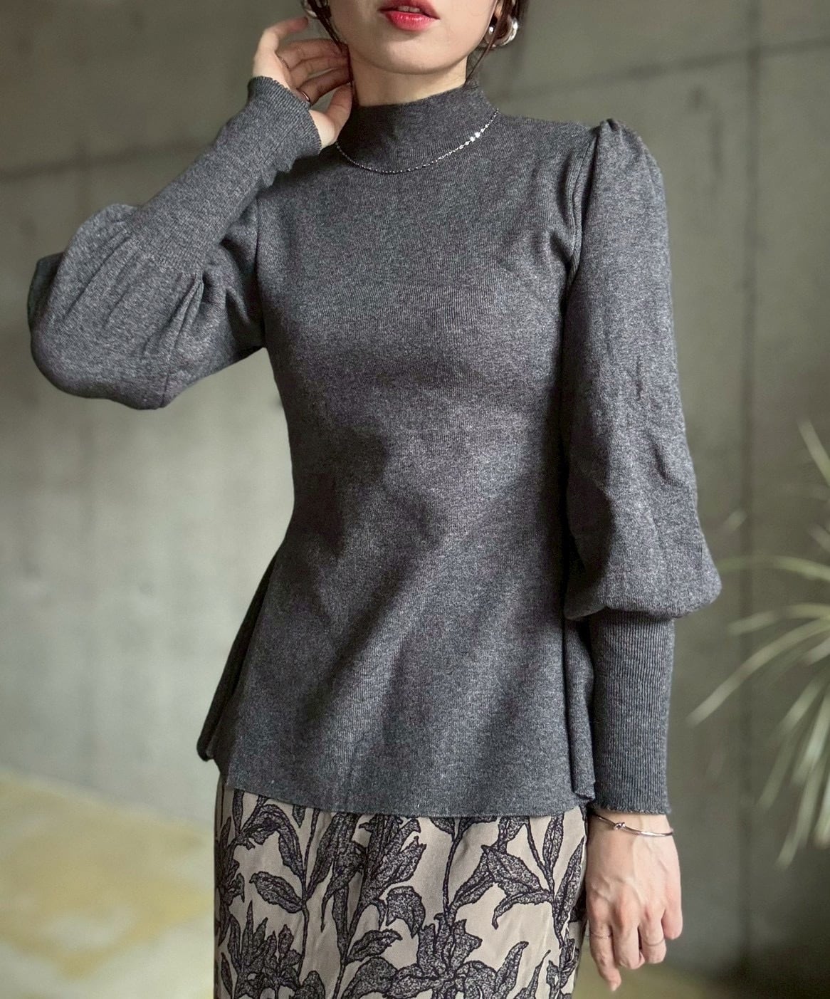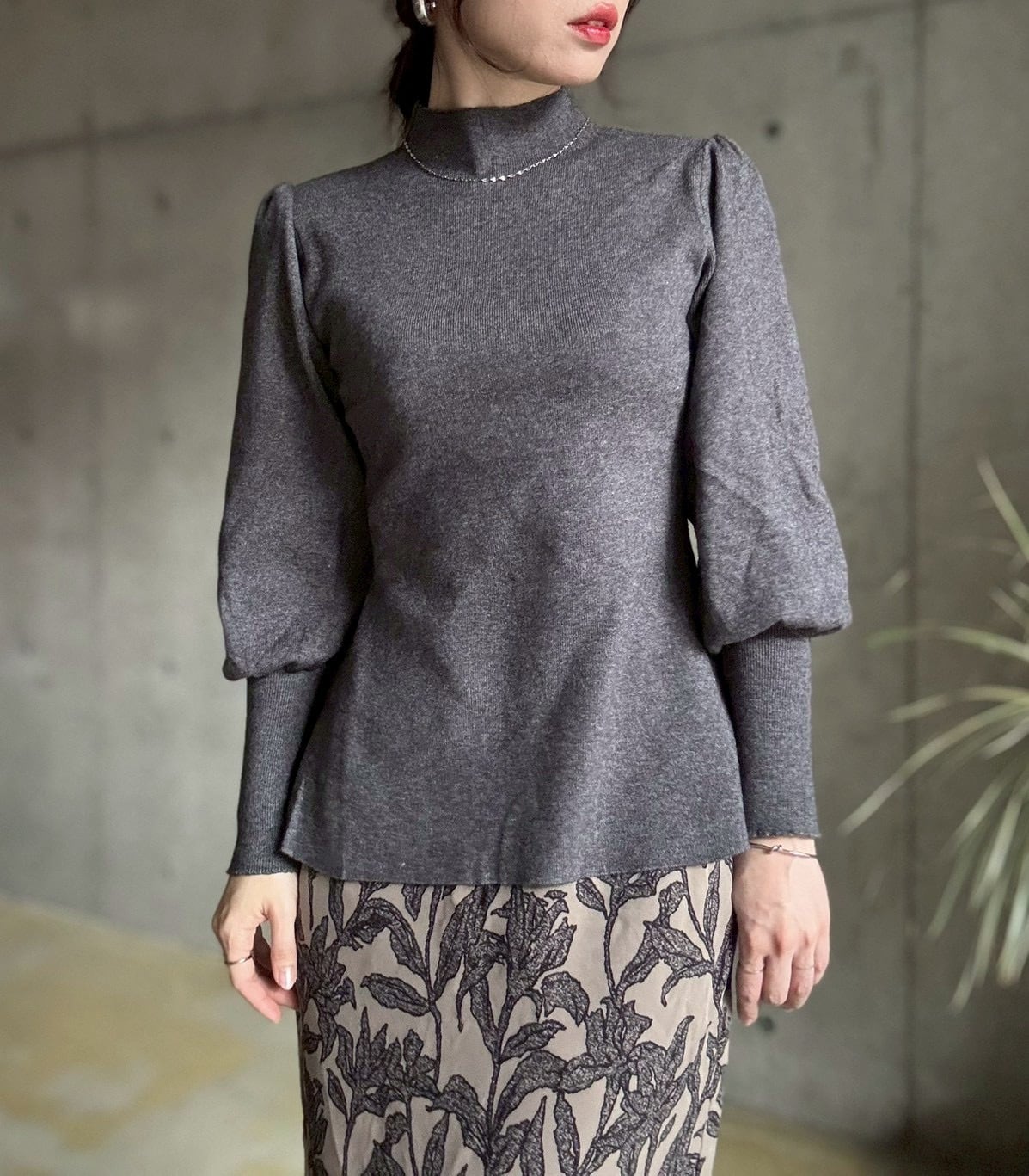 【12/24 21:00〜】Aラインパフショルダーハイネックニットtops【グレー】