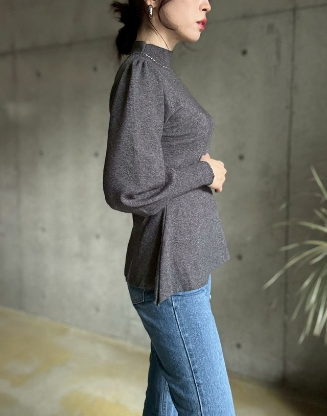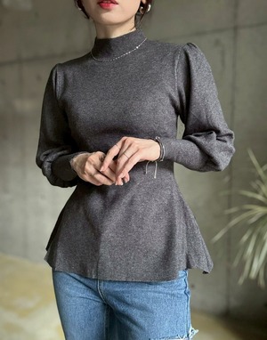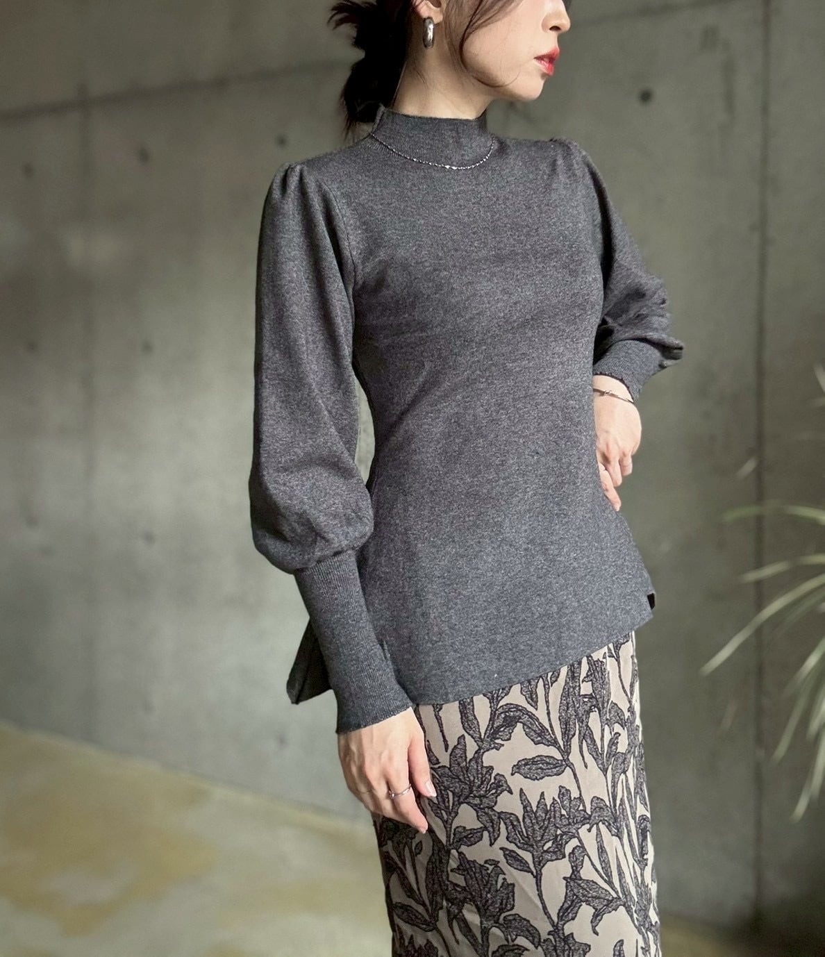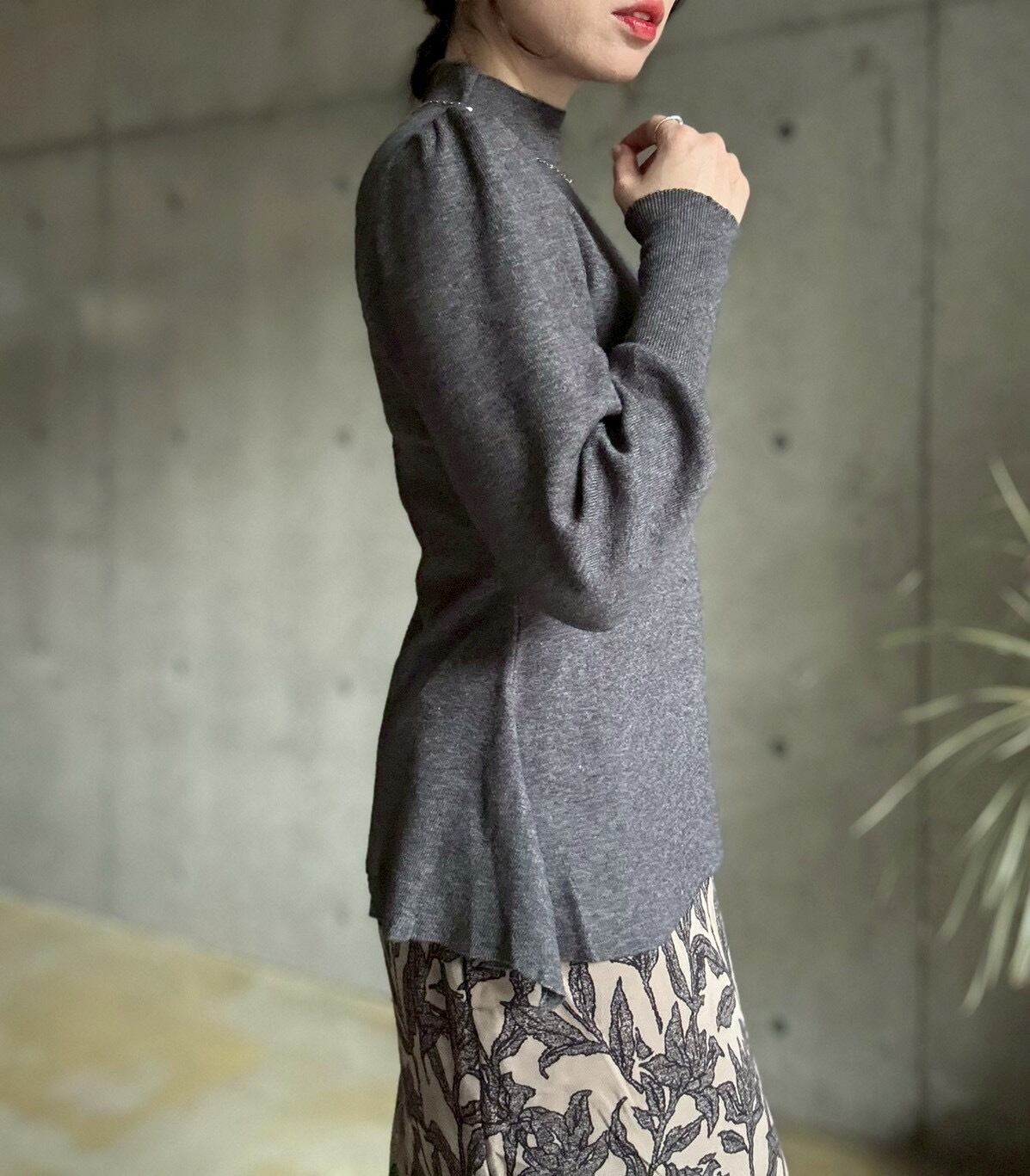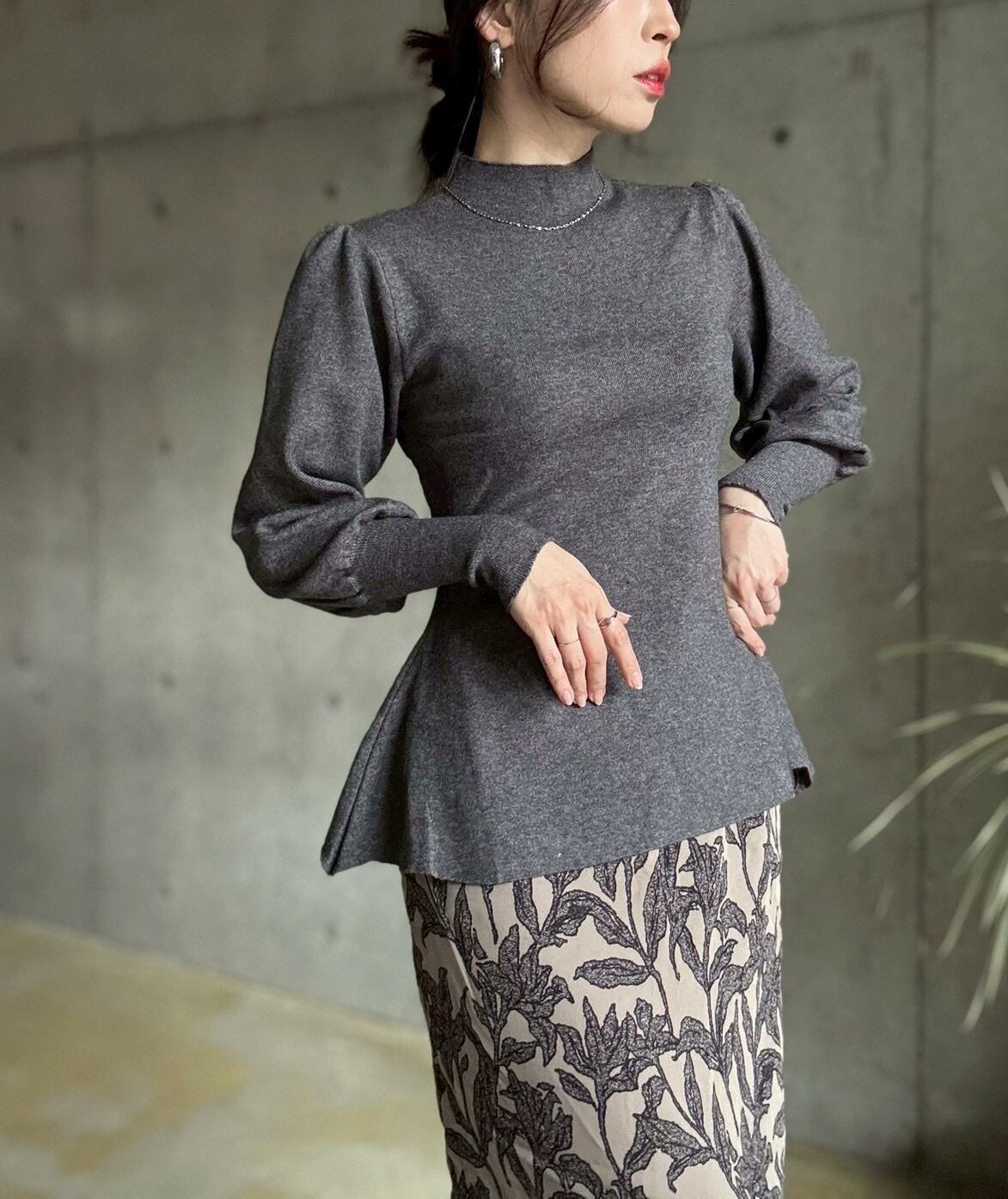 【12/24 21:00〜】Aラインパフショルダーハイネックニットtops【グレー】