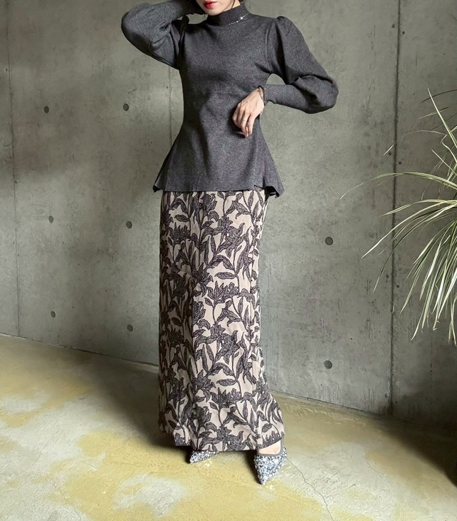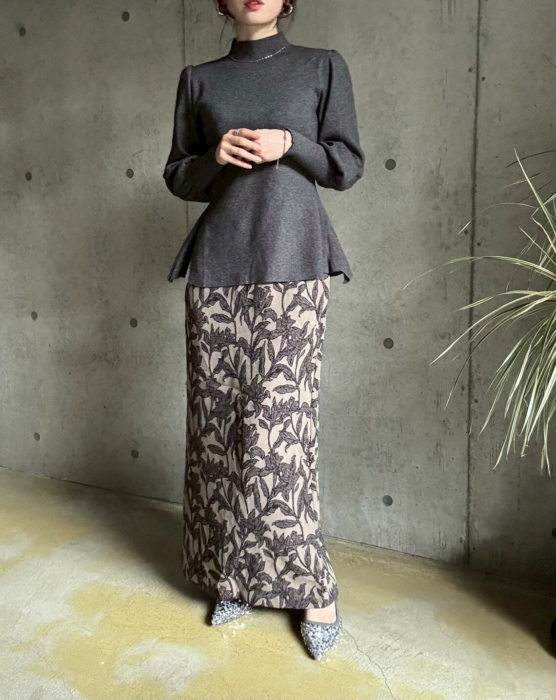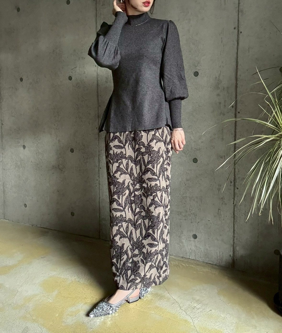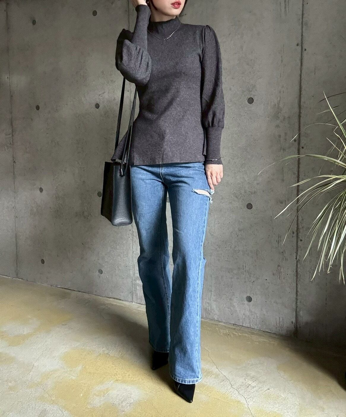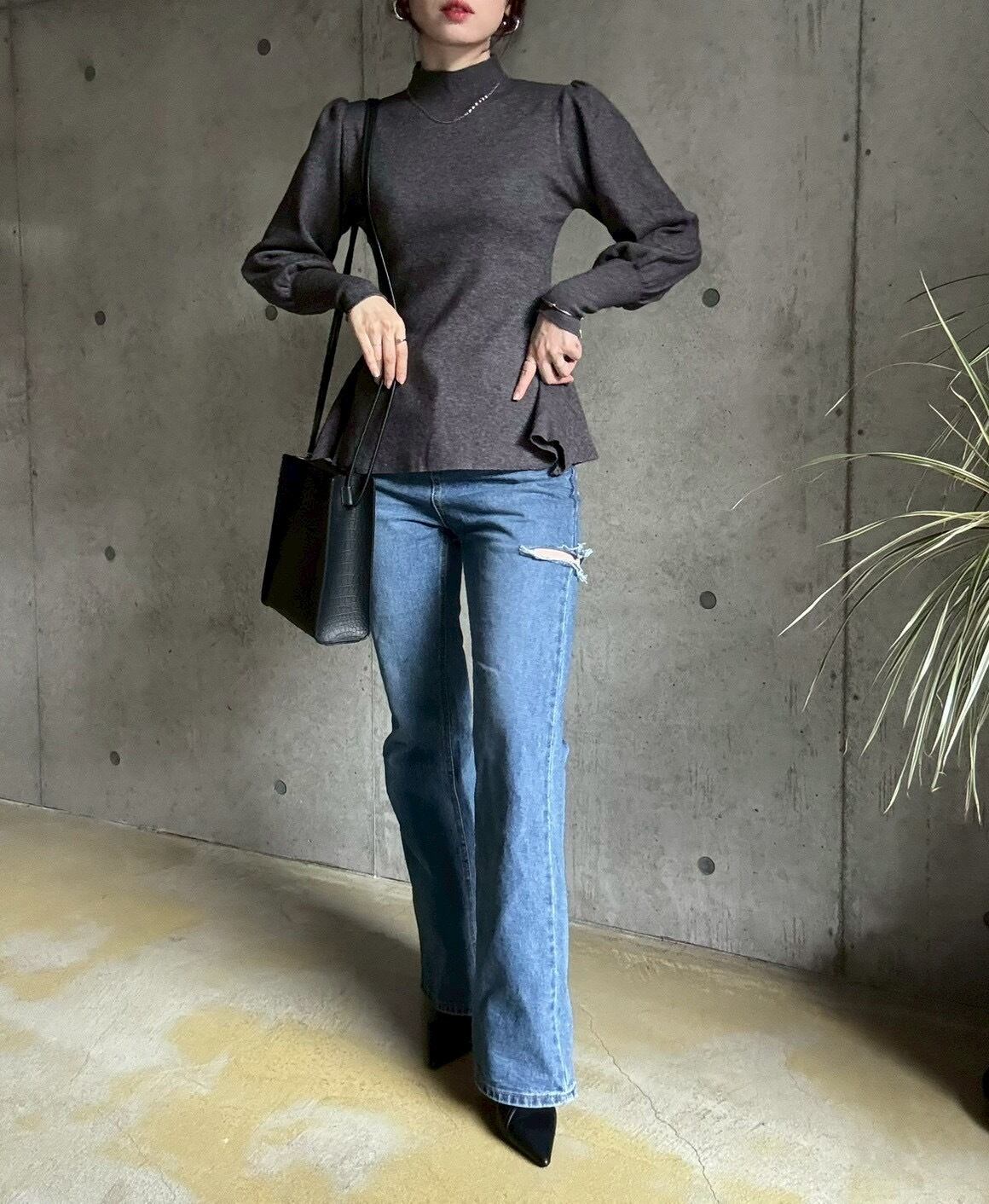 【12/24 21:00〜】Aラインパフショルダーハイネックニットtops【グレー】