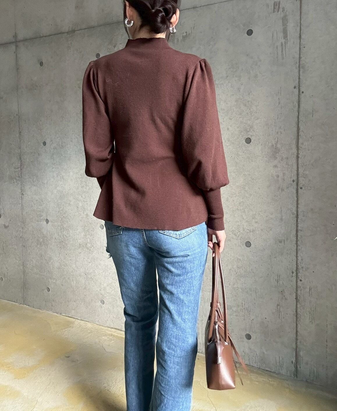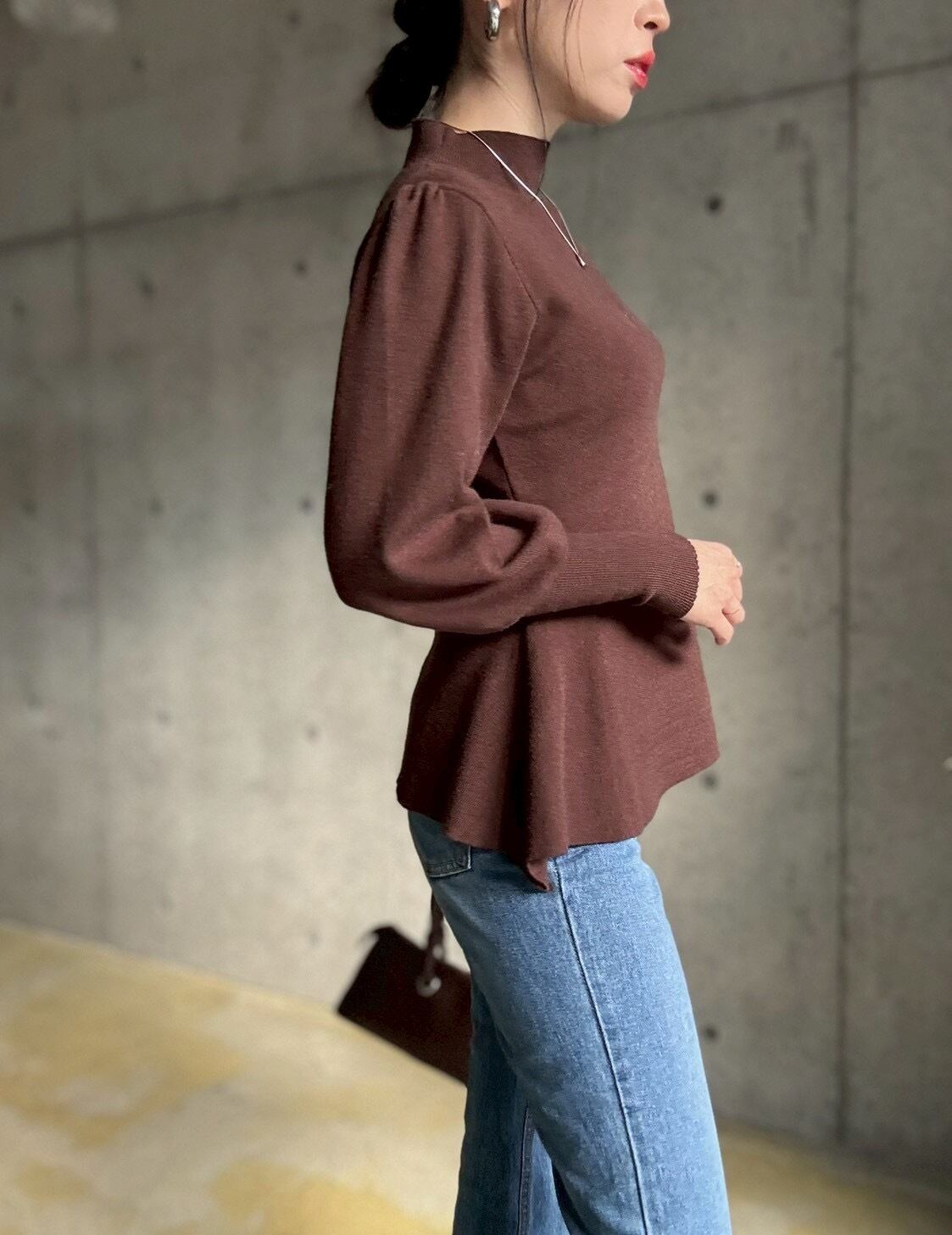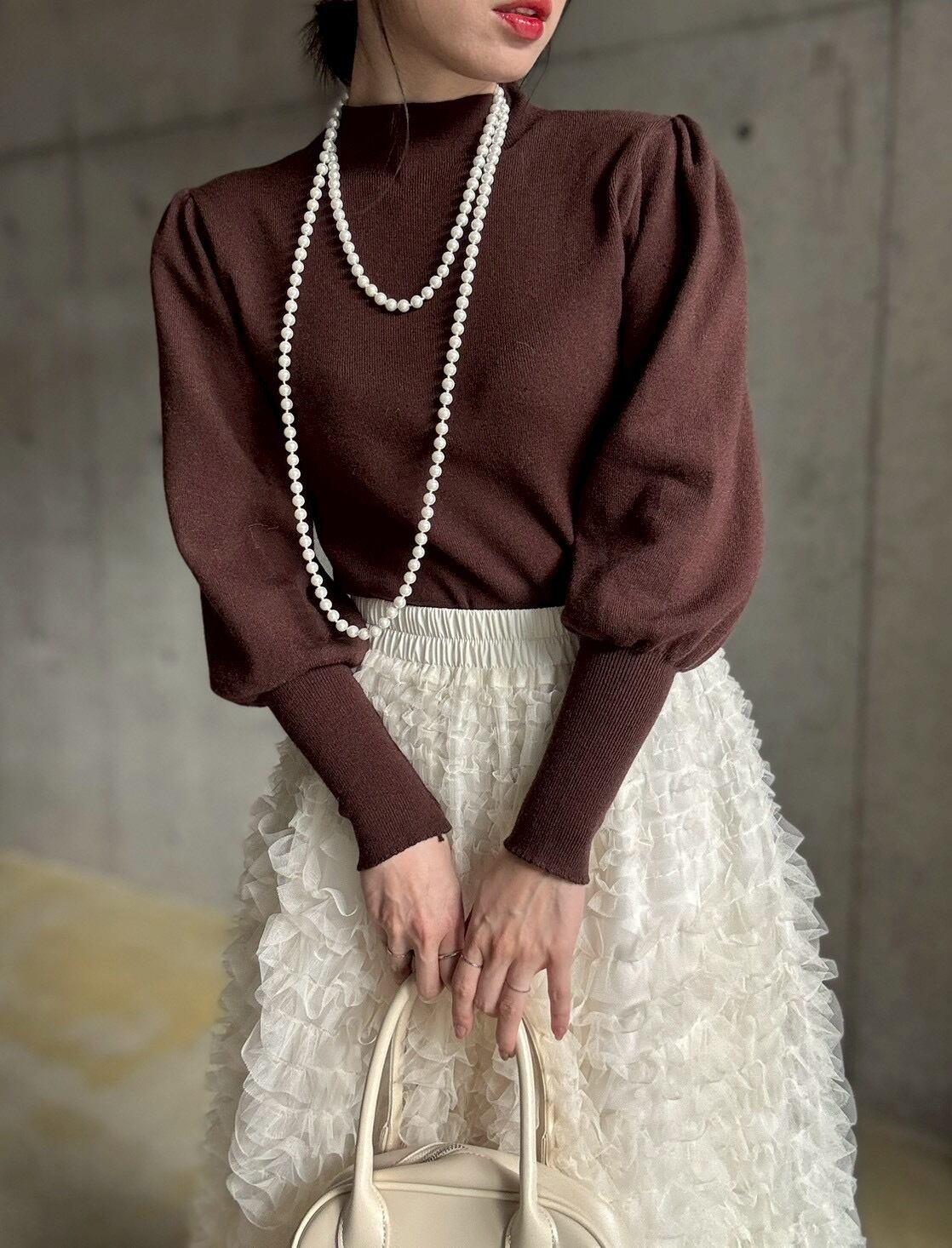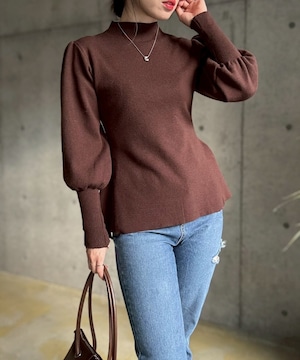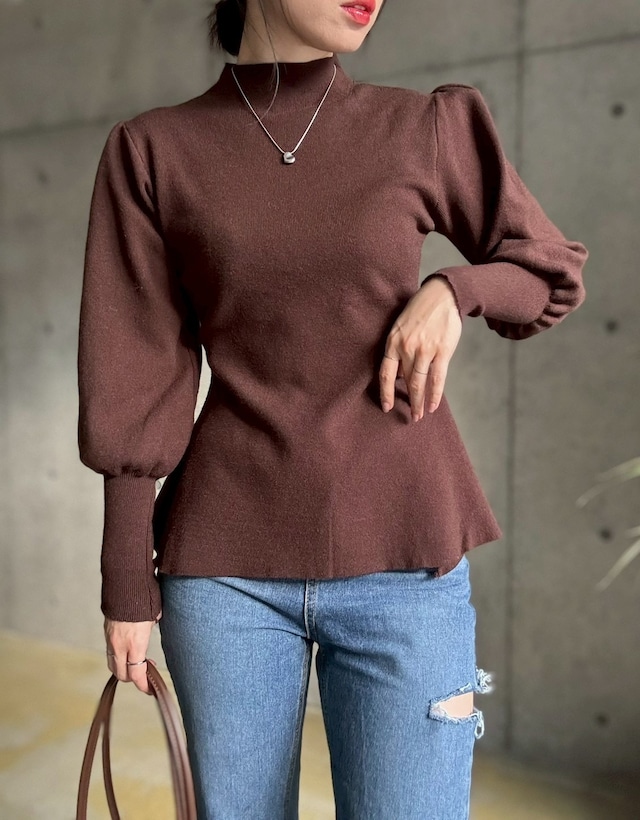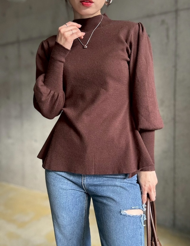【12/24 21:00〜】Aラインパフショルダーハイネックニットtops【ブラウン】