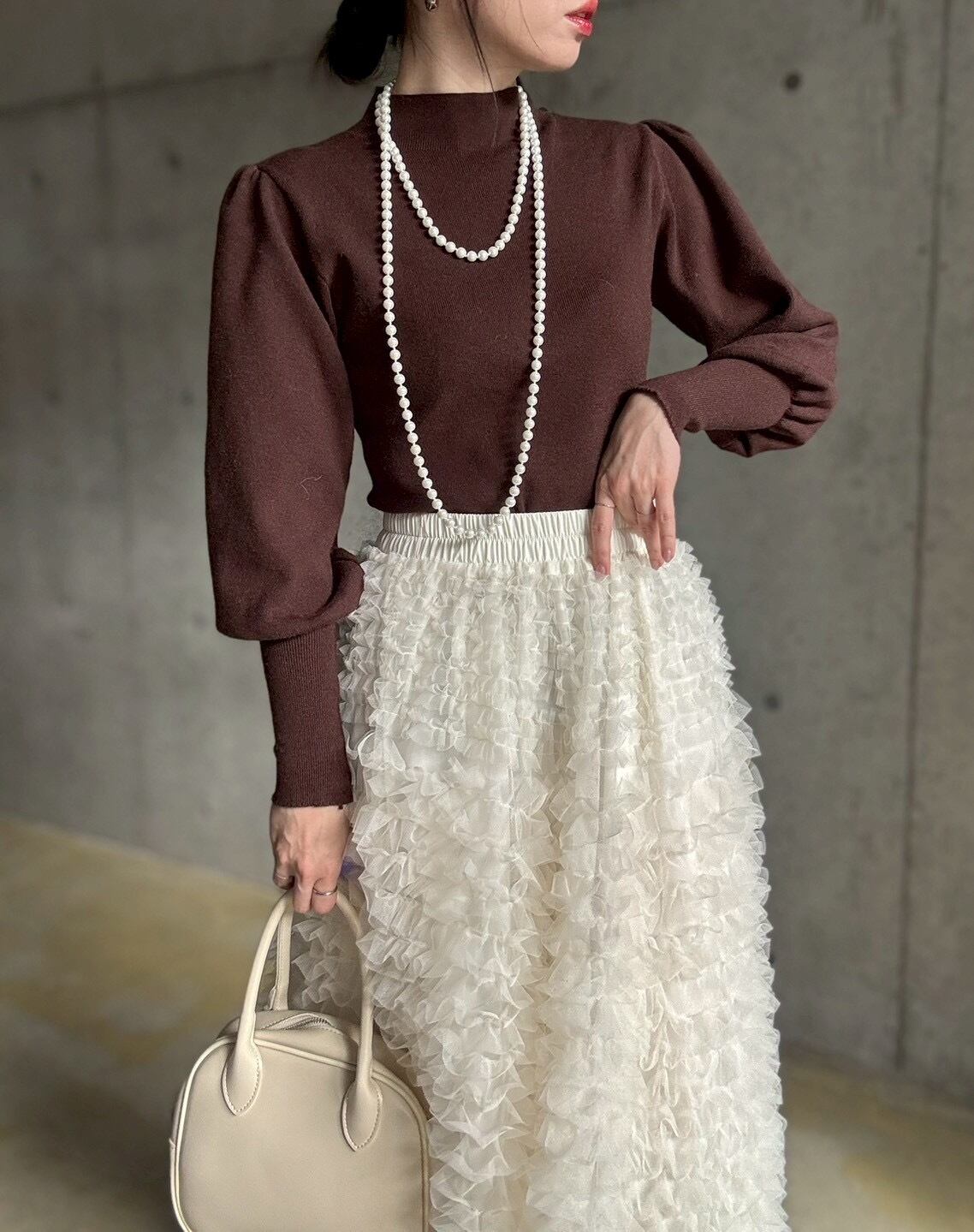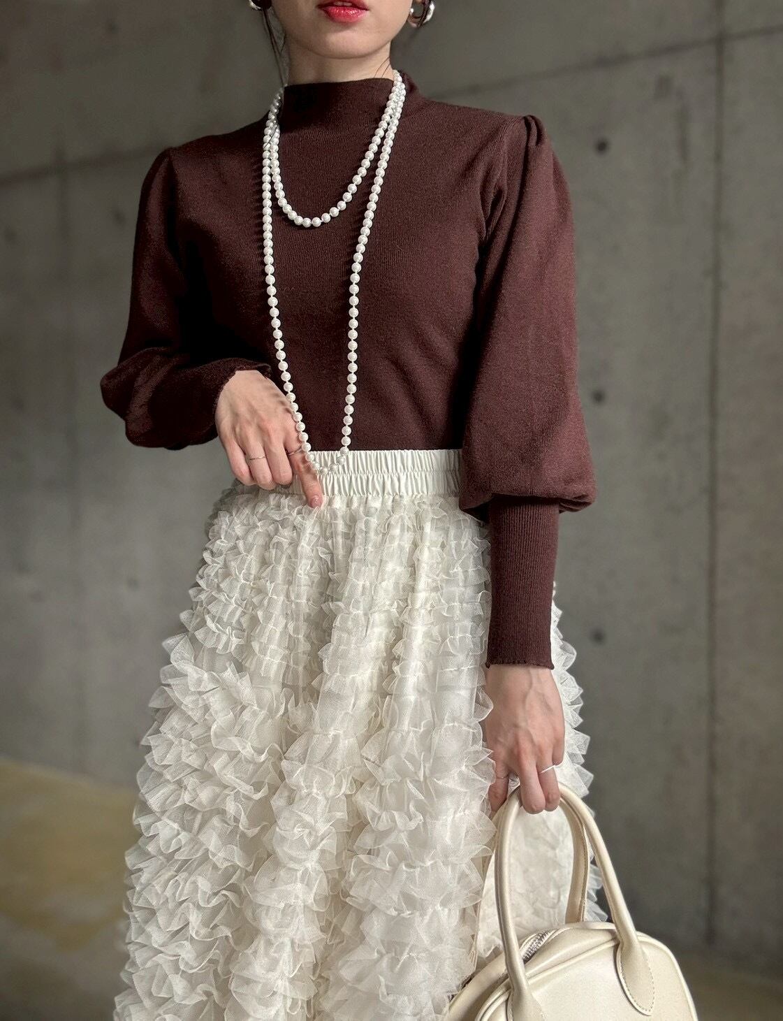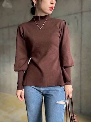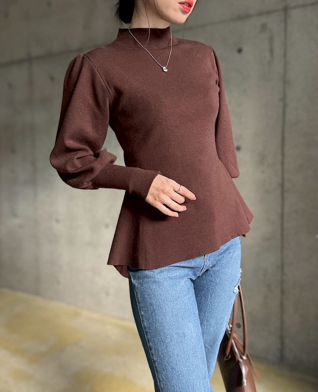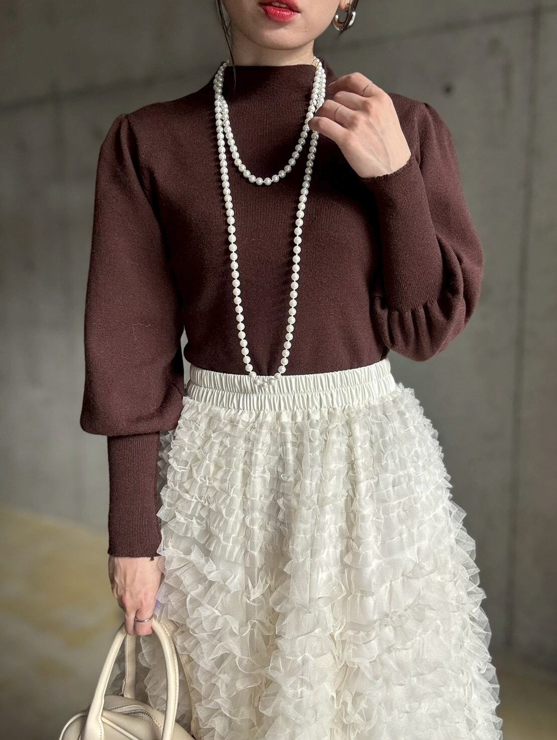 【12/24 21:00〜】Aラインパフショルダーハイネックニットtops【ブラウン】