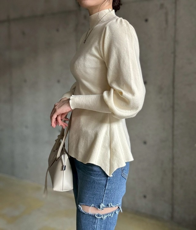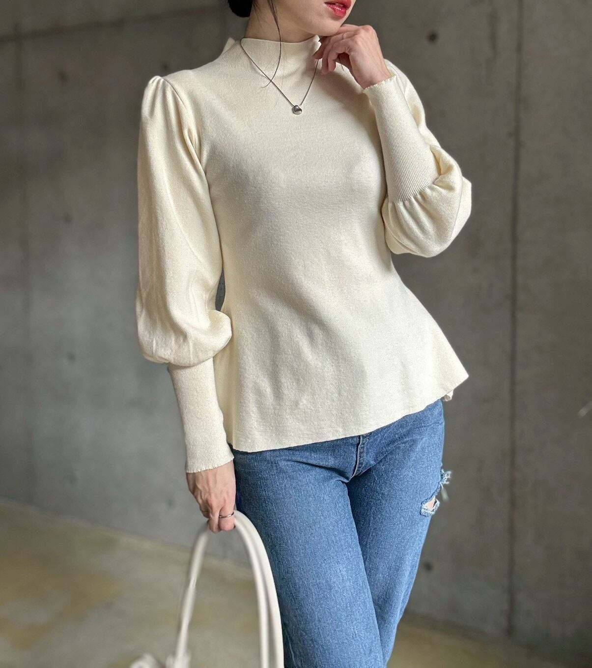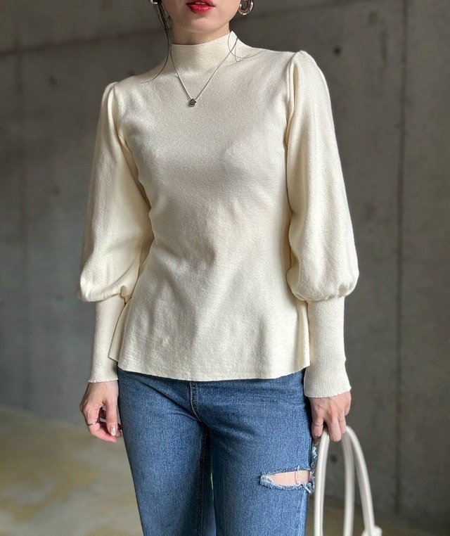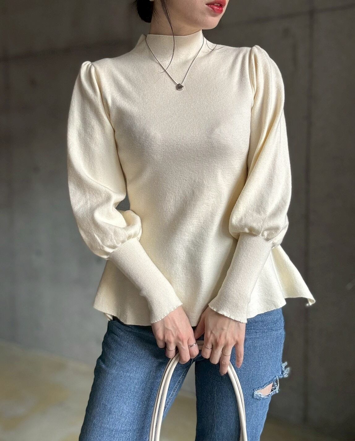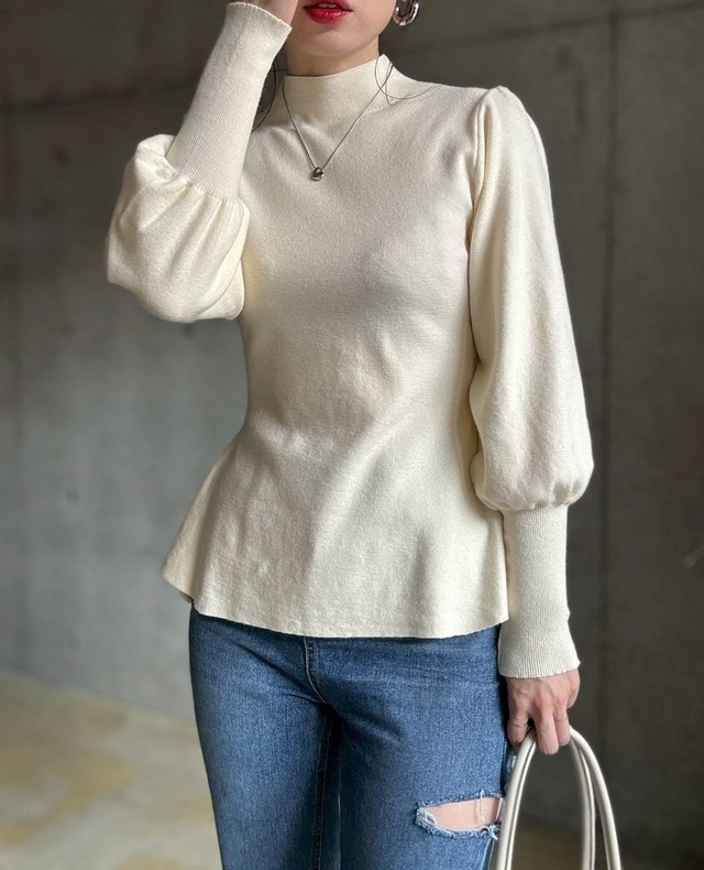 【12/24 21:00〜】Aラインパフショルダーハイネックニットtops【アイボリー】