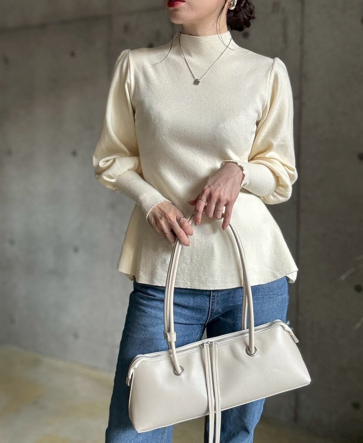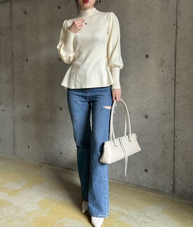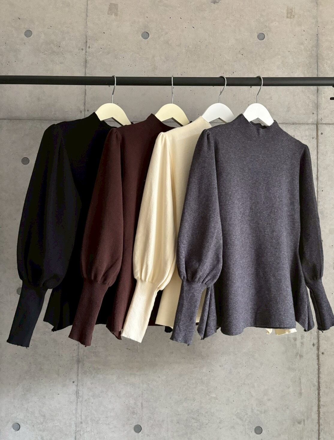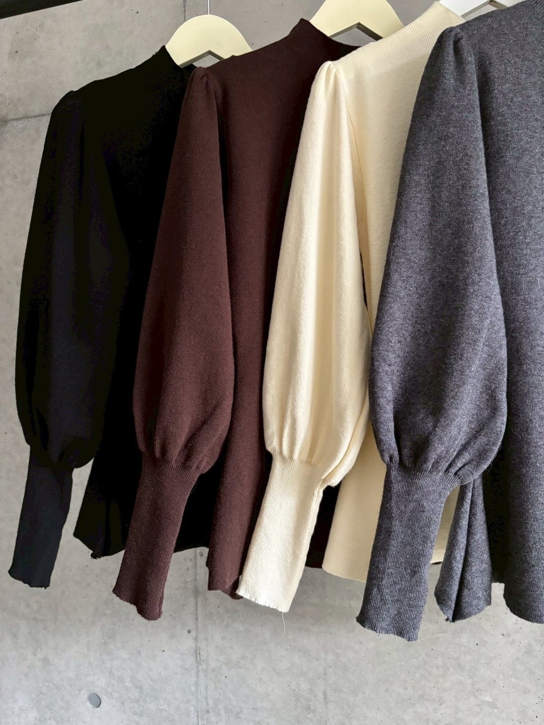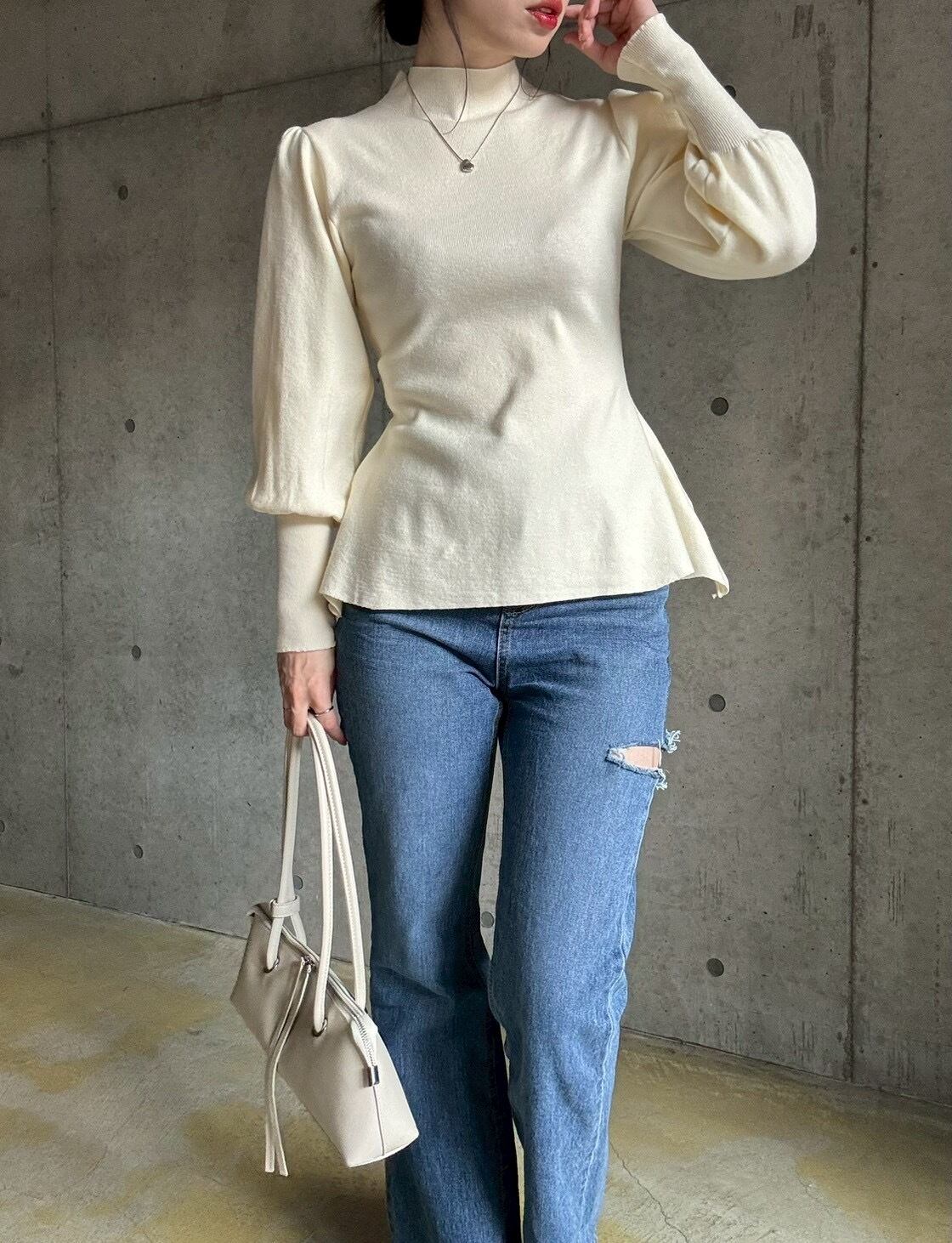 【12/24 21:00〜】Aラインパフショルダーハイネックニットtops【アイボリー】