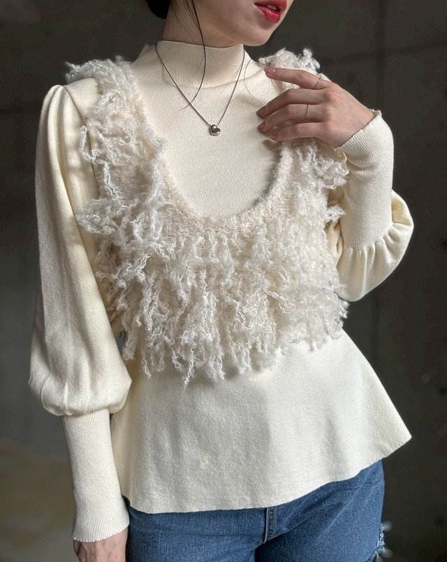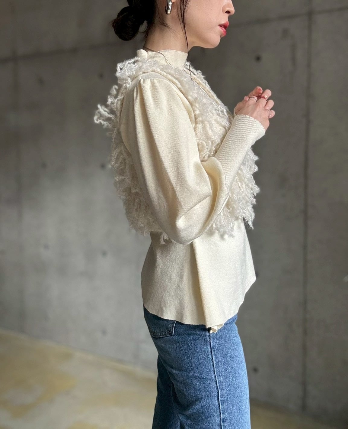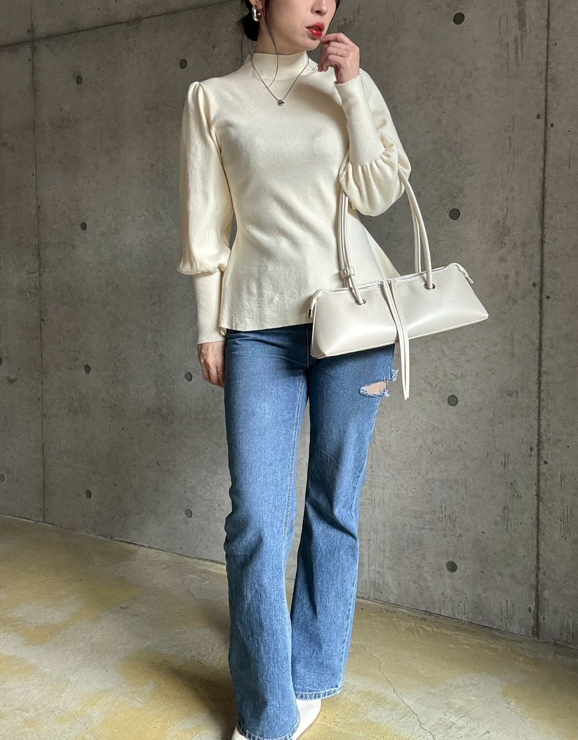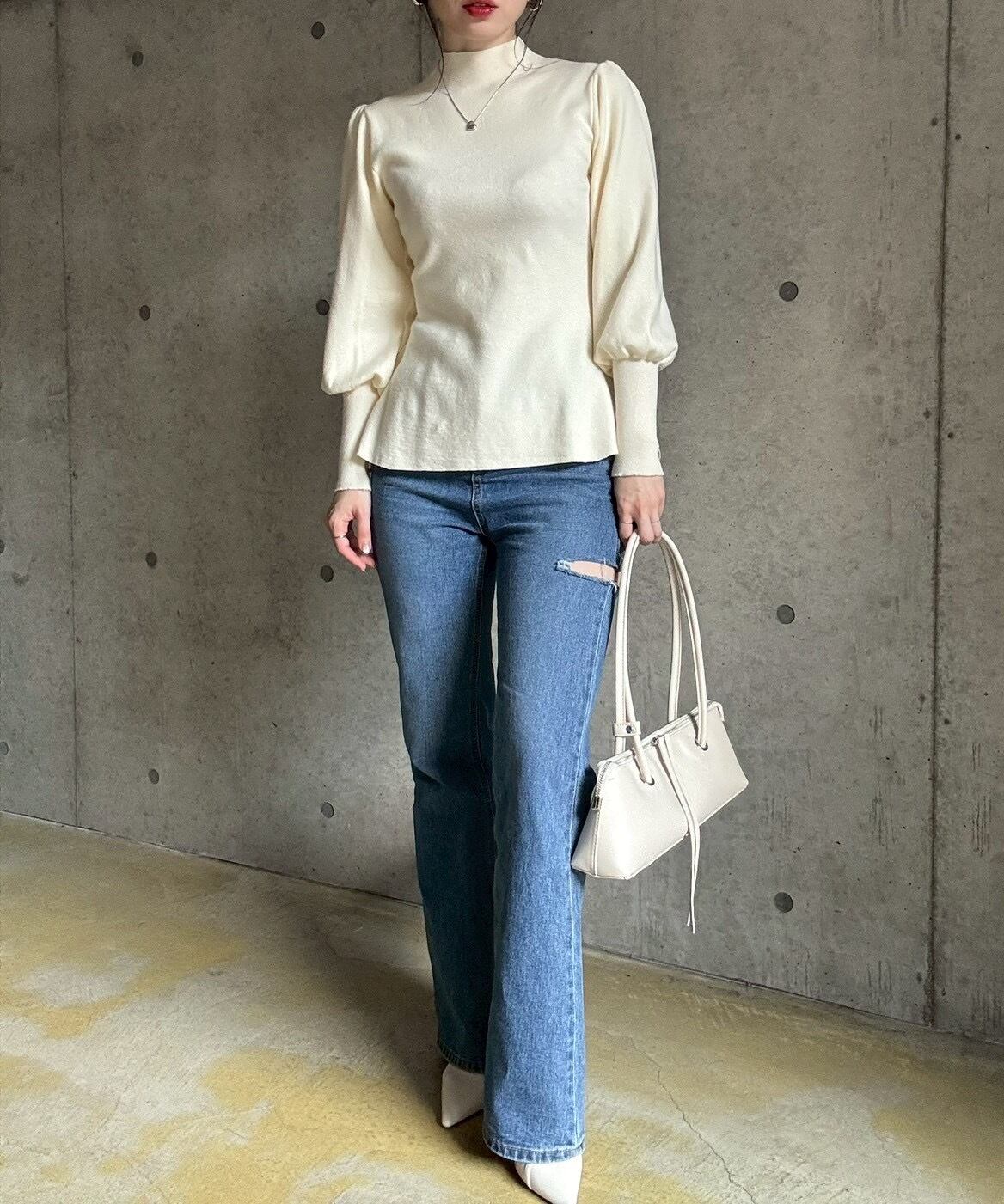 【12/24 21:00〜】Aラインパフショルダーハイネックニットtops【アイボリー】