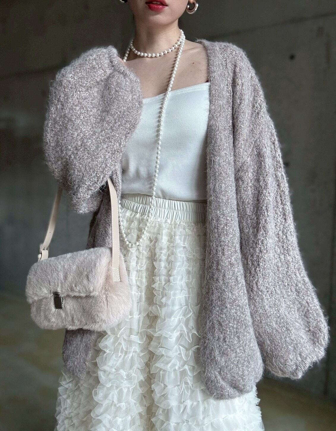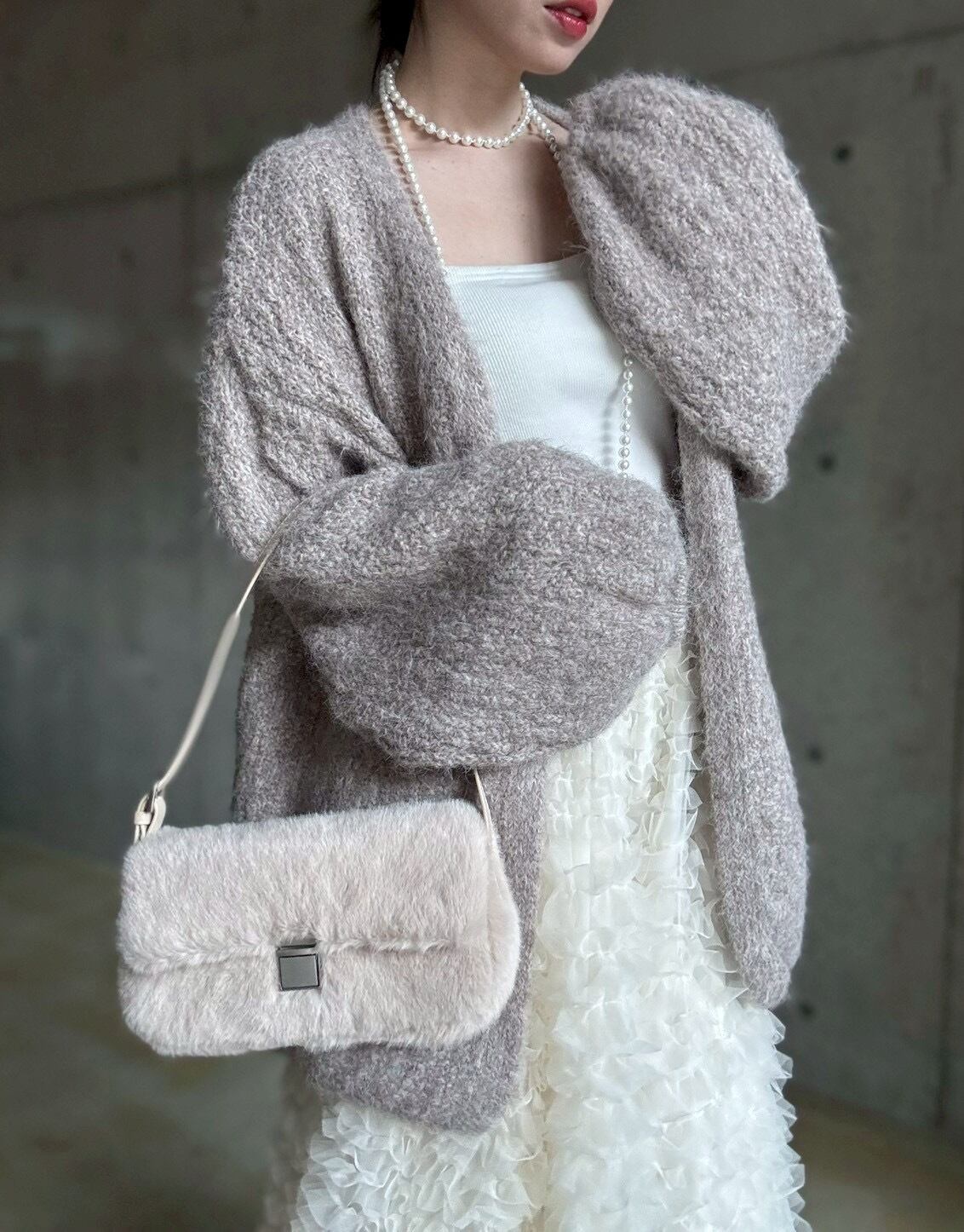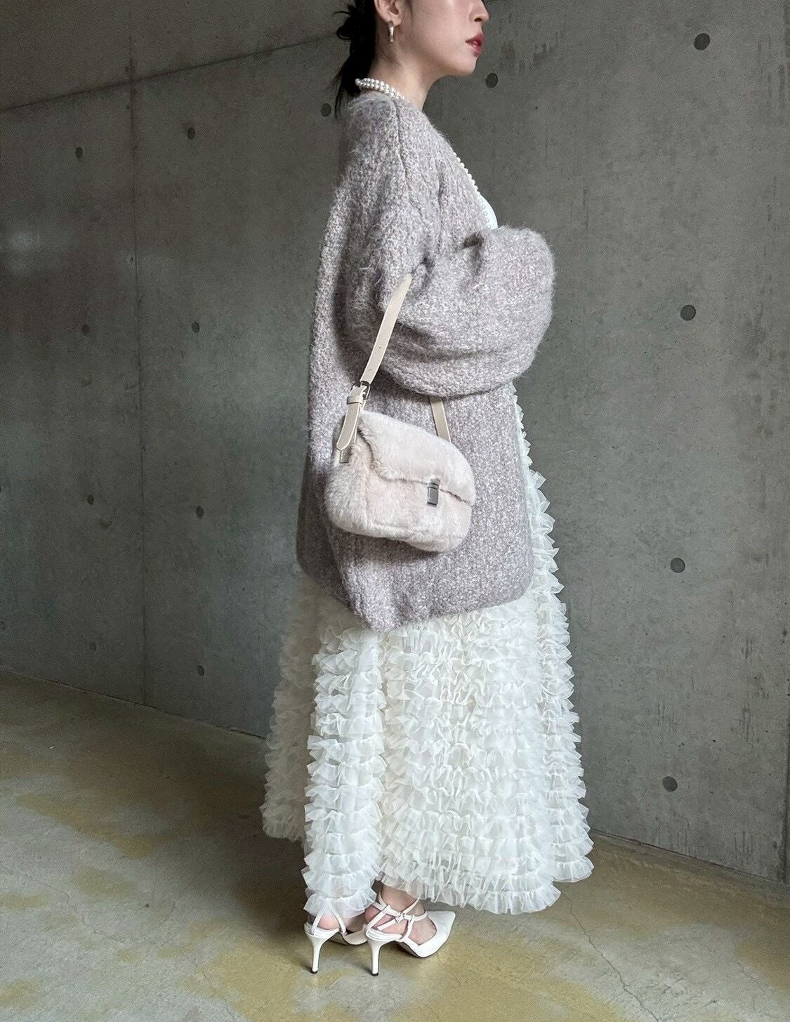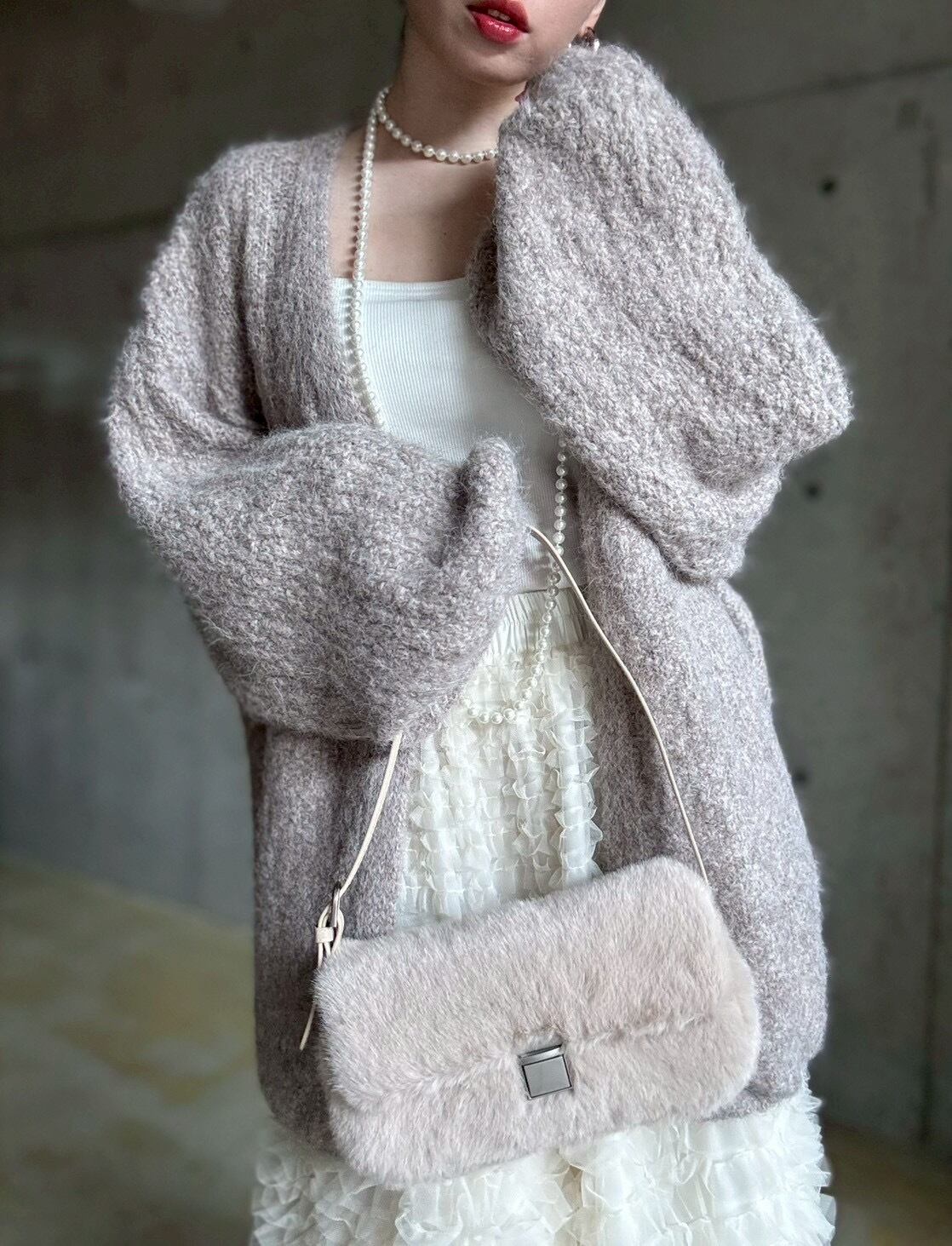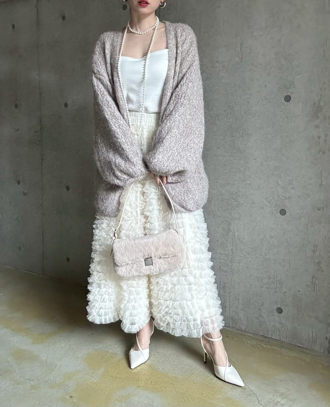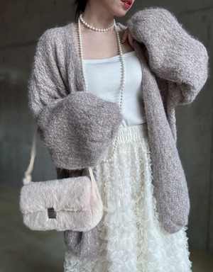 【12/24 21:00〜】フェイクファースクエアワンハンドルbag【ライトベージュ】
