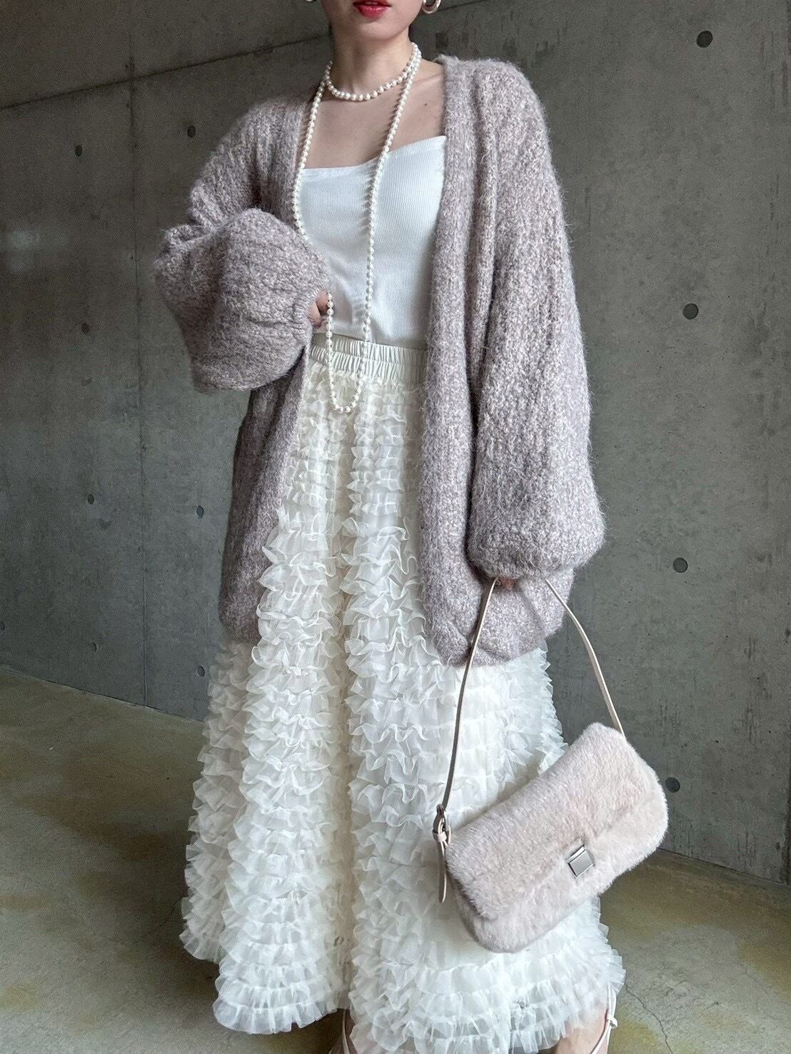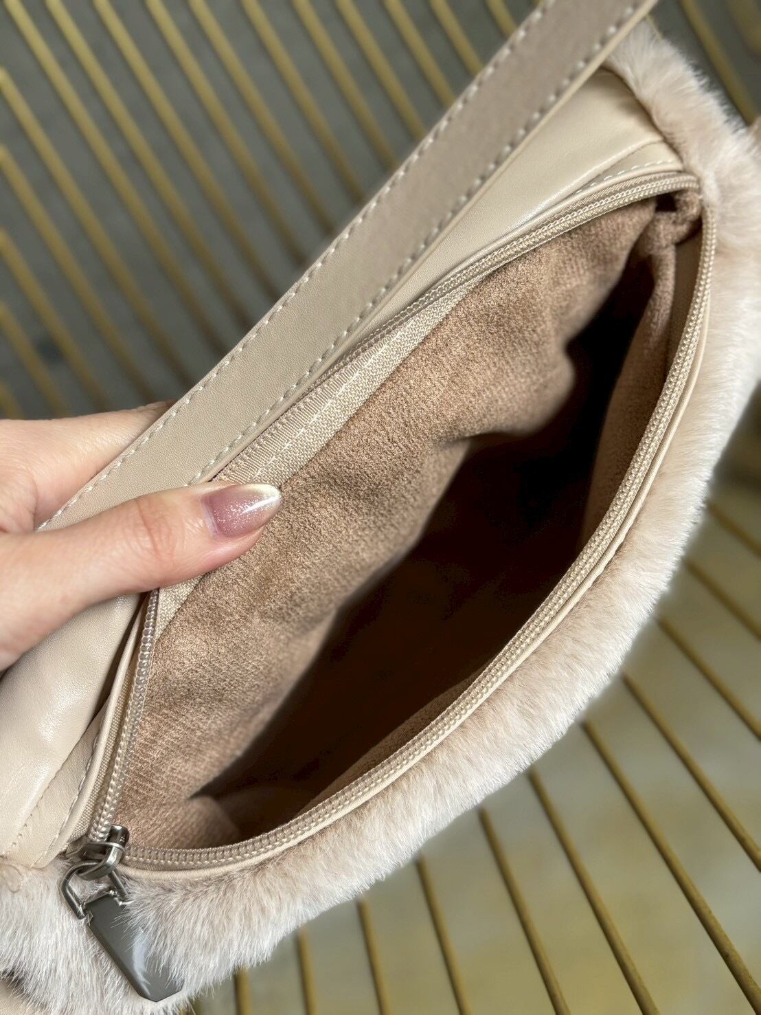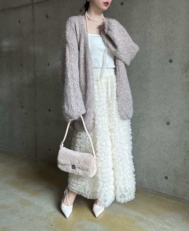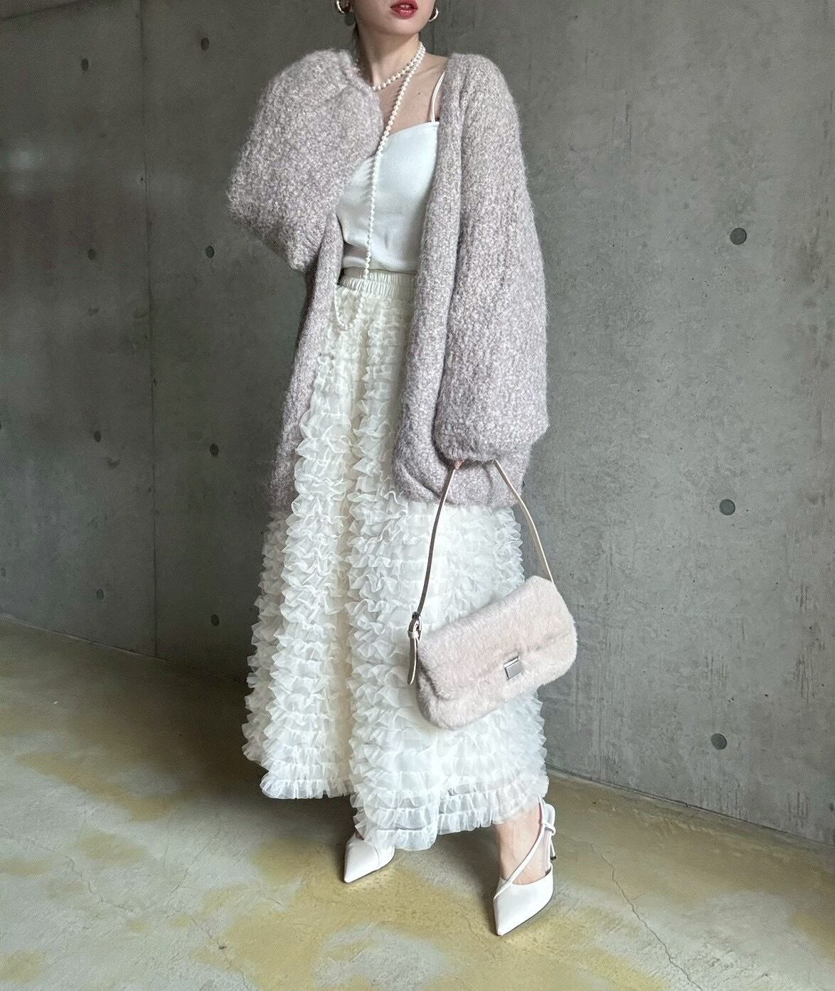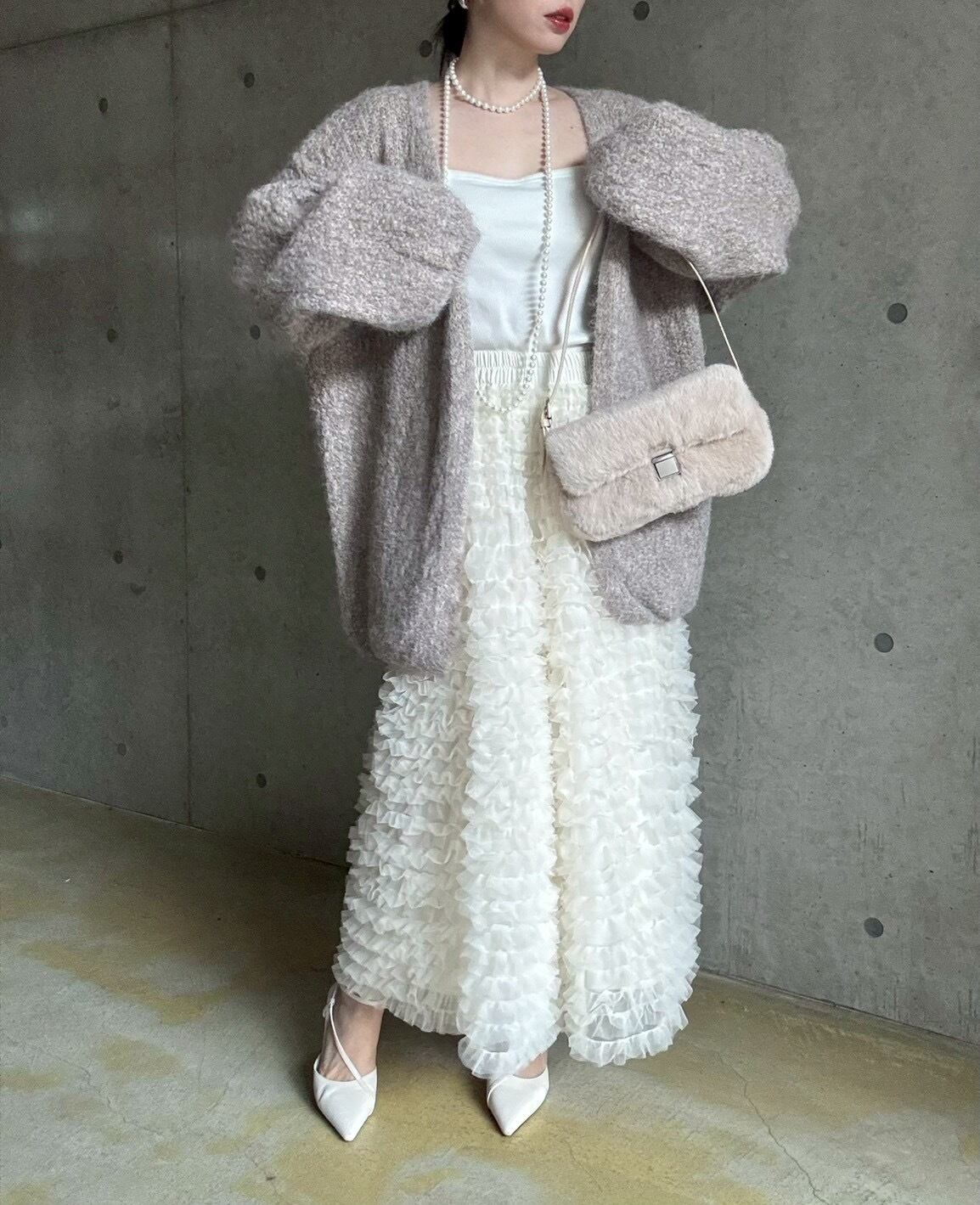 【12/24 21:00〜】フェイクファースクエアワンハンドルbag【ライトベージュ】