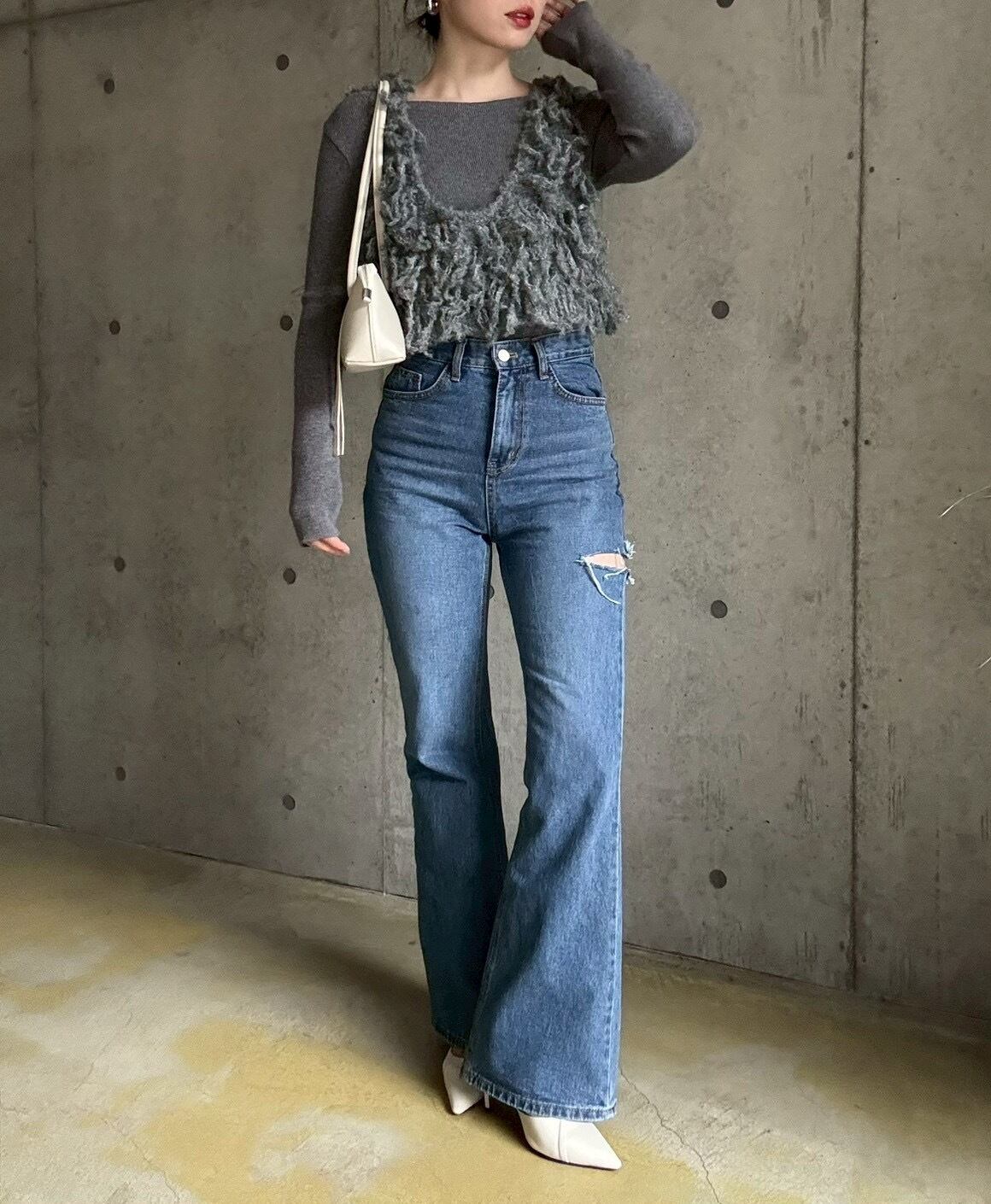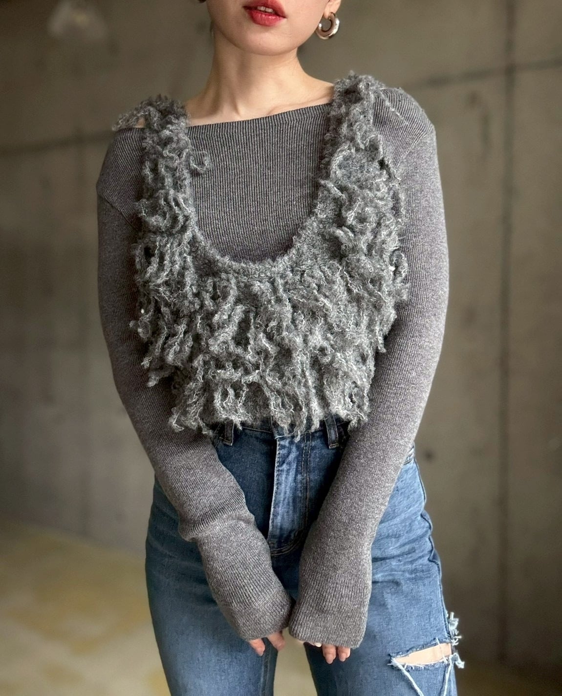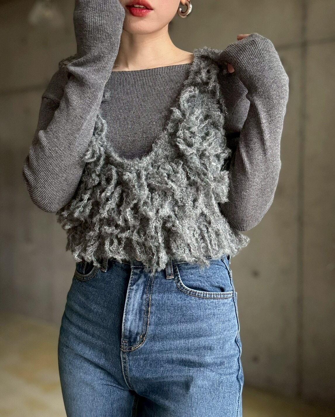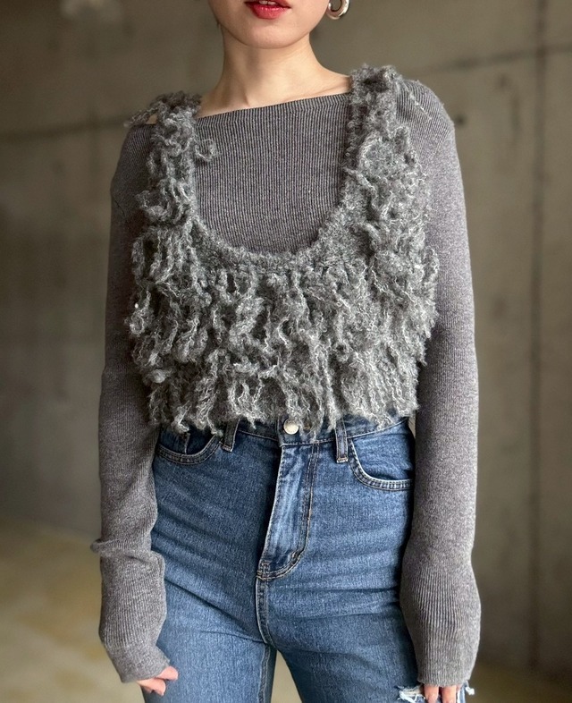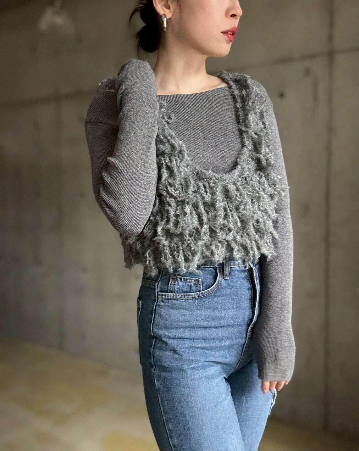【12/24 21:00〜】ブークレフリンジニットビスチェ【グレー】