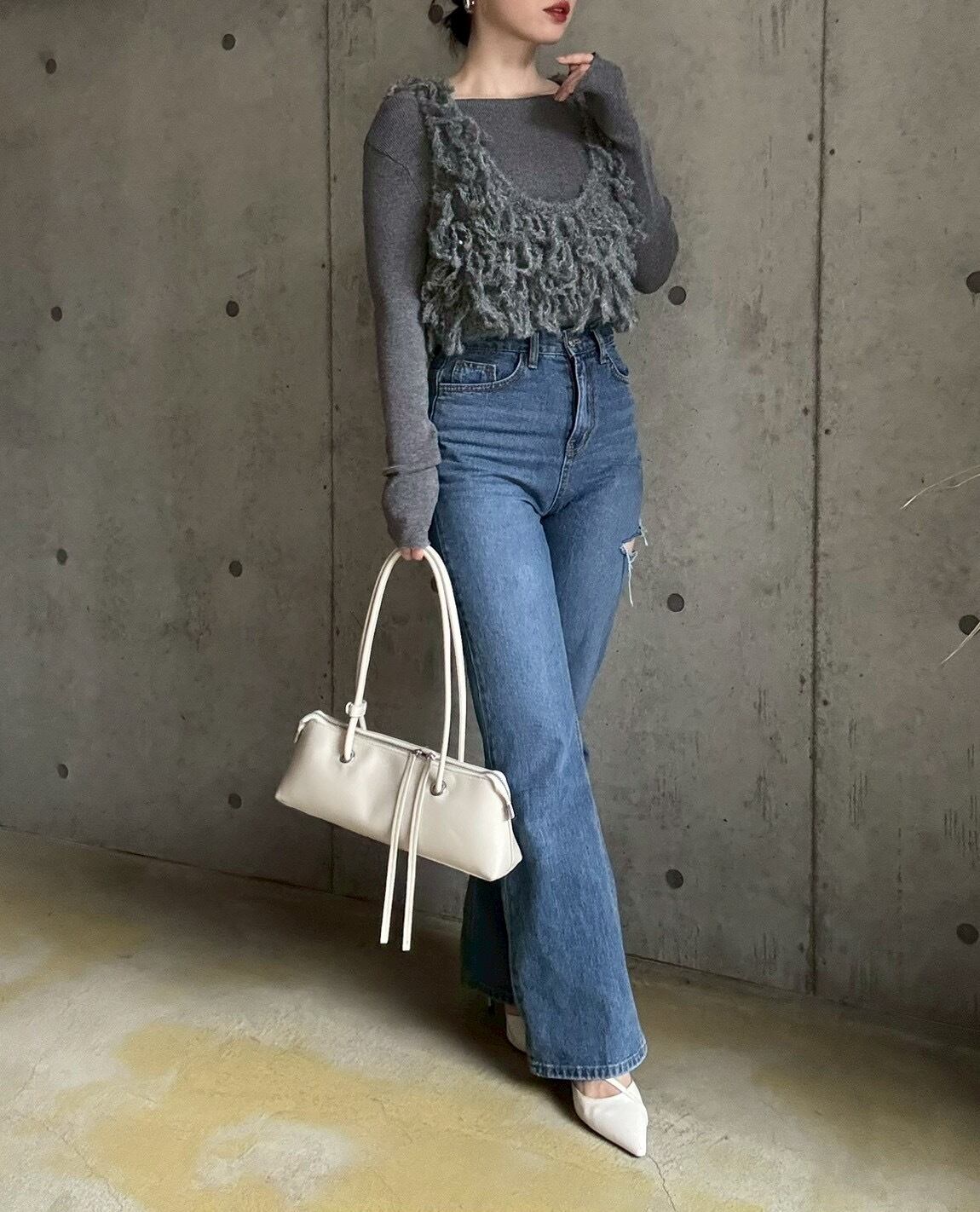使い勝手バツグンなのにおしゃれ見え♪レイヤードスタイルに便利なニットフリンジビスチェ✨
