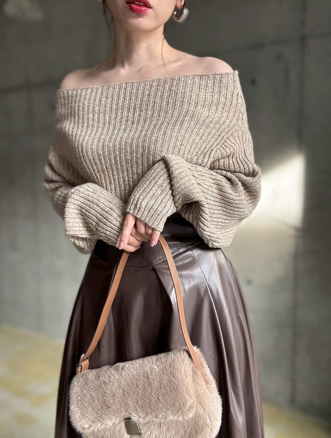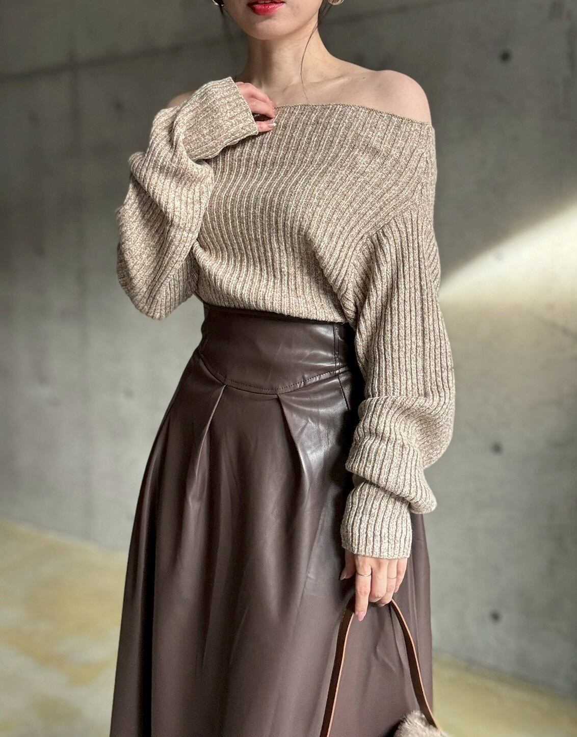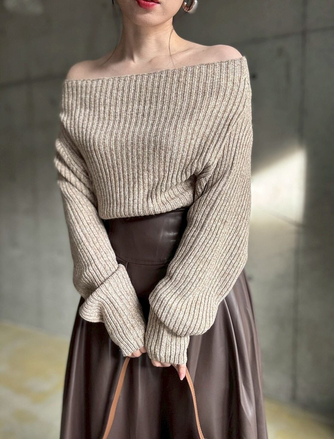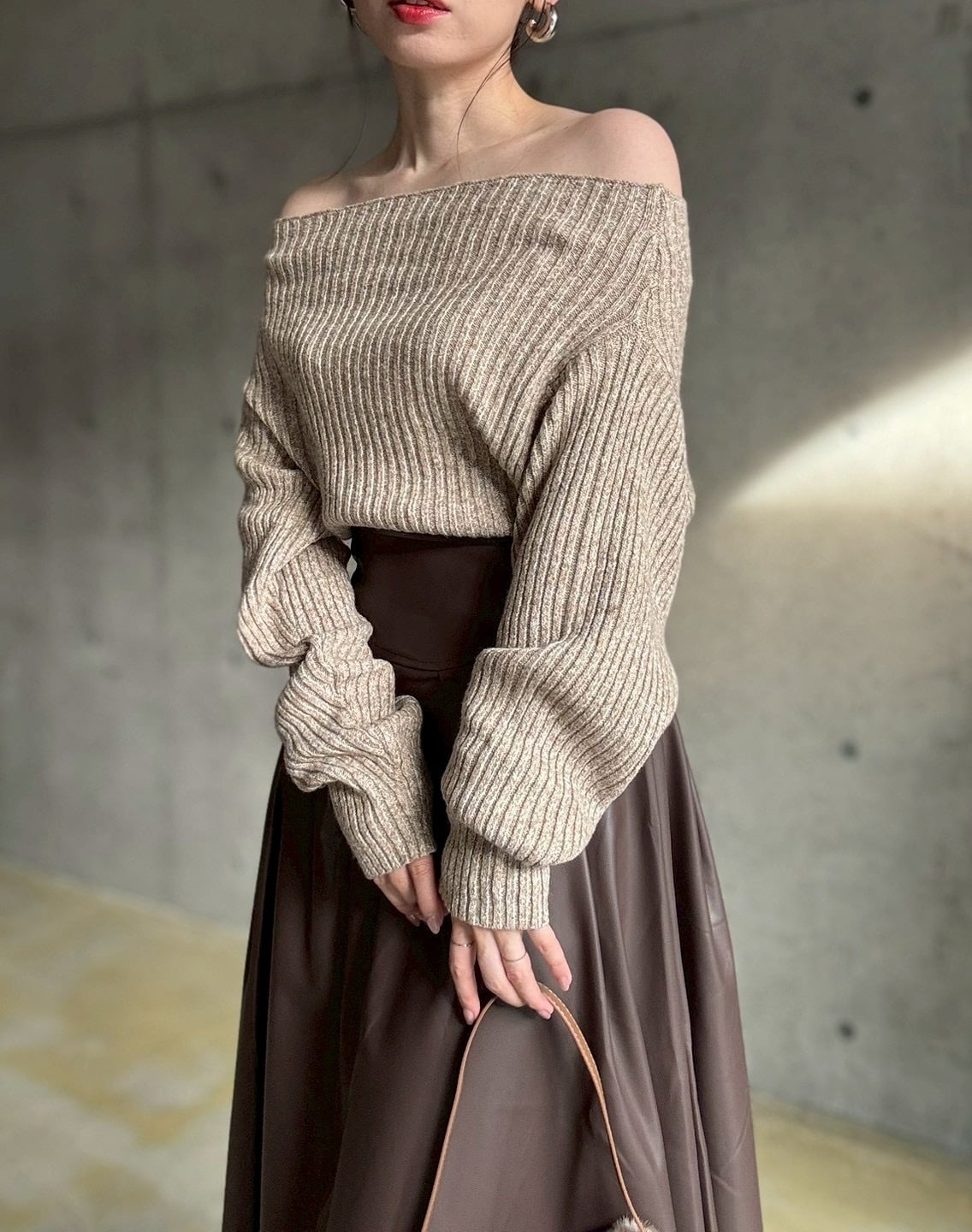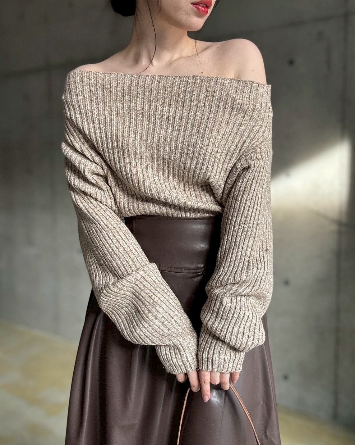 ミックスニットがポイントのオフショルニットプルオーバー✨