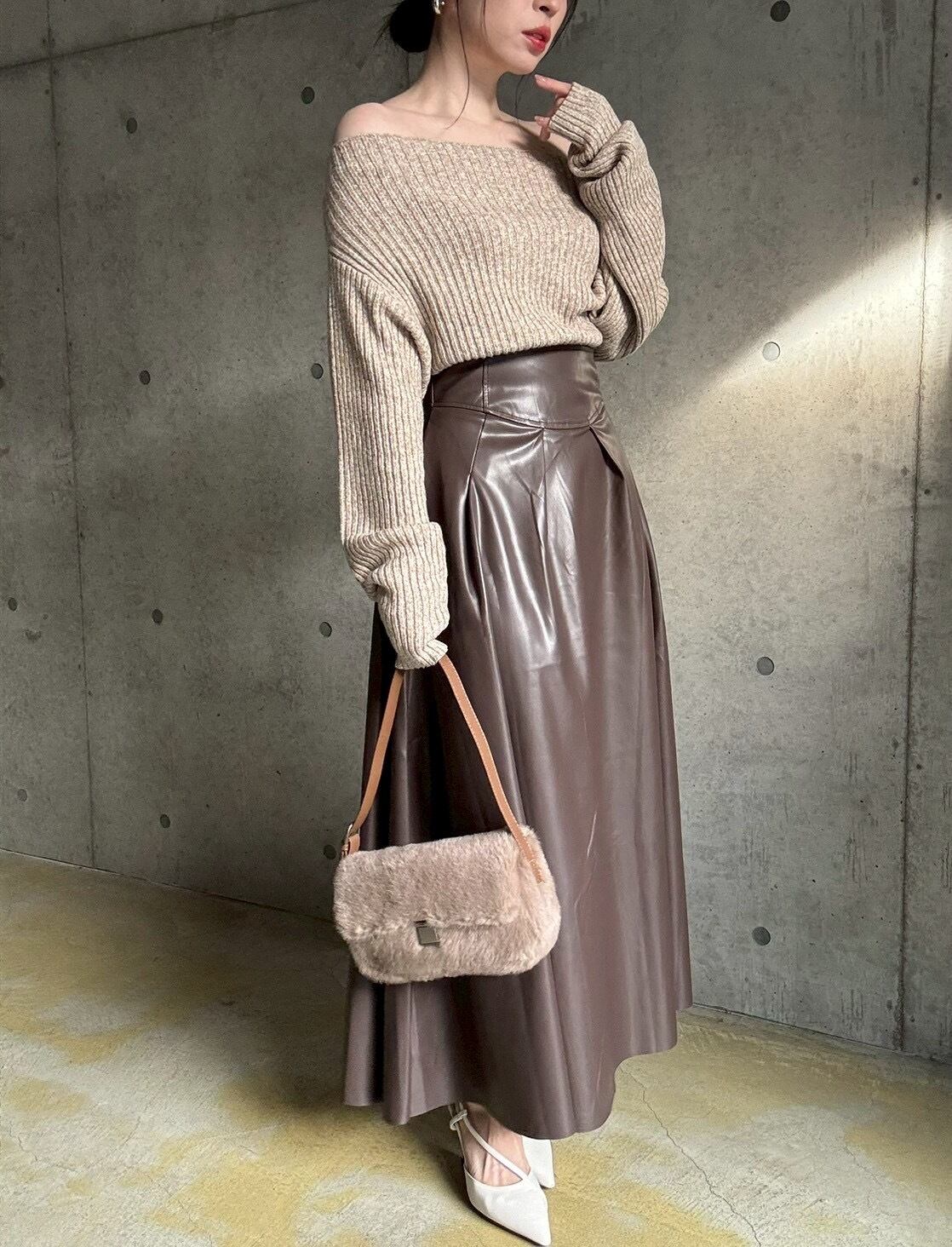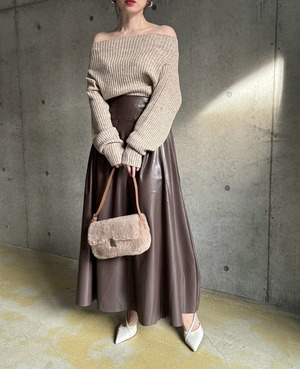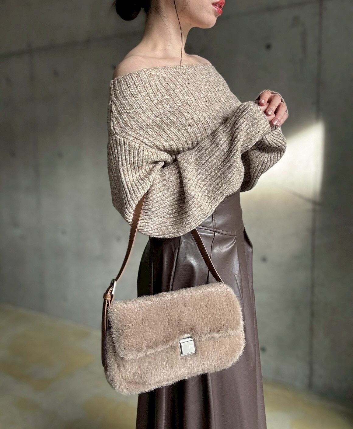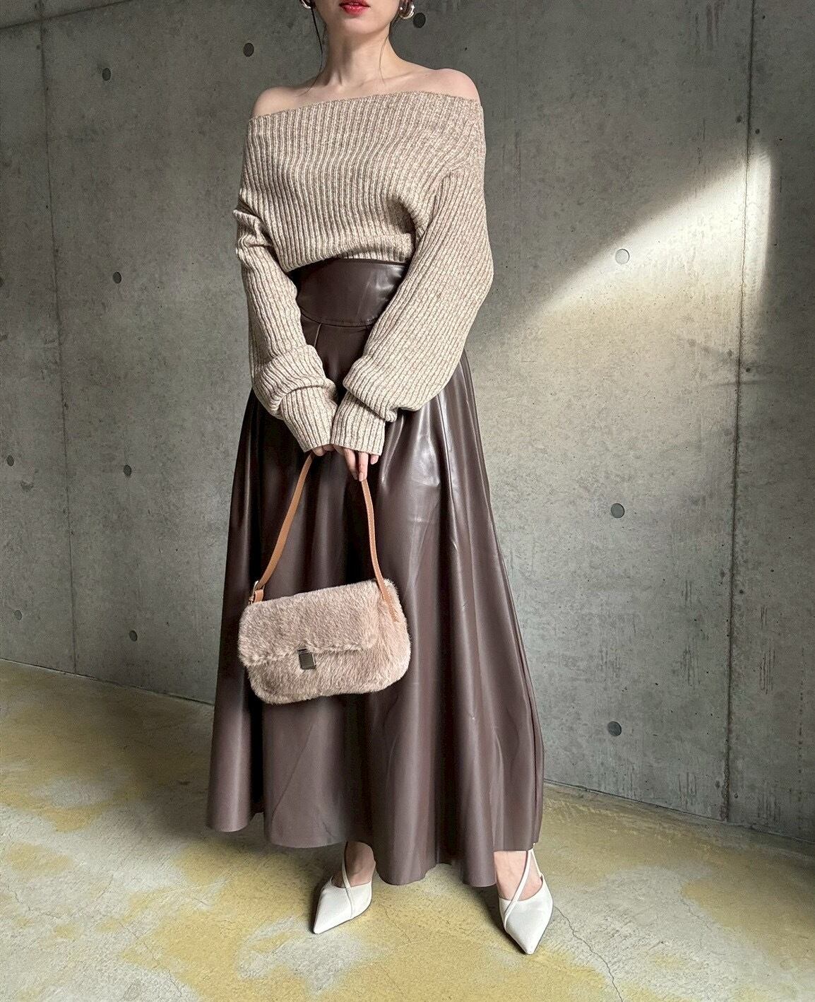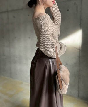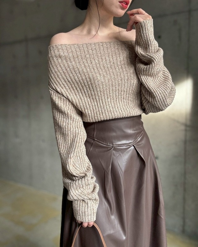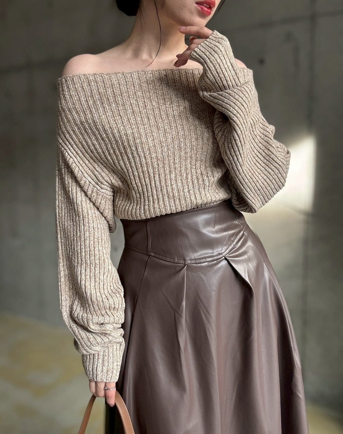 ミックスニットがポイントのオフショルニットプルオーバー✨