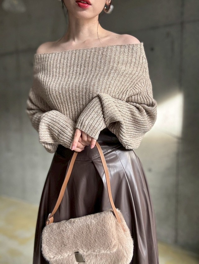 表情豊かなミックスニット糸で仕立てたオフショルダープルオーバー♪