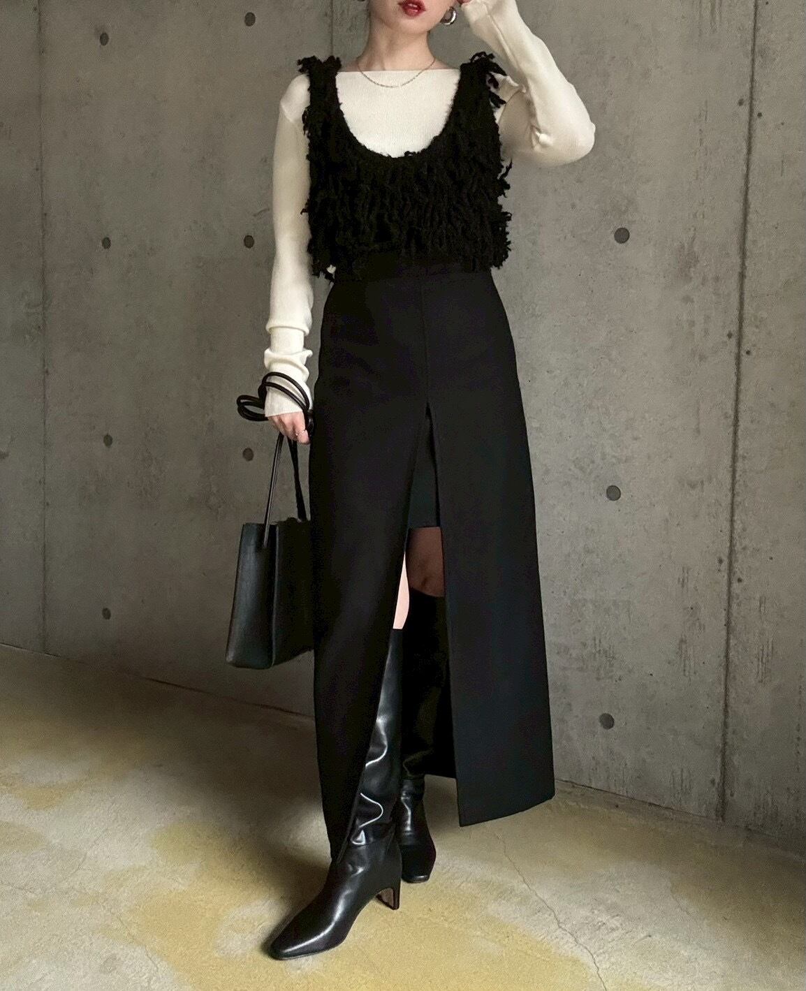 お問合せ殺到!!深めスリットとインナースカートがポイント♪超美シルエットのロングナロースカート✨
