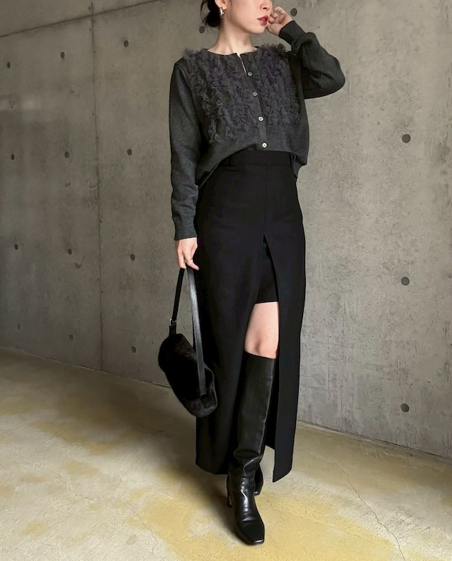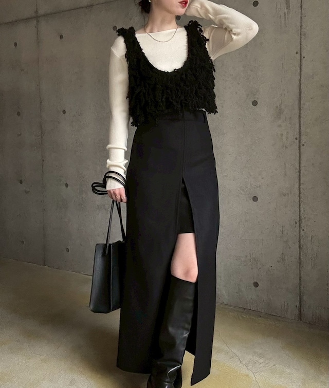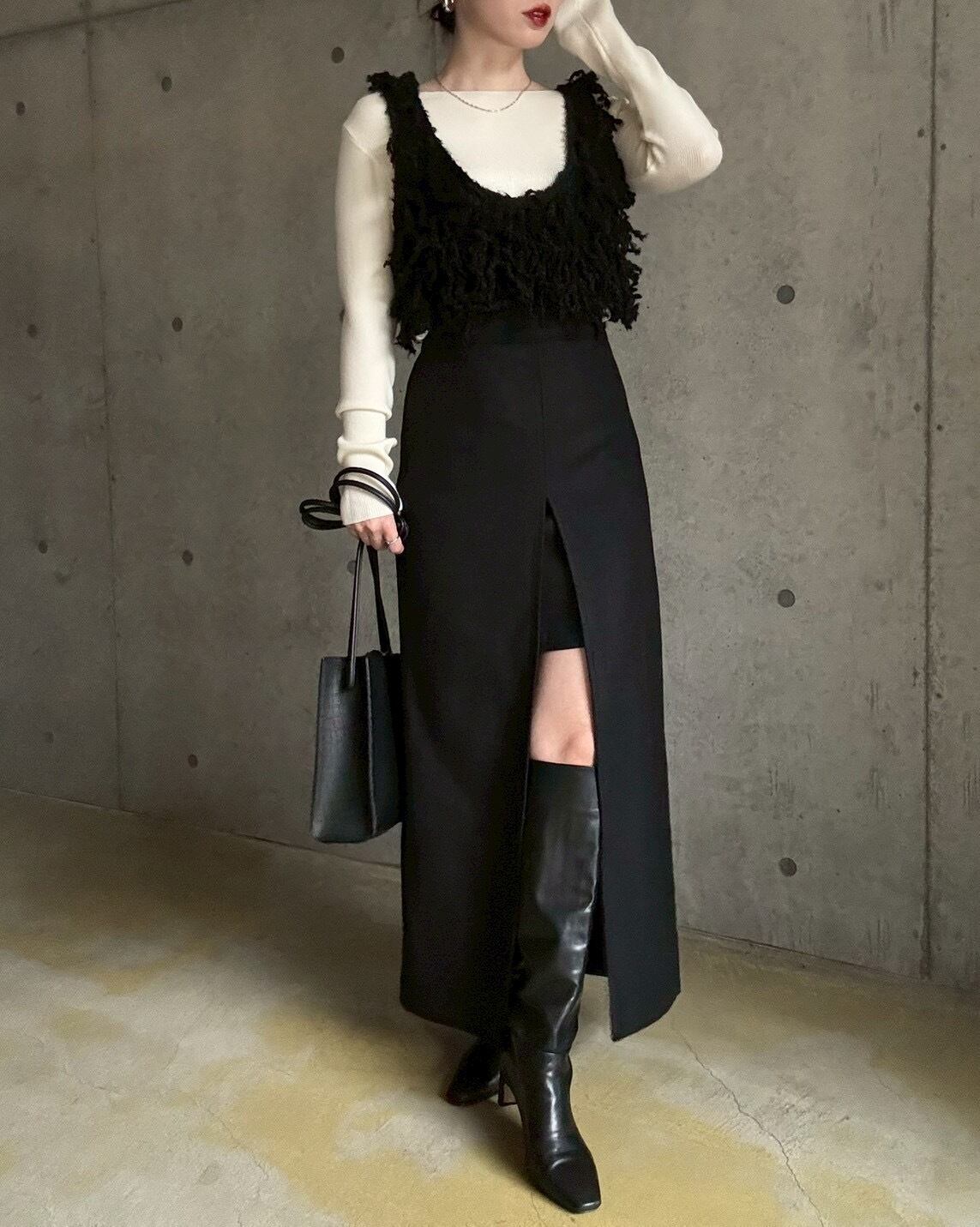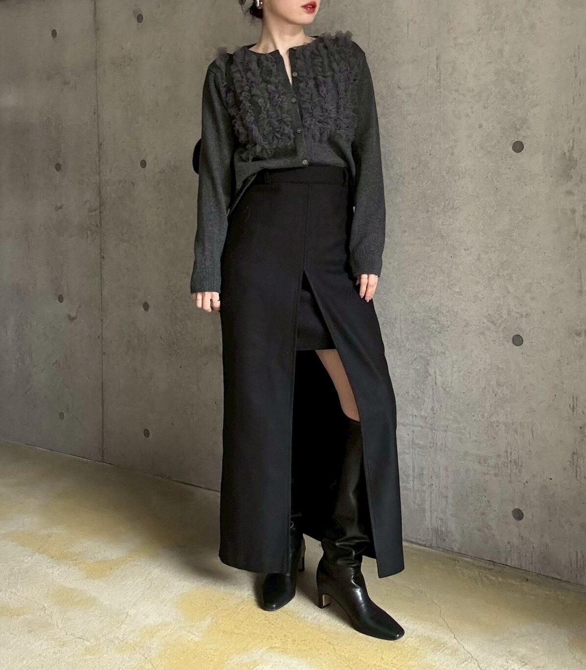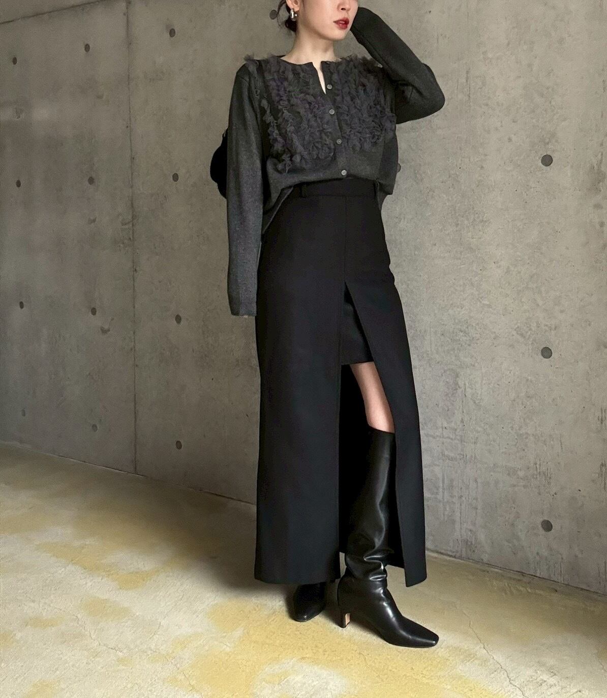 深めのスリットがコーデのアクセントに♪インナーにスカートを履いているようなデザインで、こなれ感を演出しつつ深めのスリットも気にせず着て頂けます✨