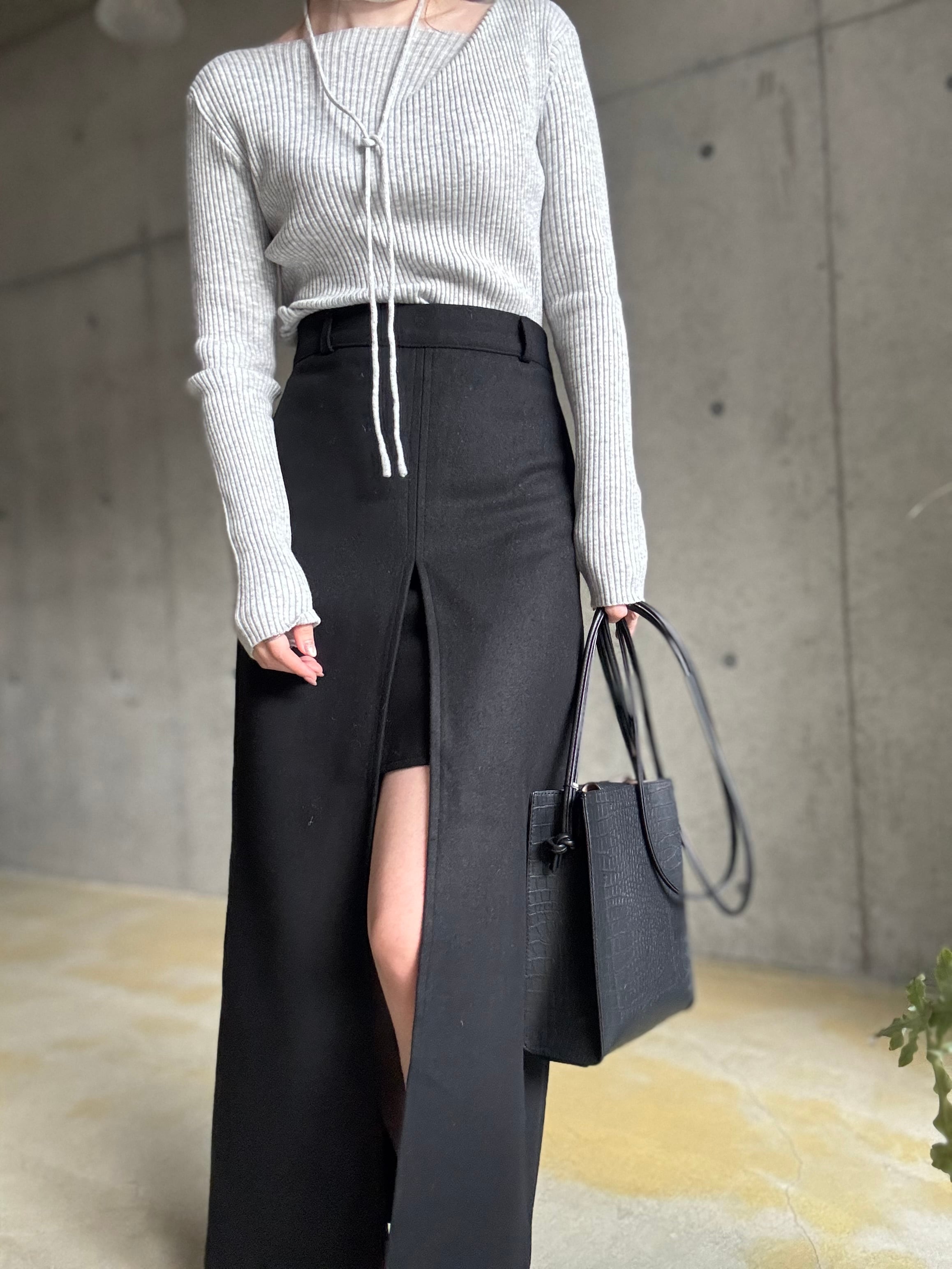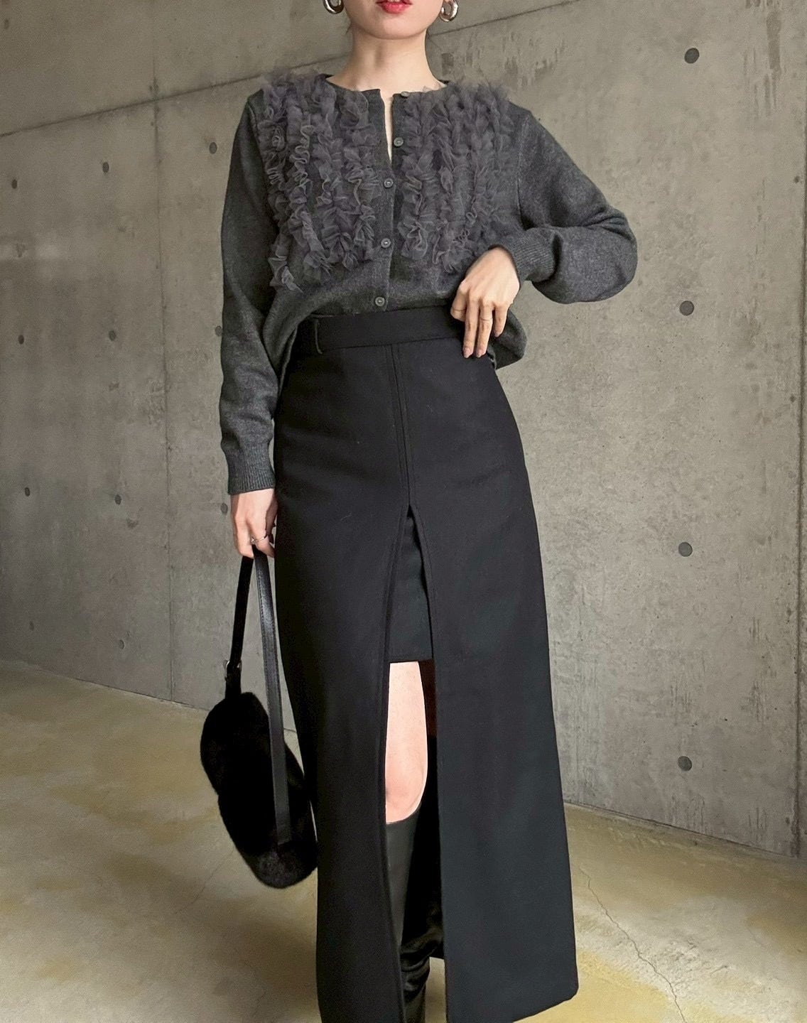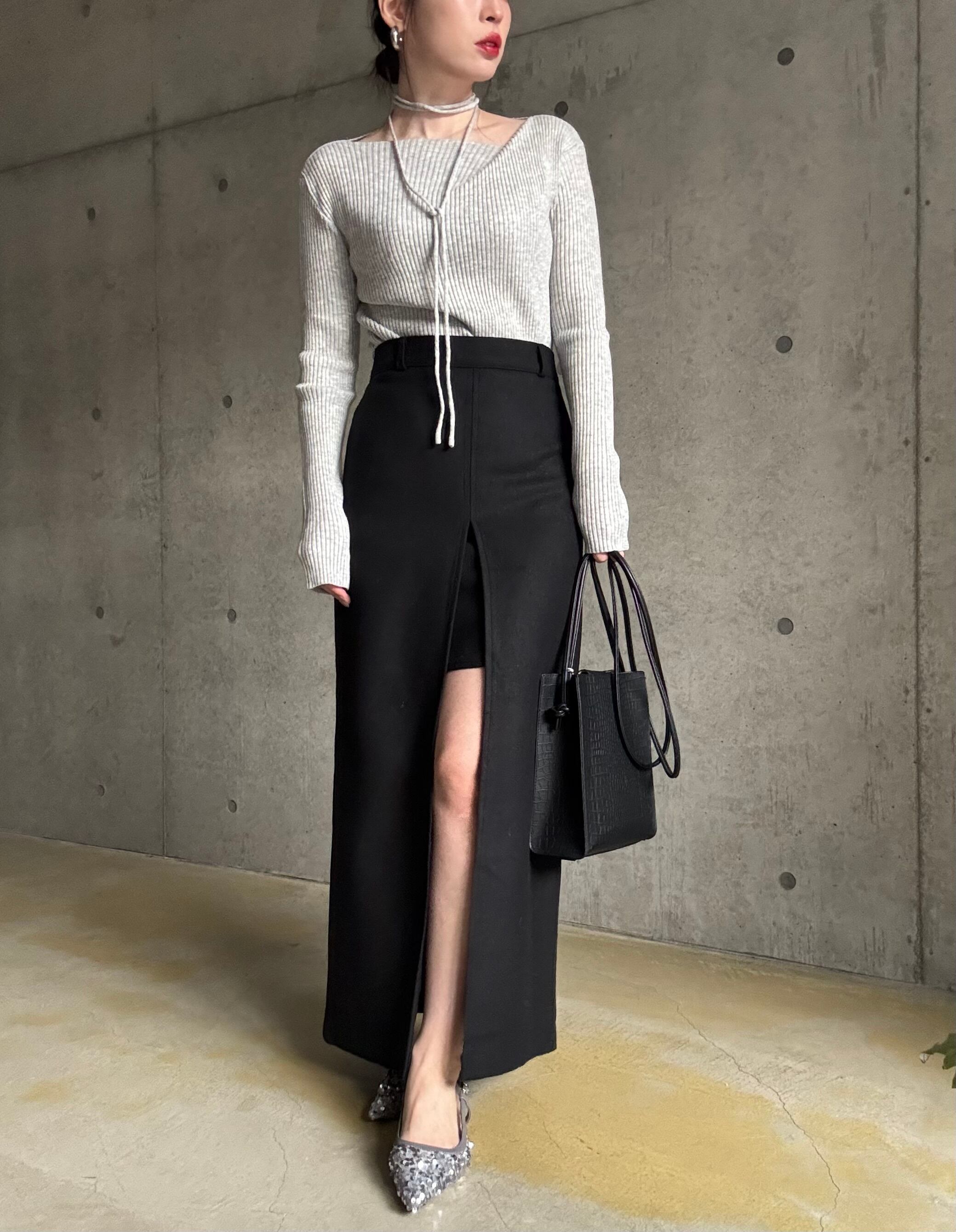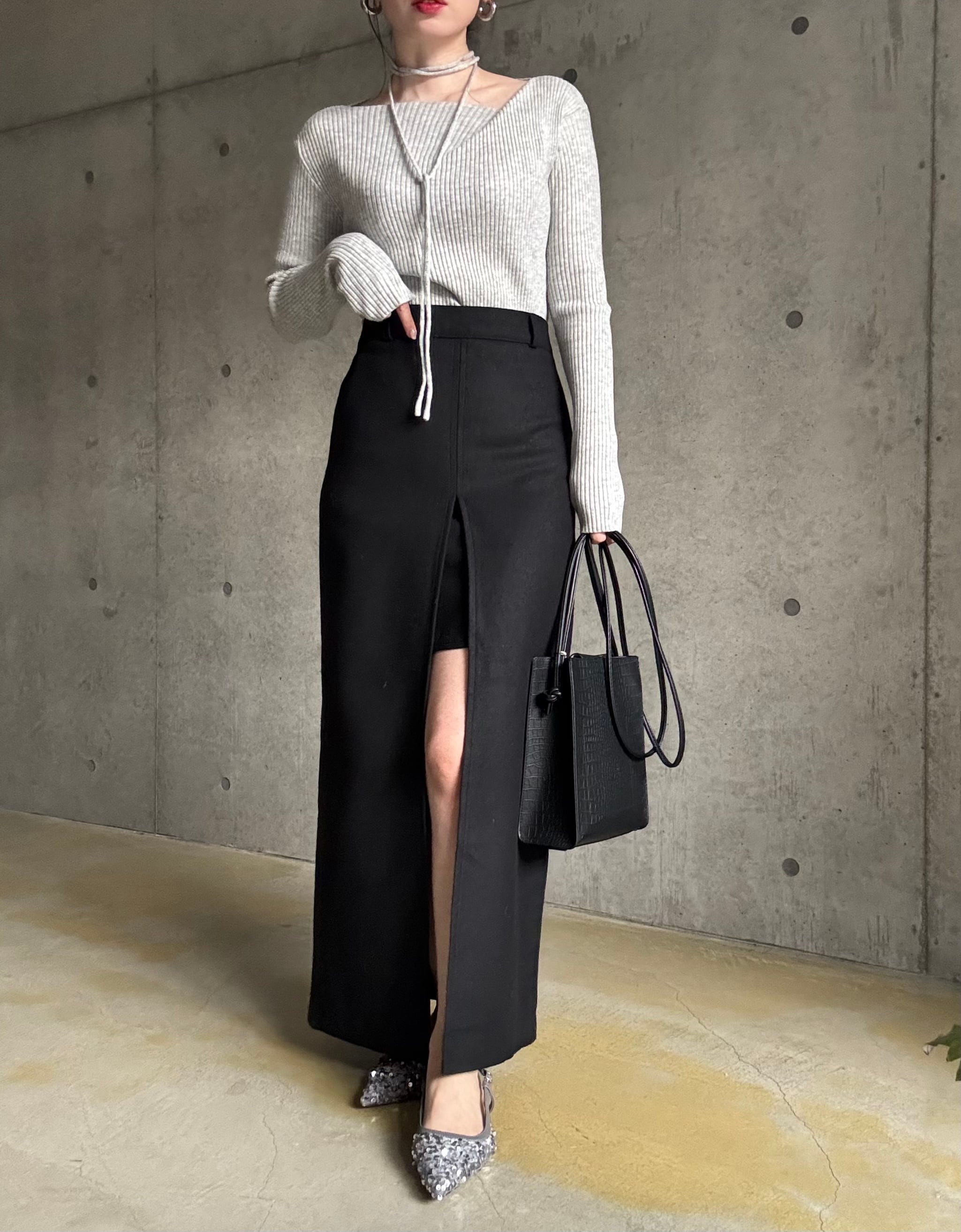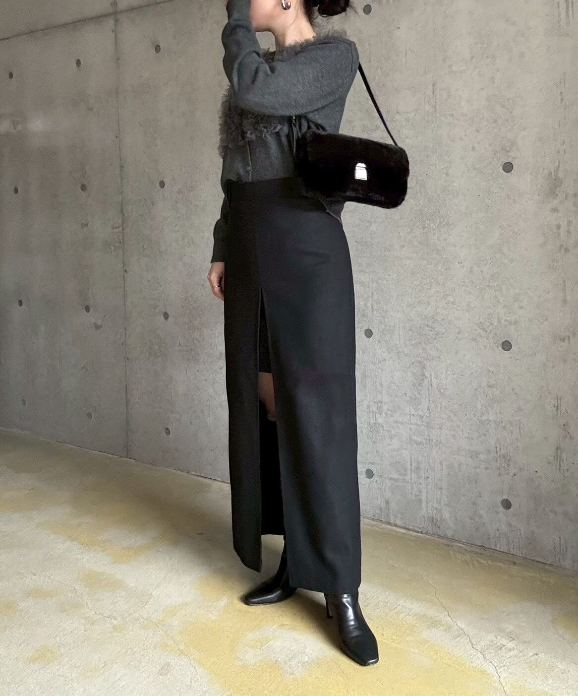 形はシンプルなナロースカートなので合わせやすさも抜群♪