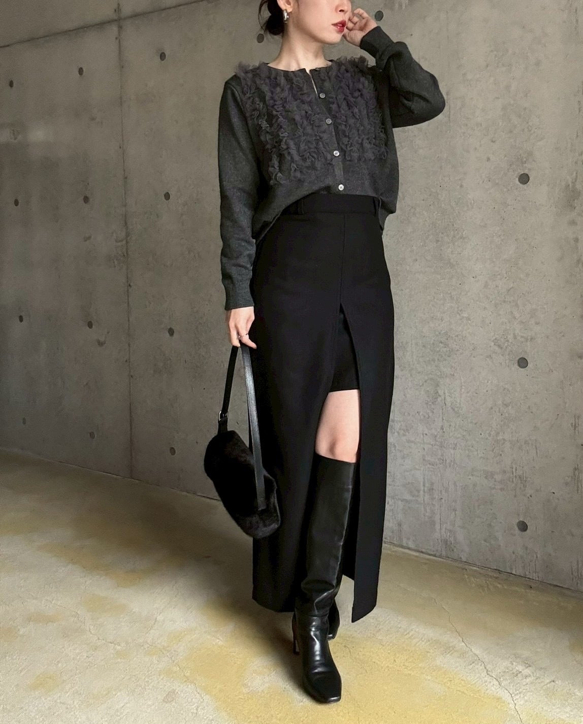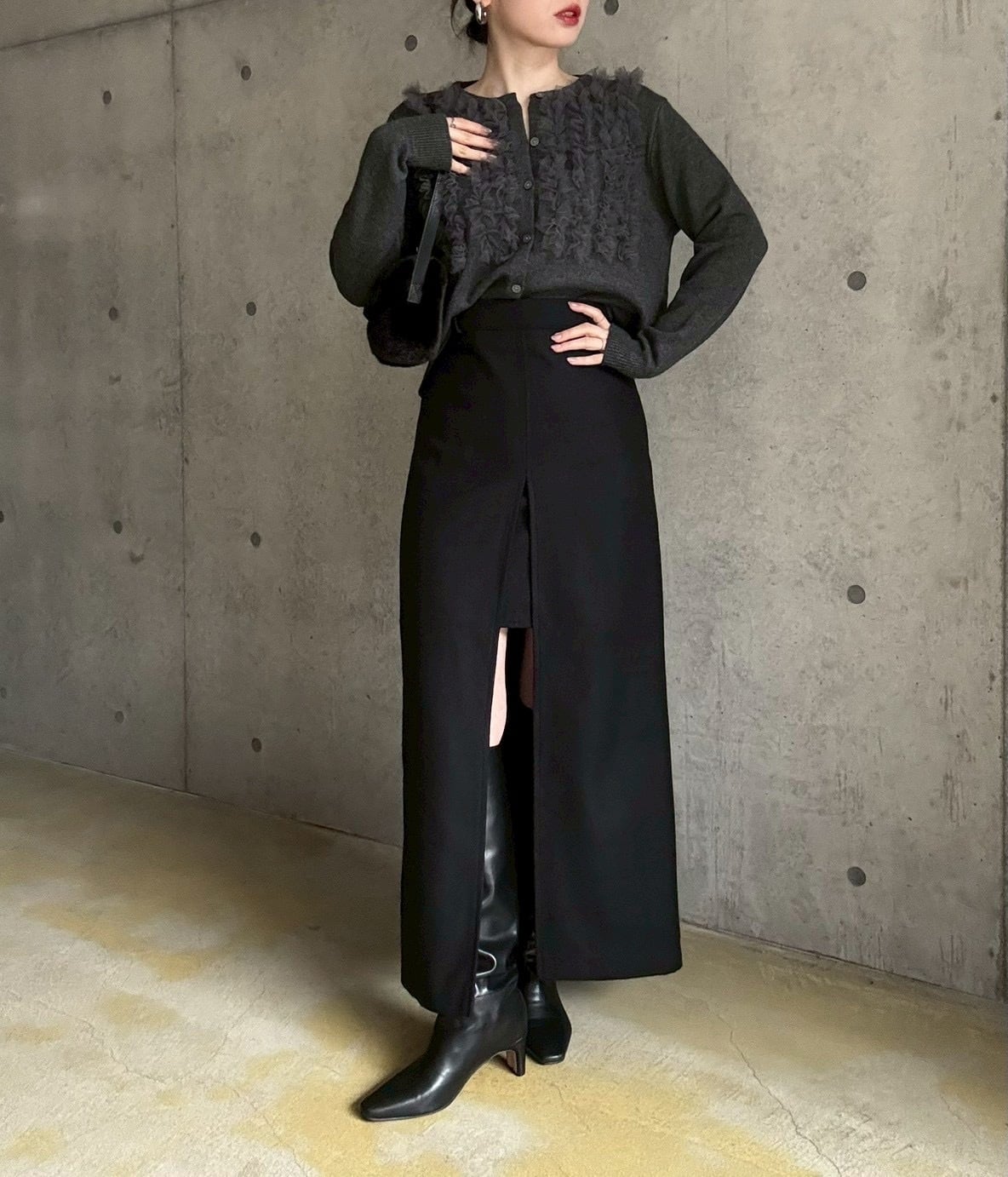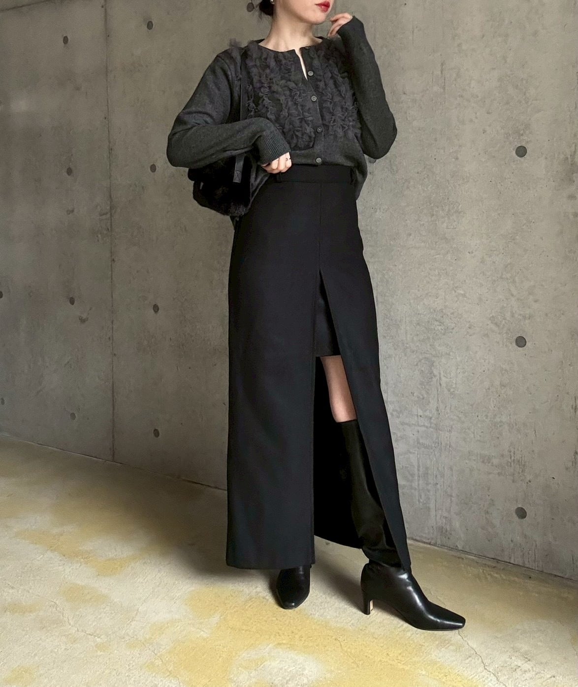 タイトなナロースカートにありがちな窮屈感もなく、座る時、歩く時もストレスフリーな着心地を叶えてくれます✨