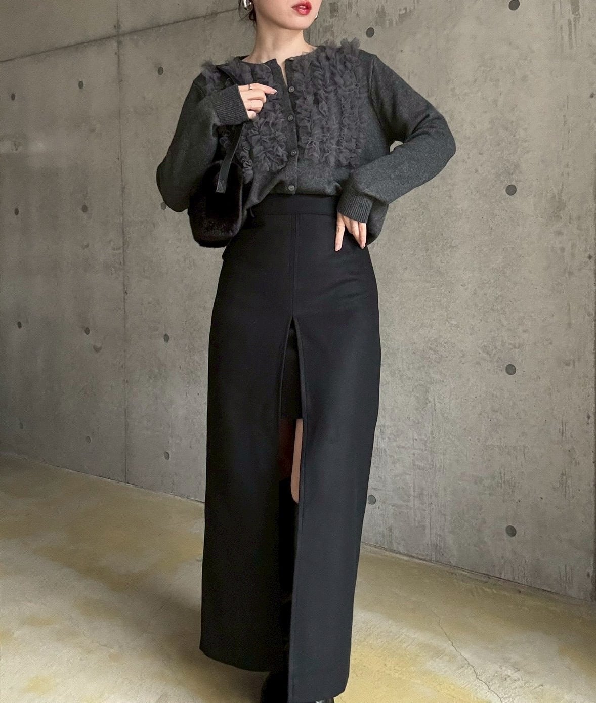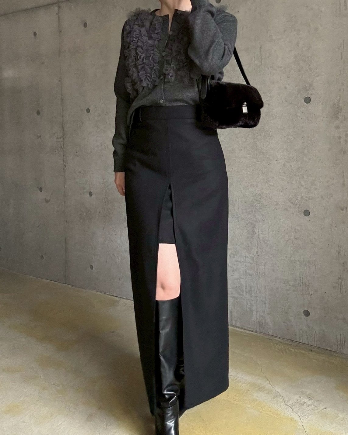 【12/27 21:00〜】深スリットロングナロースカート【ブラック】