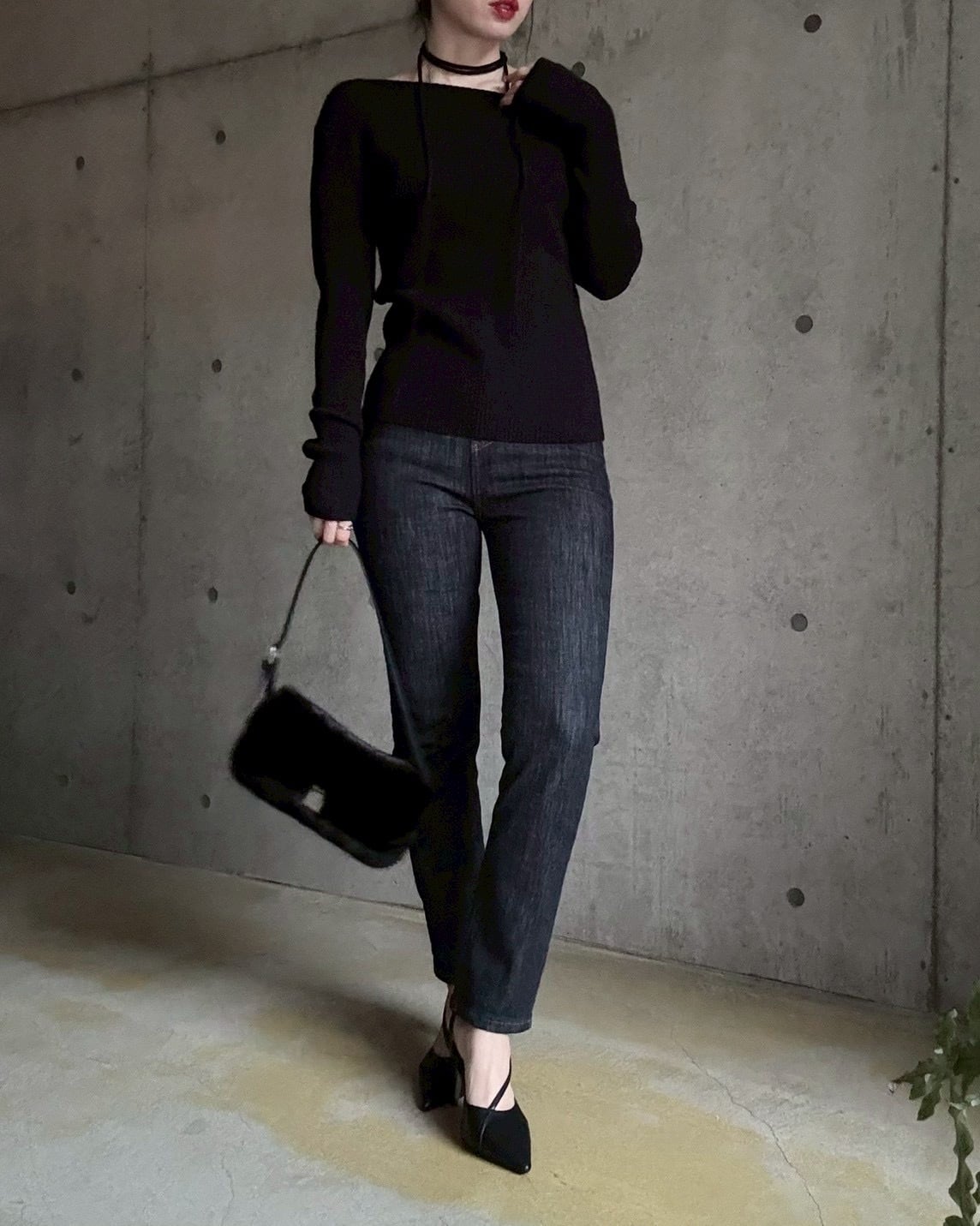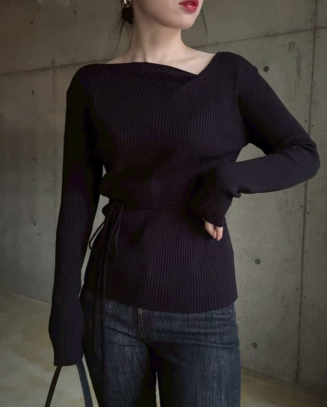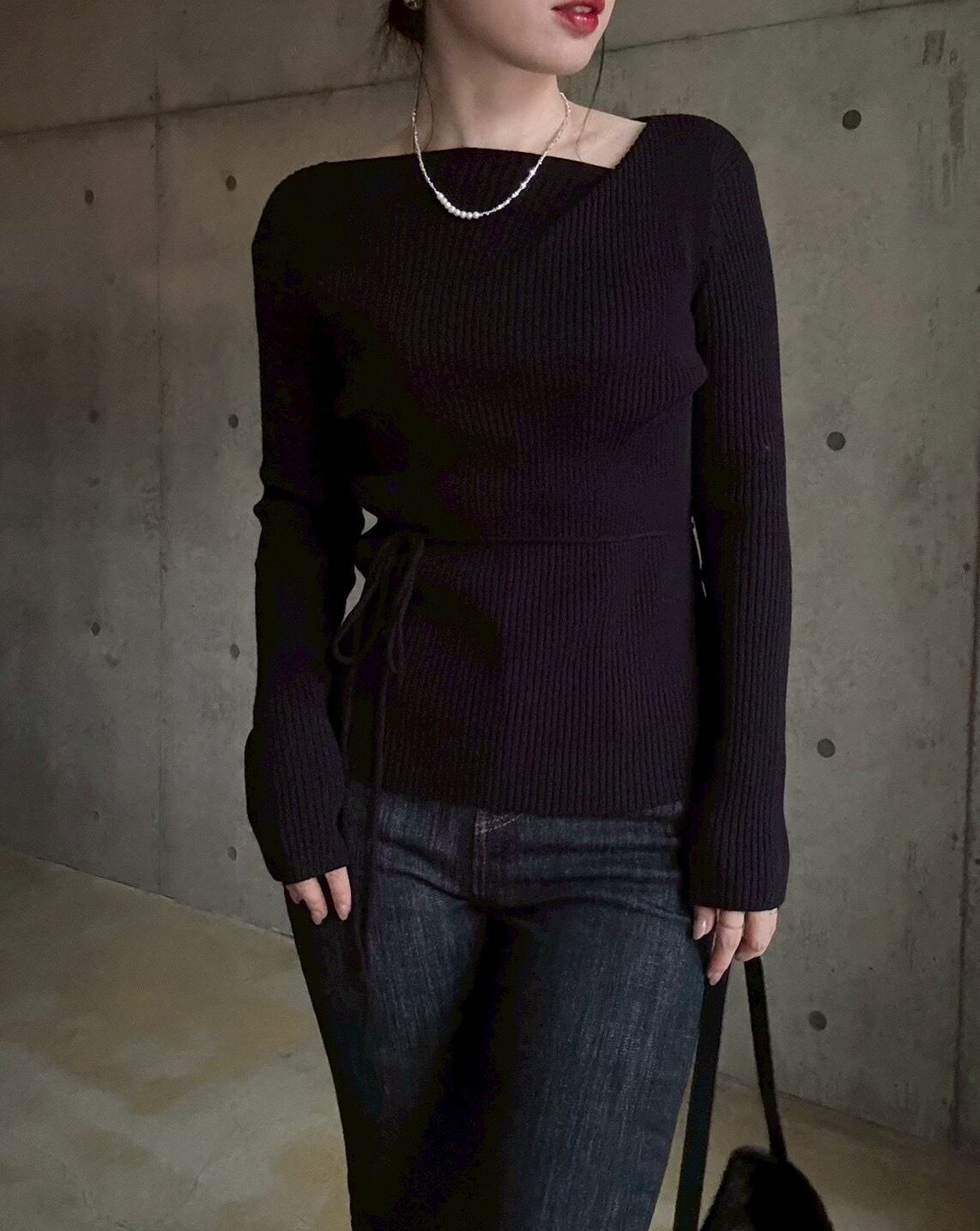 細見え!着るだけで着痩せが叶う、チョーカー付きデザインリブニット✨