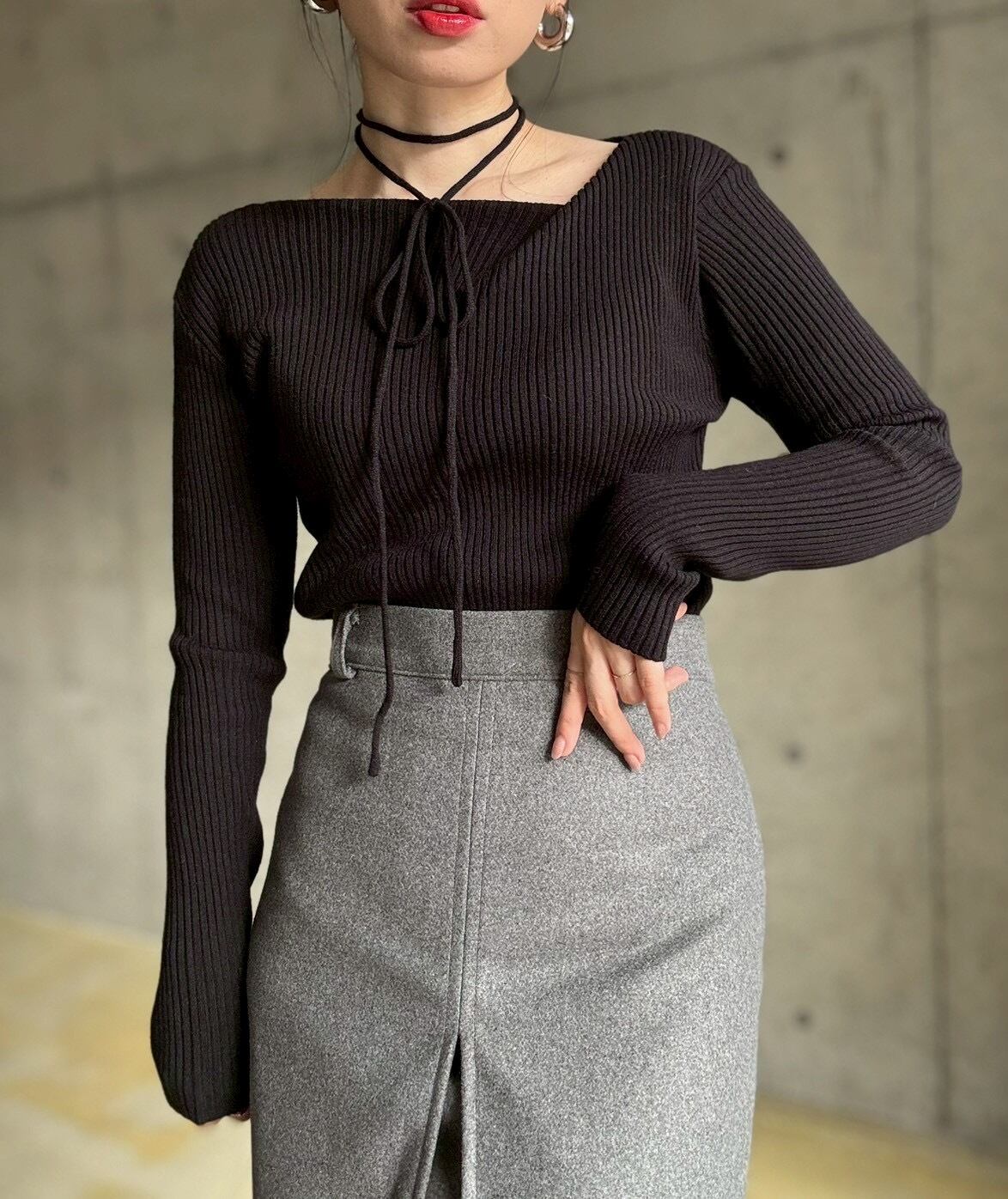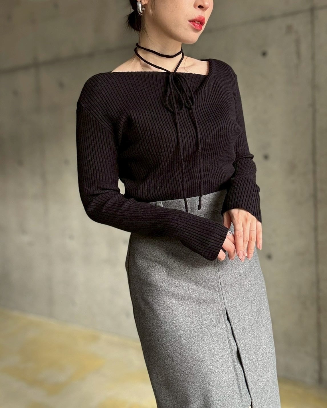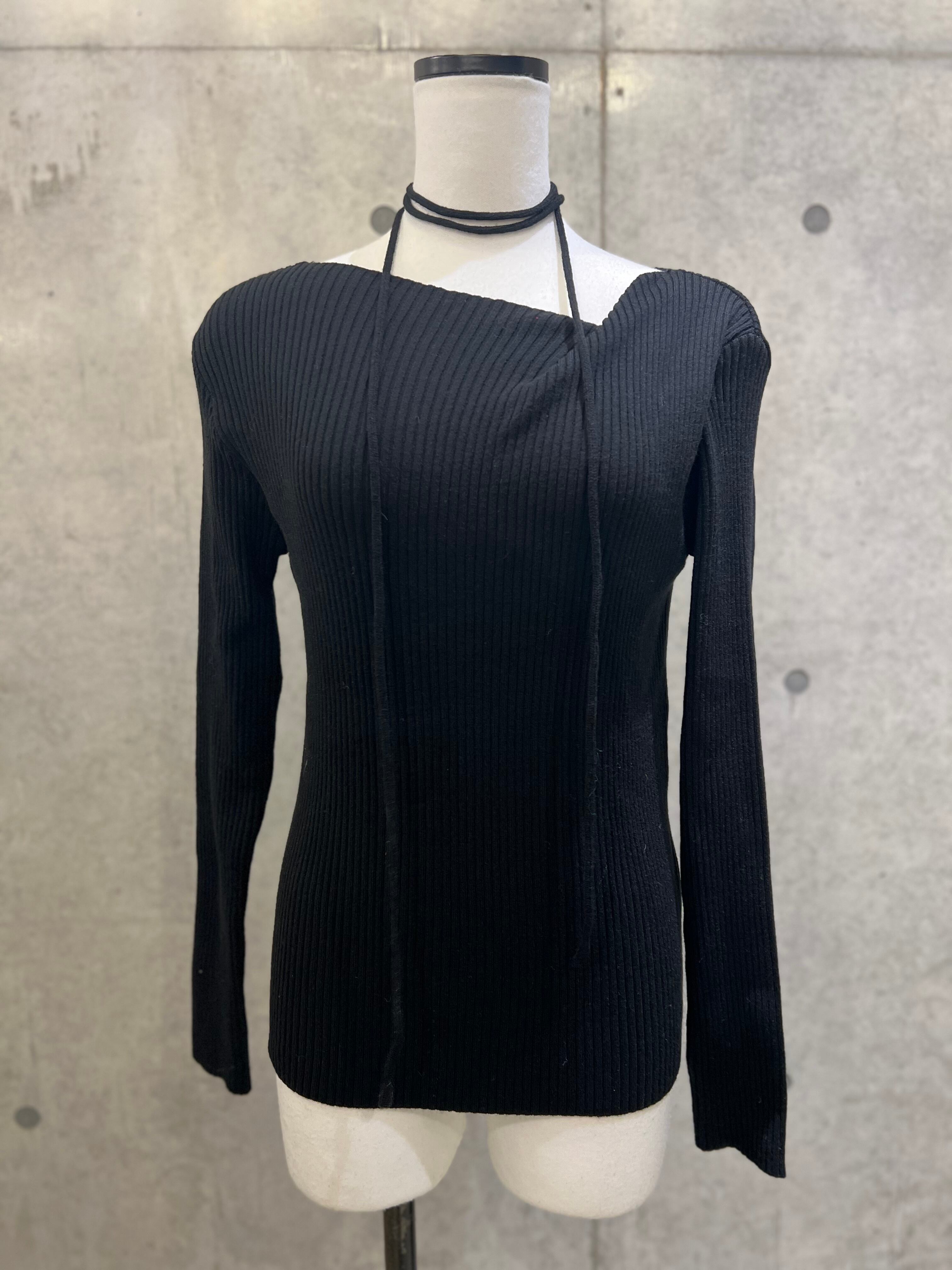 【12/27 21:00〜】チョーカー付きデザインリブニット【ブラック】