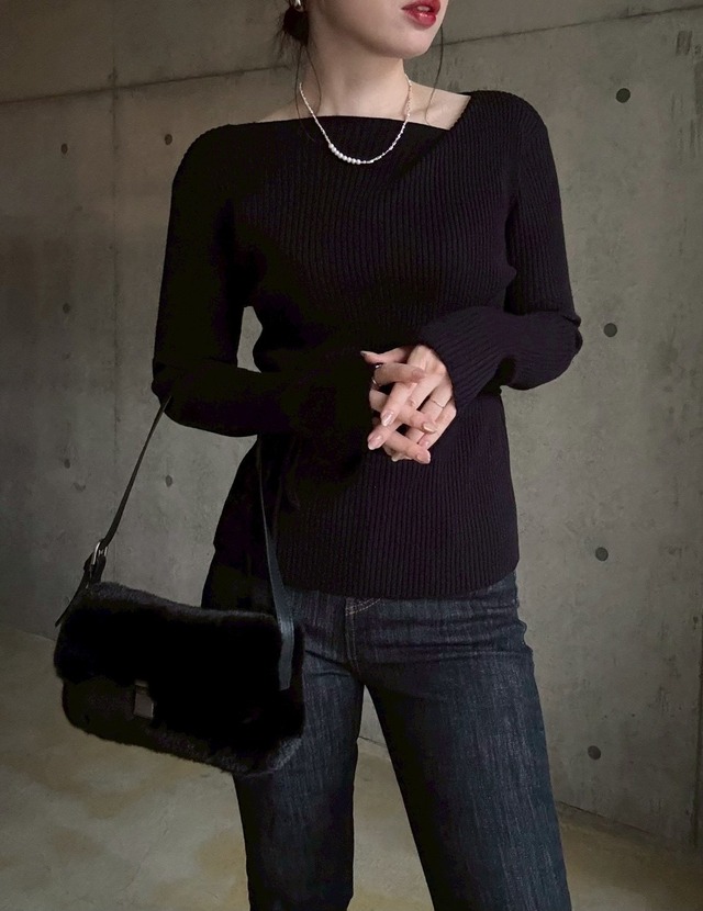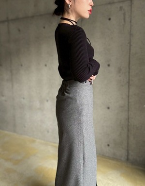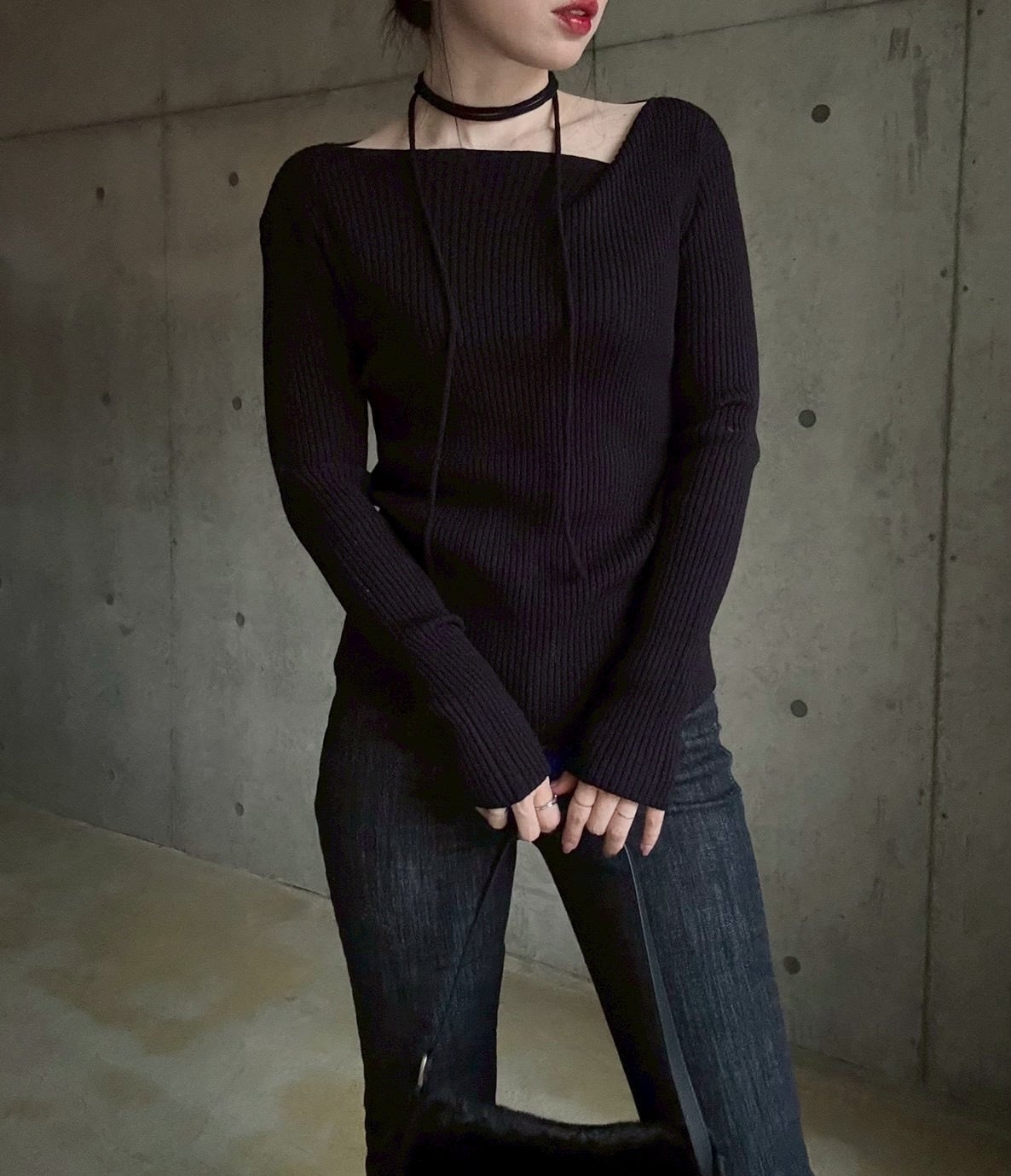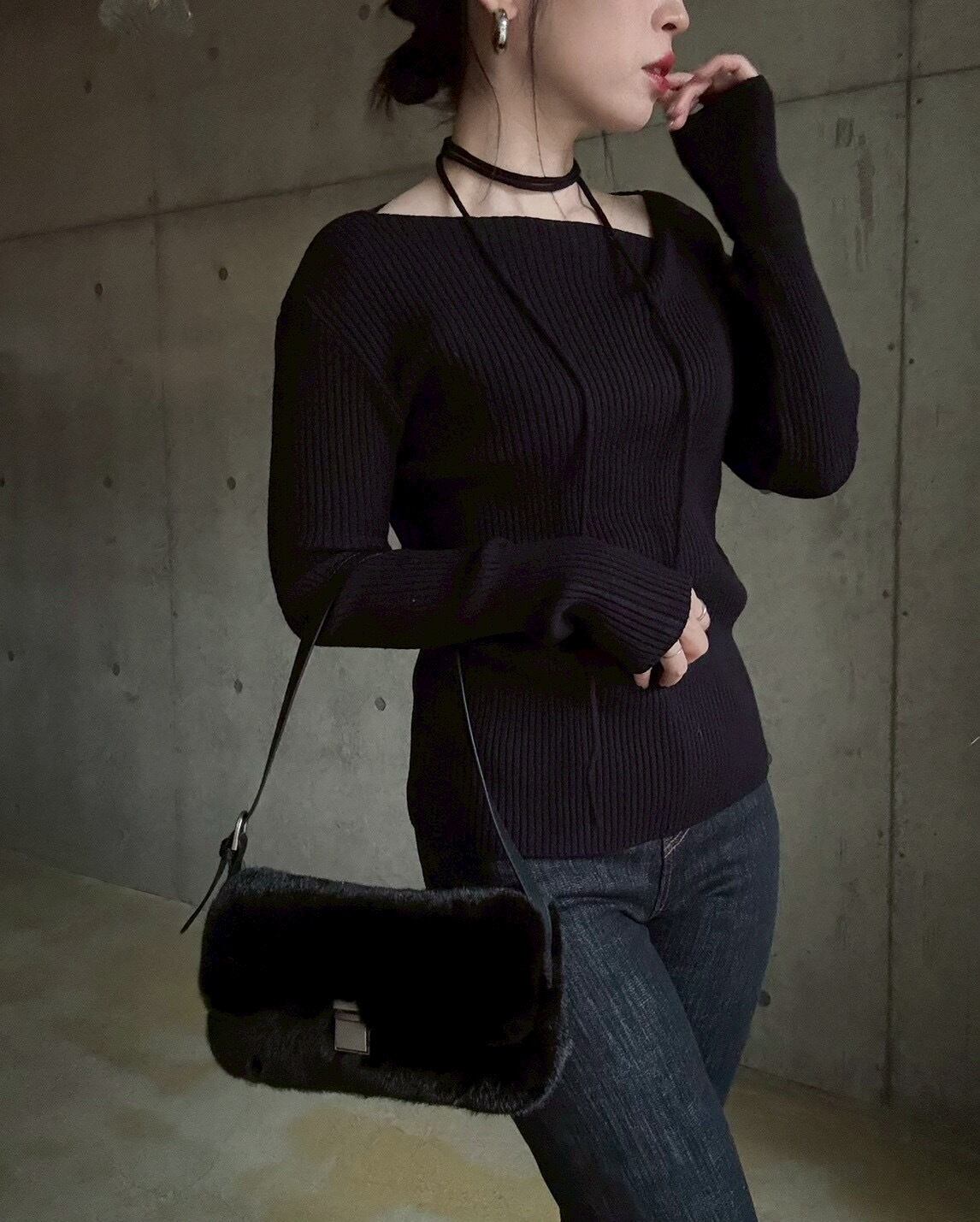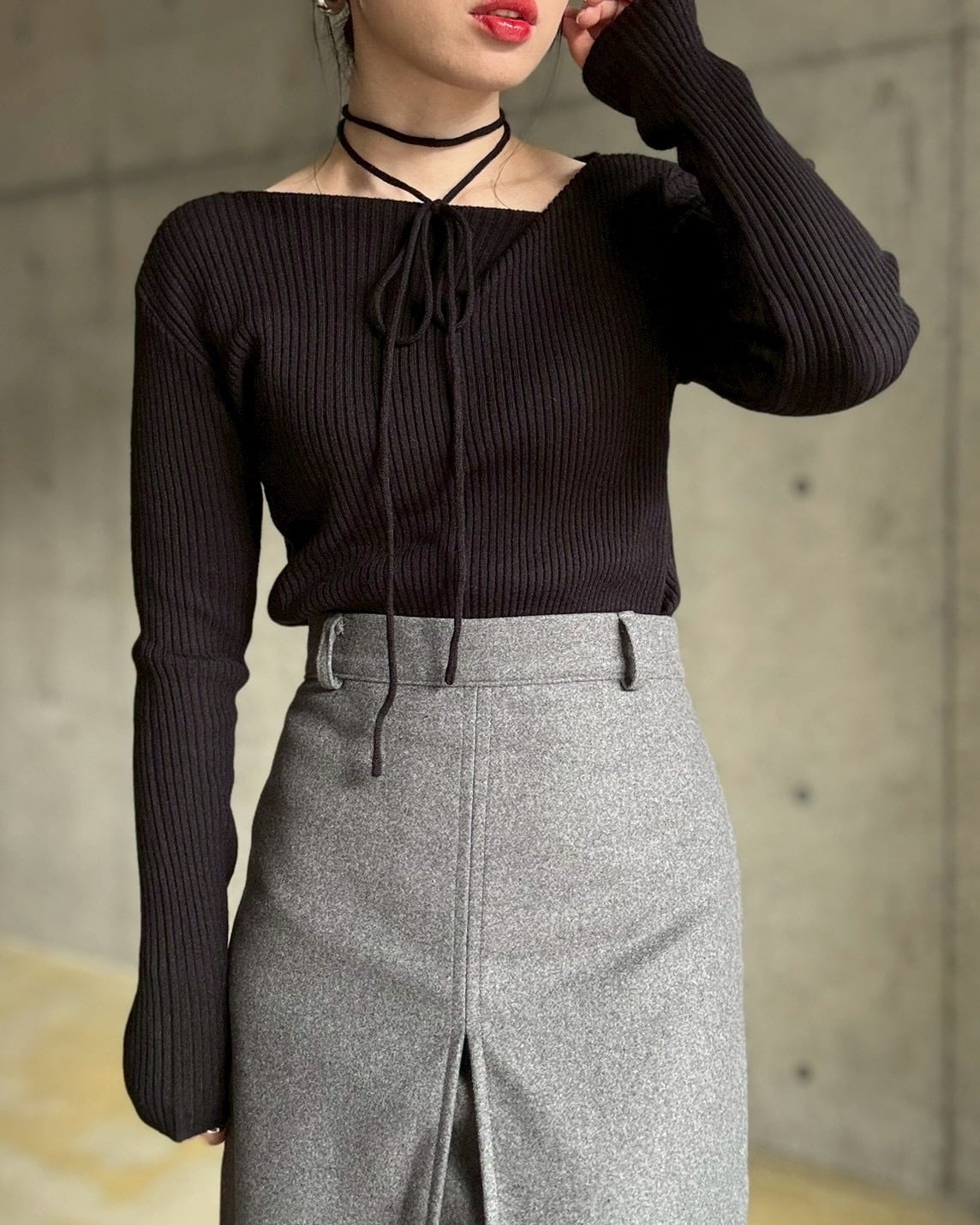 【12/27 21:00〜】チョーカー付きデザインリブニット【ブラック】