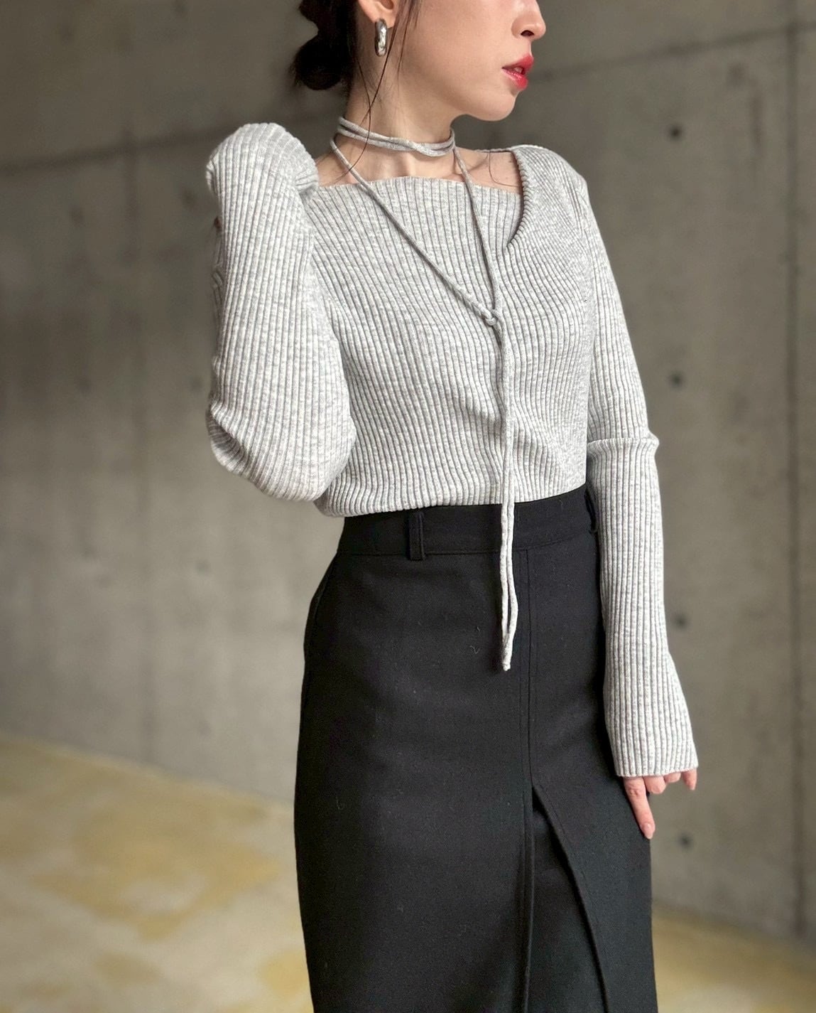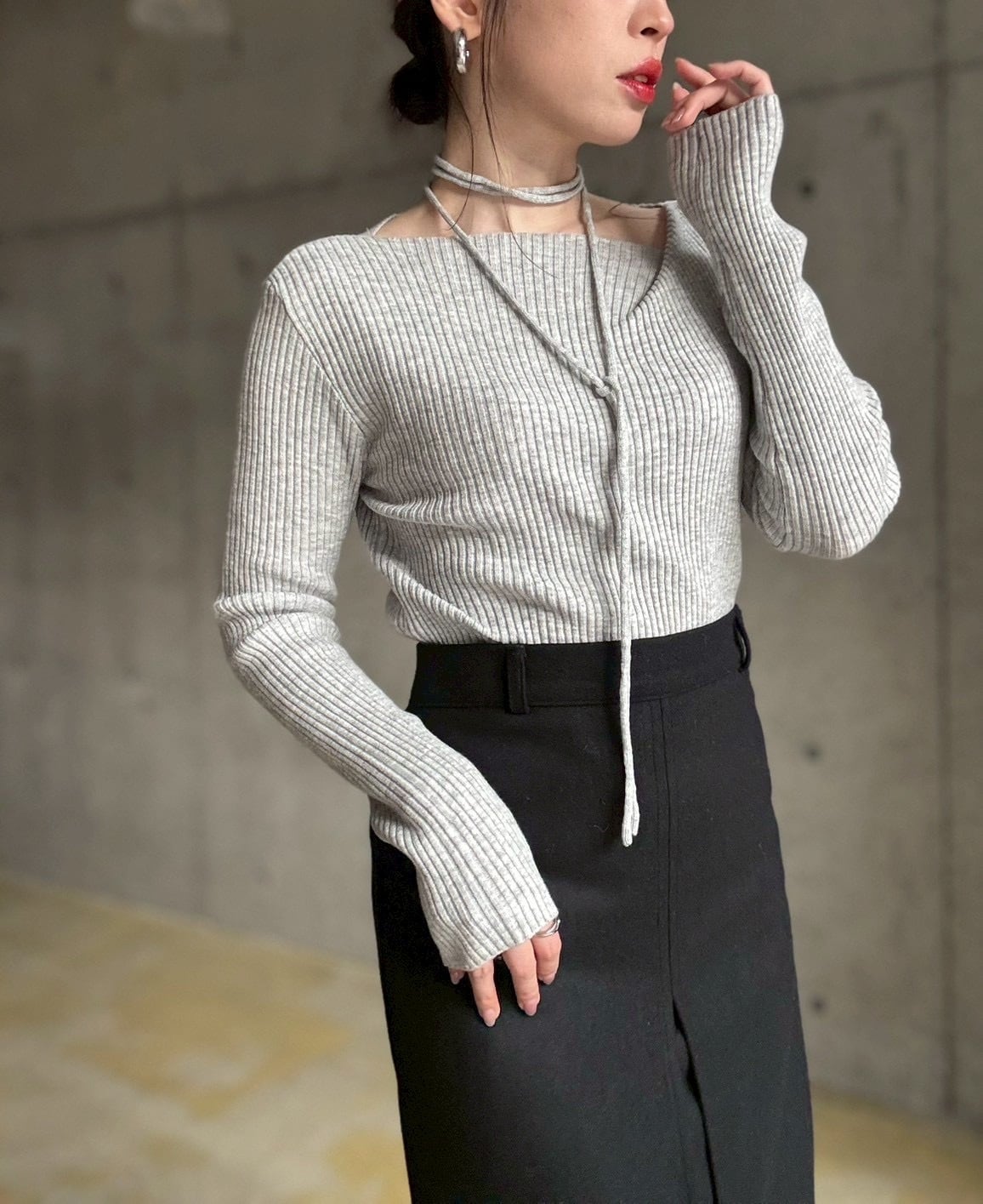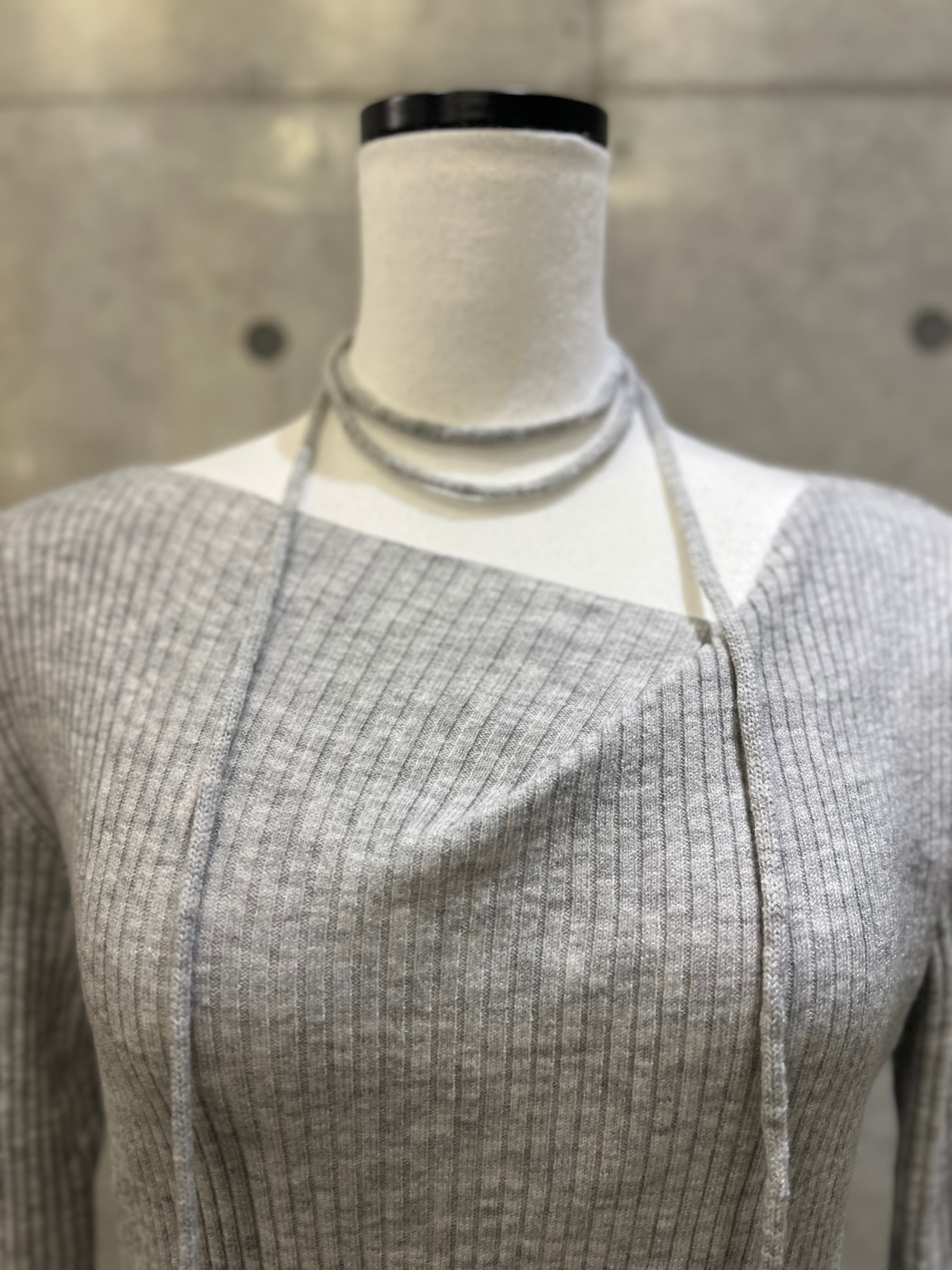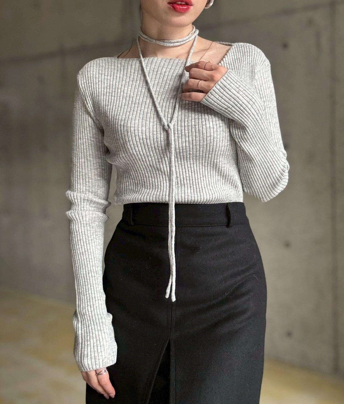 【12/27 21:00〜】チョーカー付きデザインリブニット【ライトグレー】