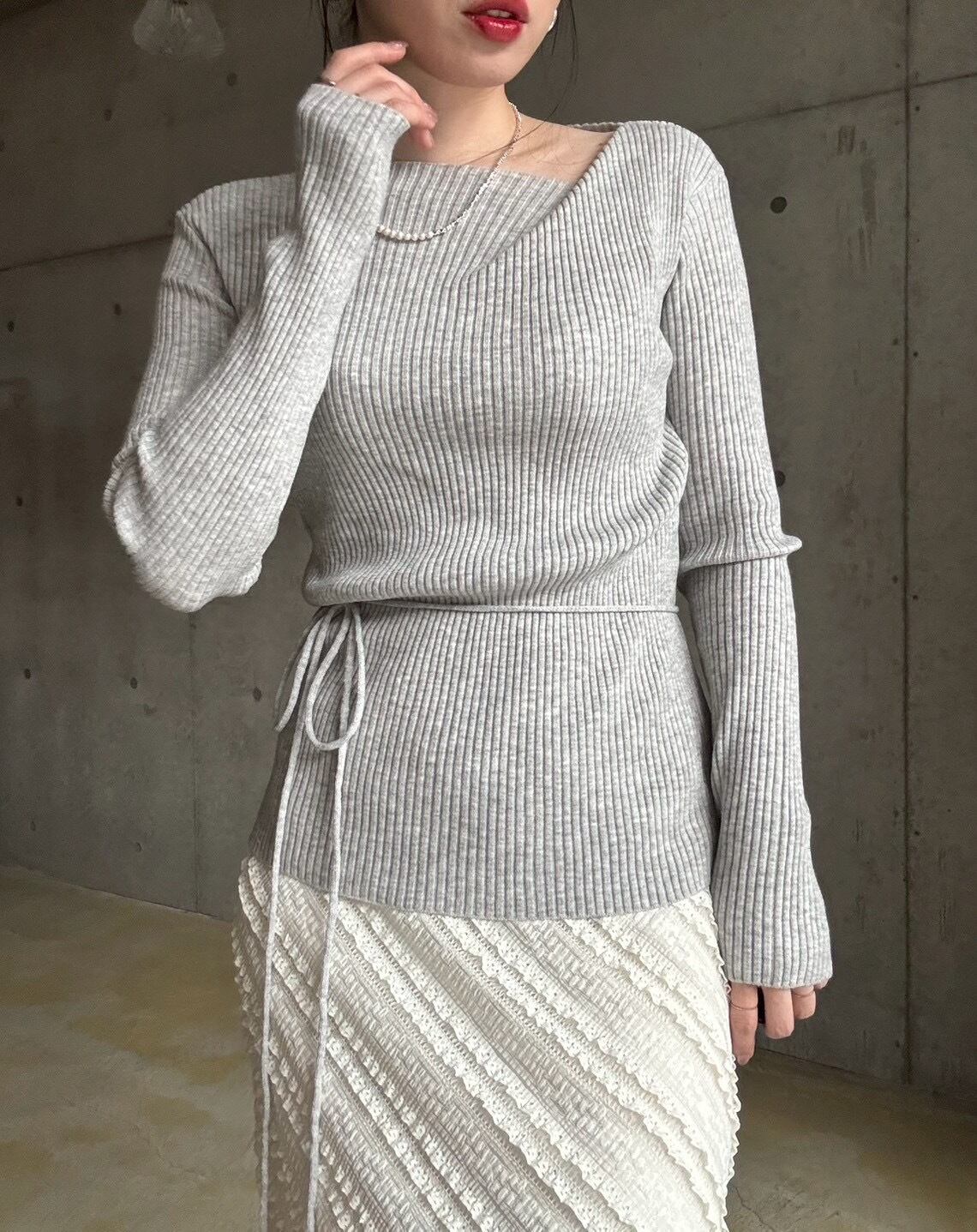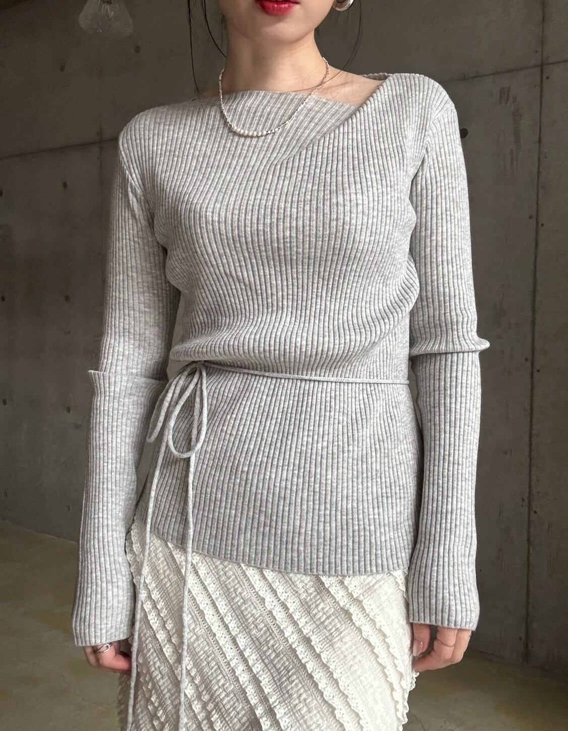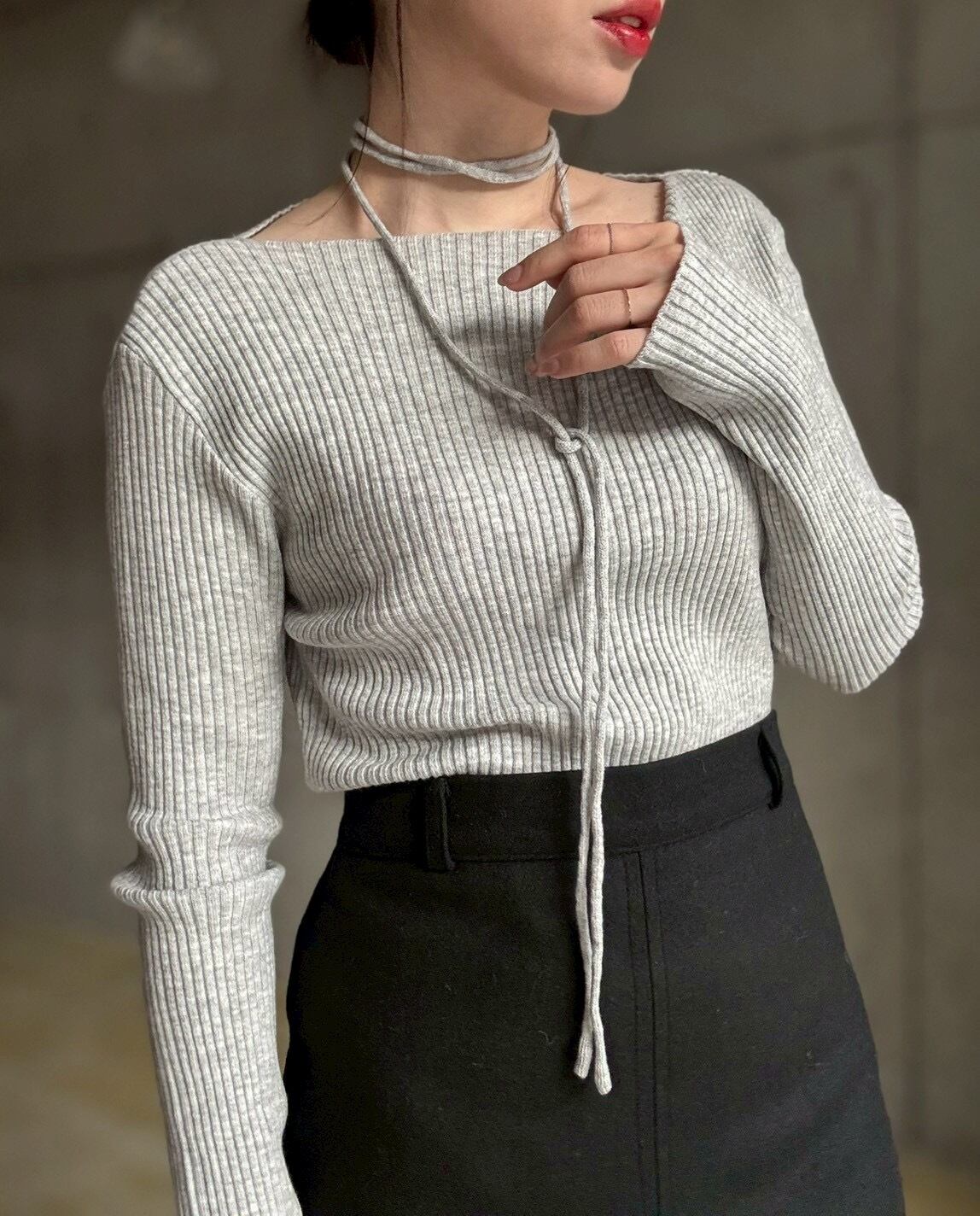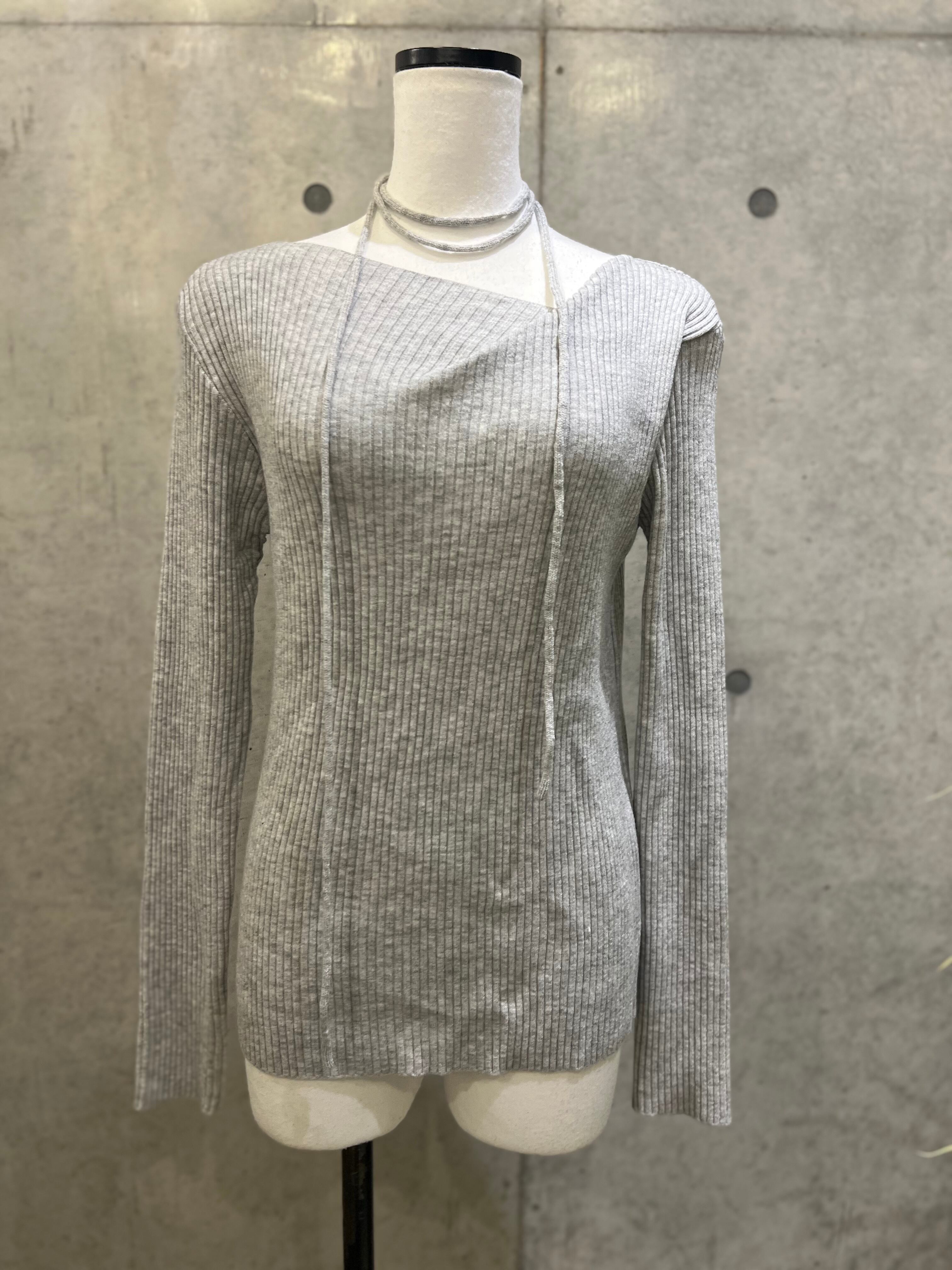 【12/27 21:00〜】チョーカー付きデザインリブニット【ライトグレー】