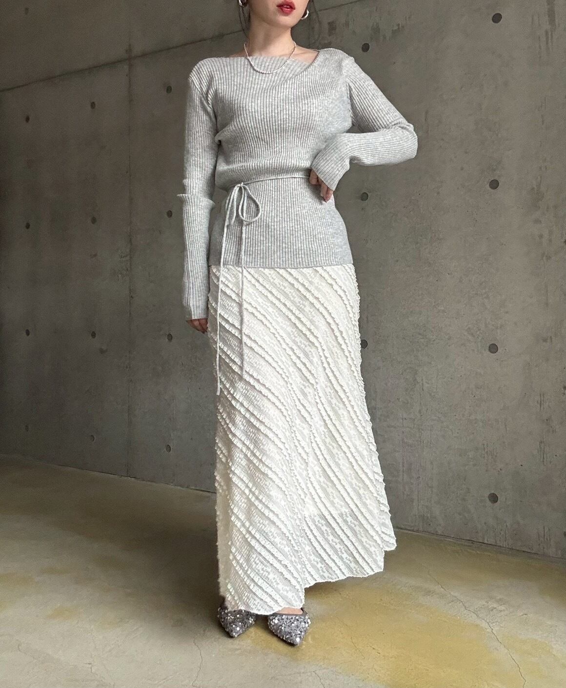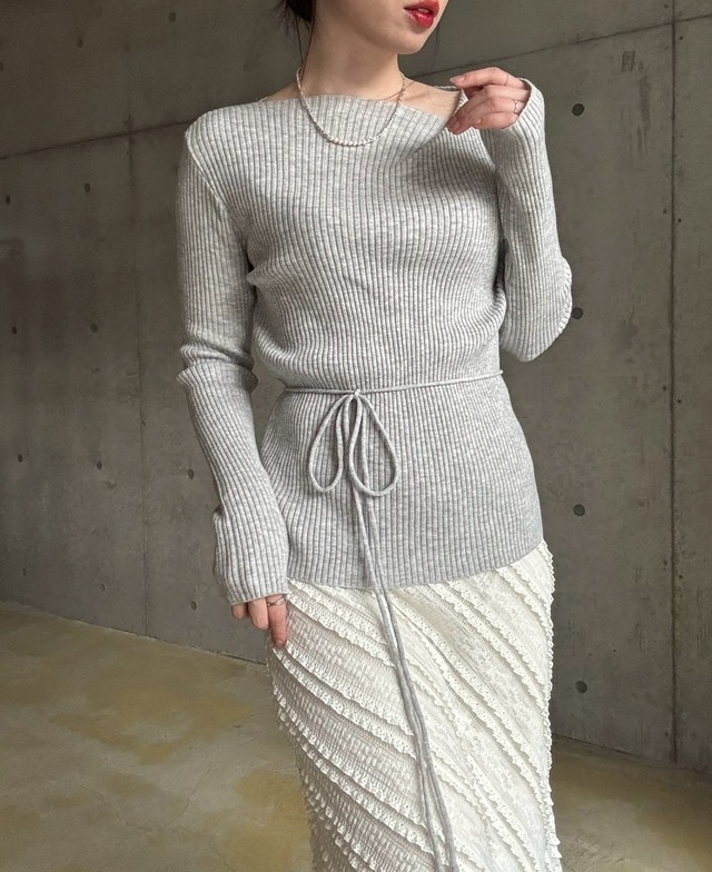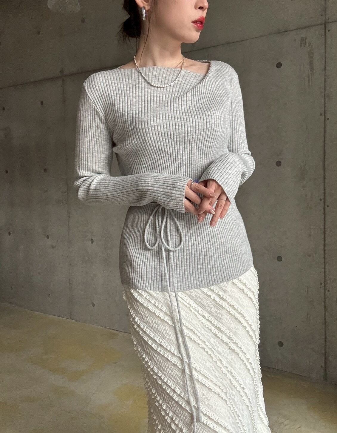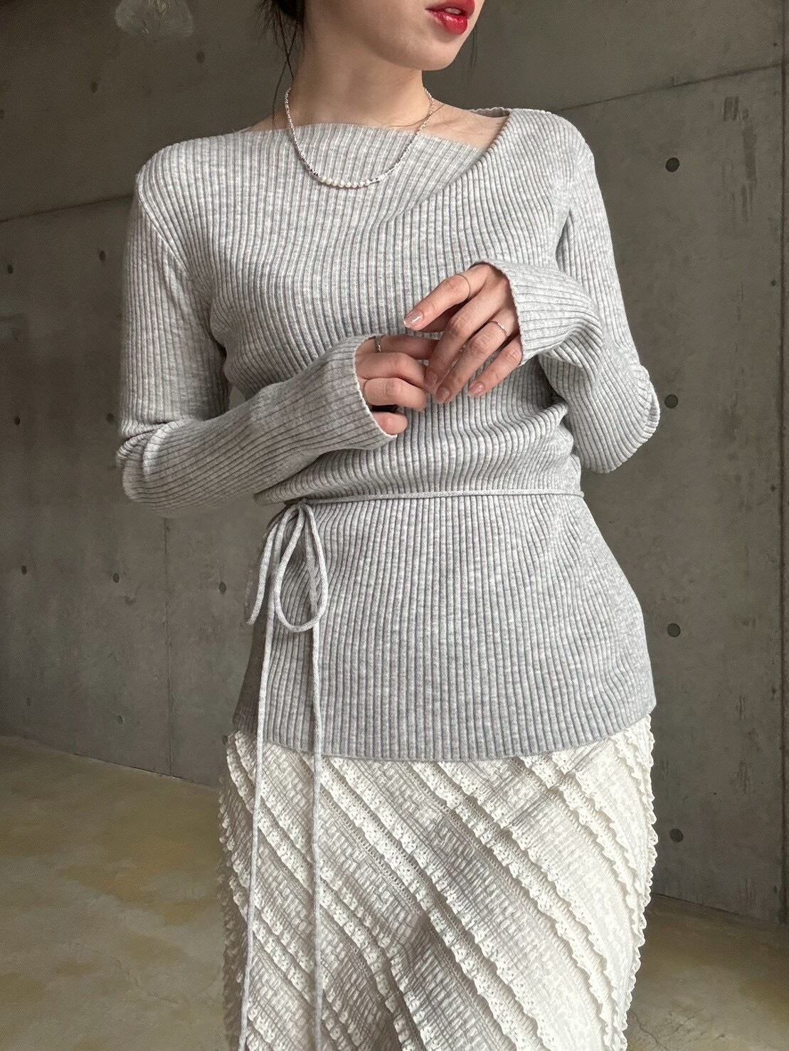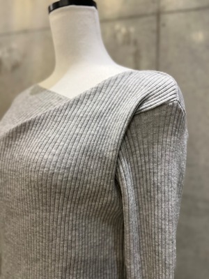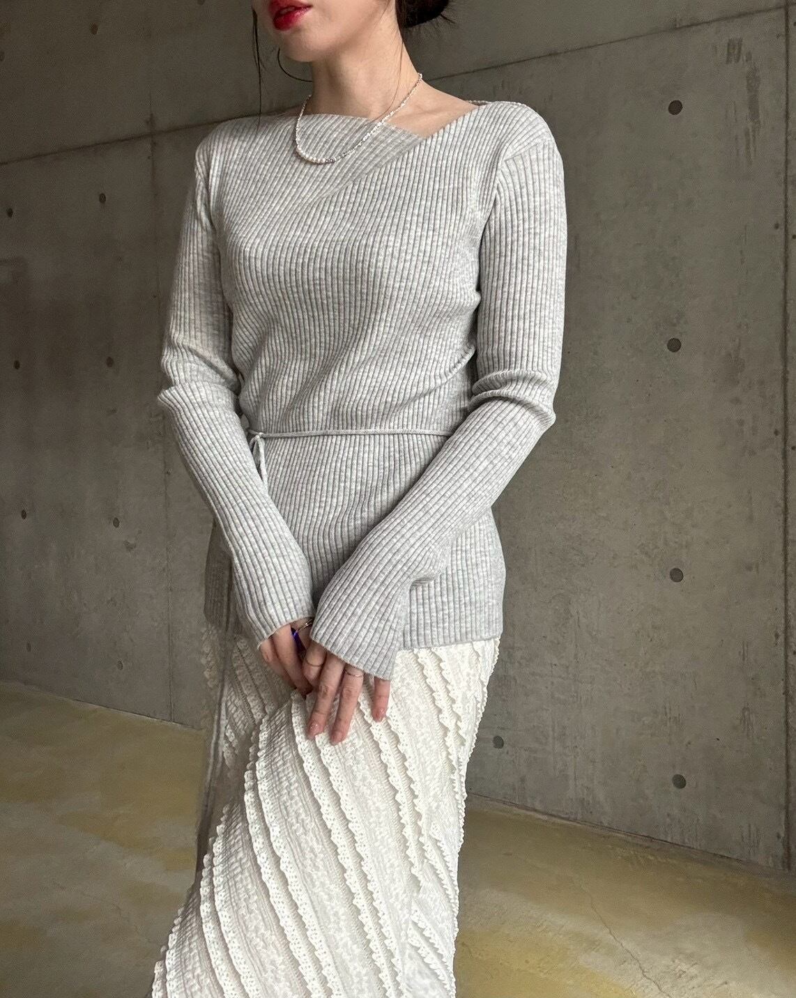 【12/27 21:00〜】チョーカー付きデザインリブニット【ライトグレー】
