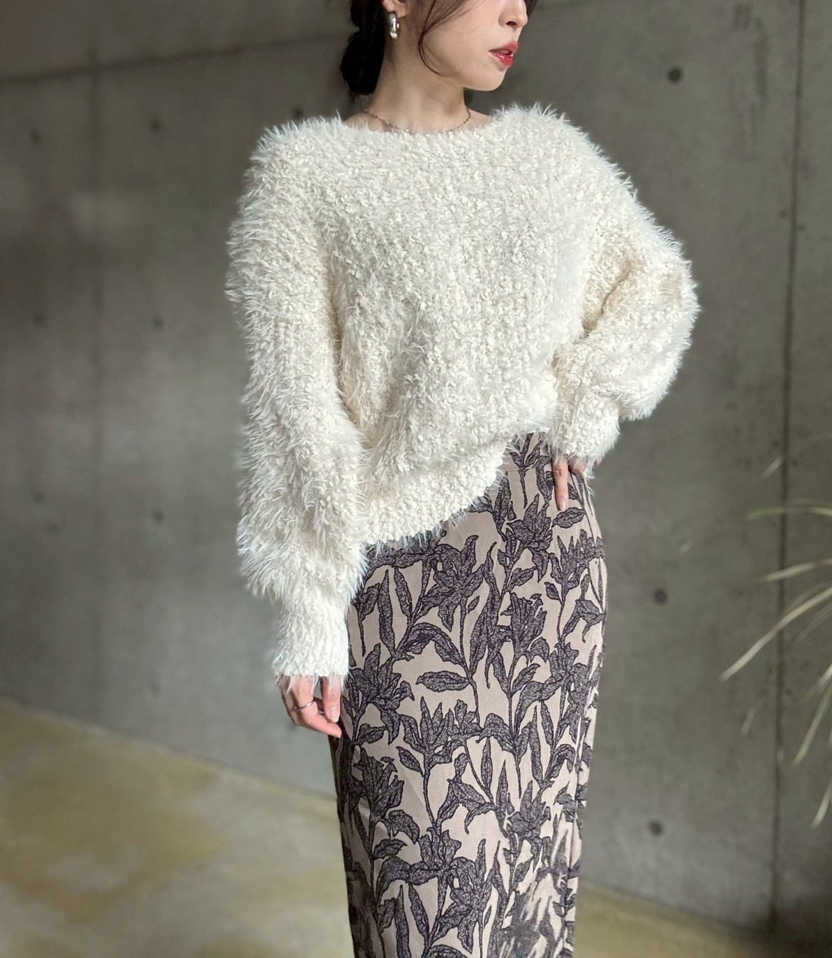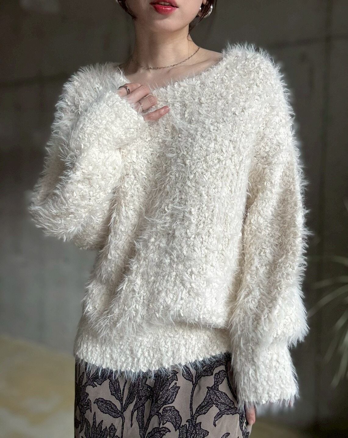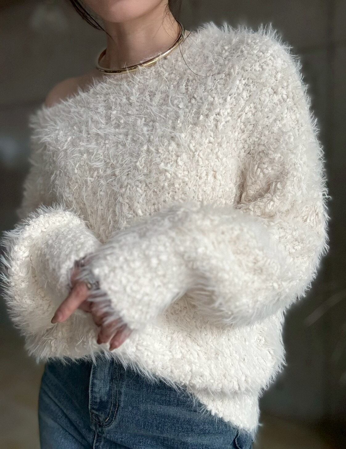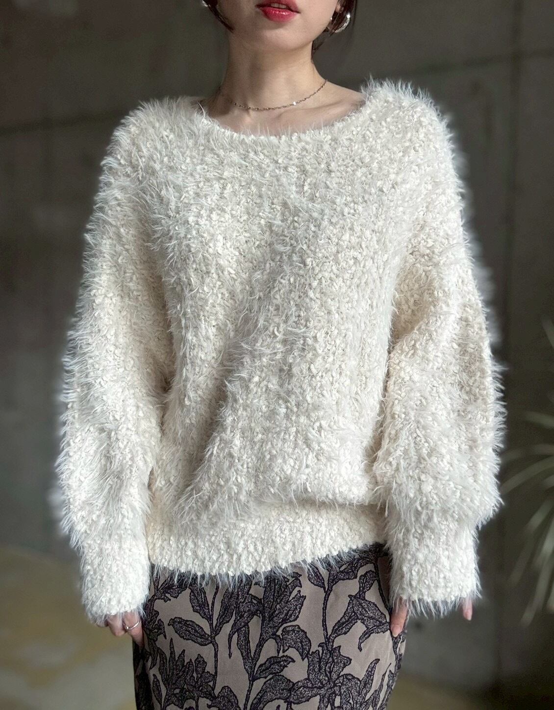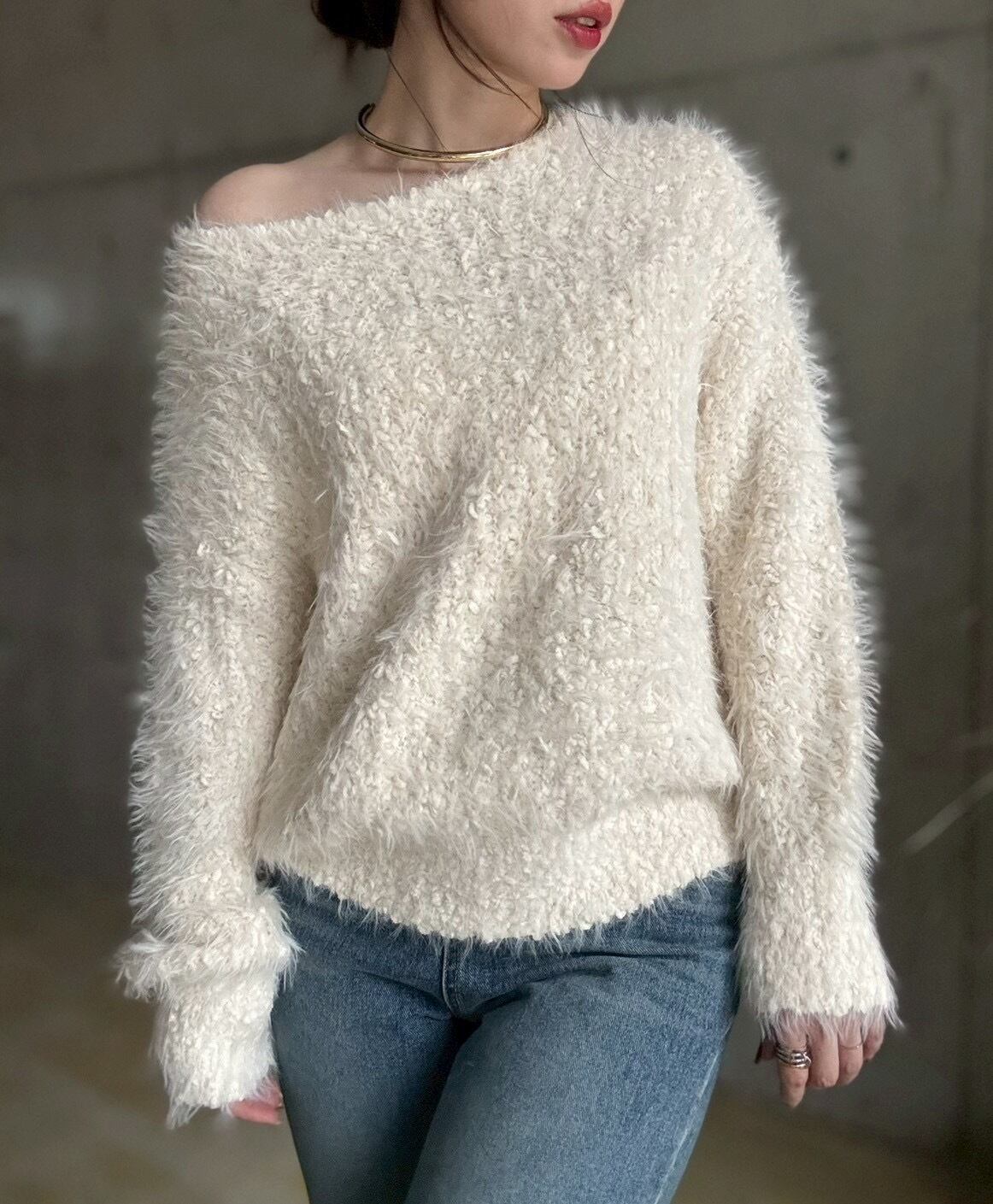 【即納】ブークレシャギーざっくり編みニットプルオーバー【アイボリー】