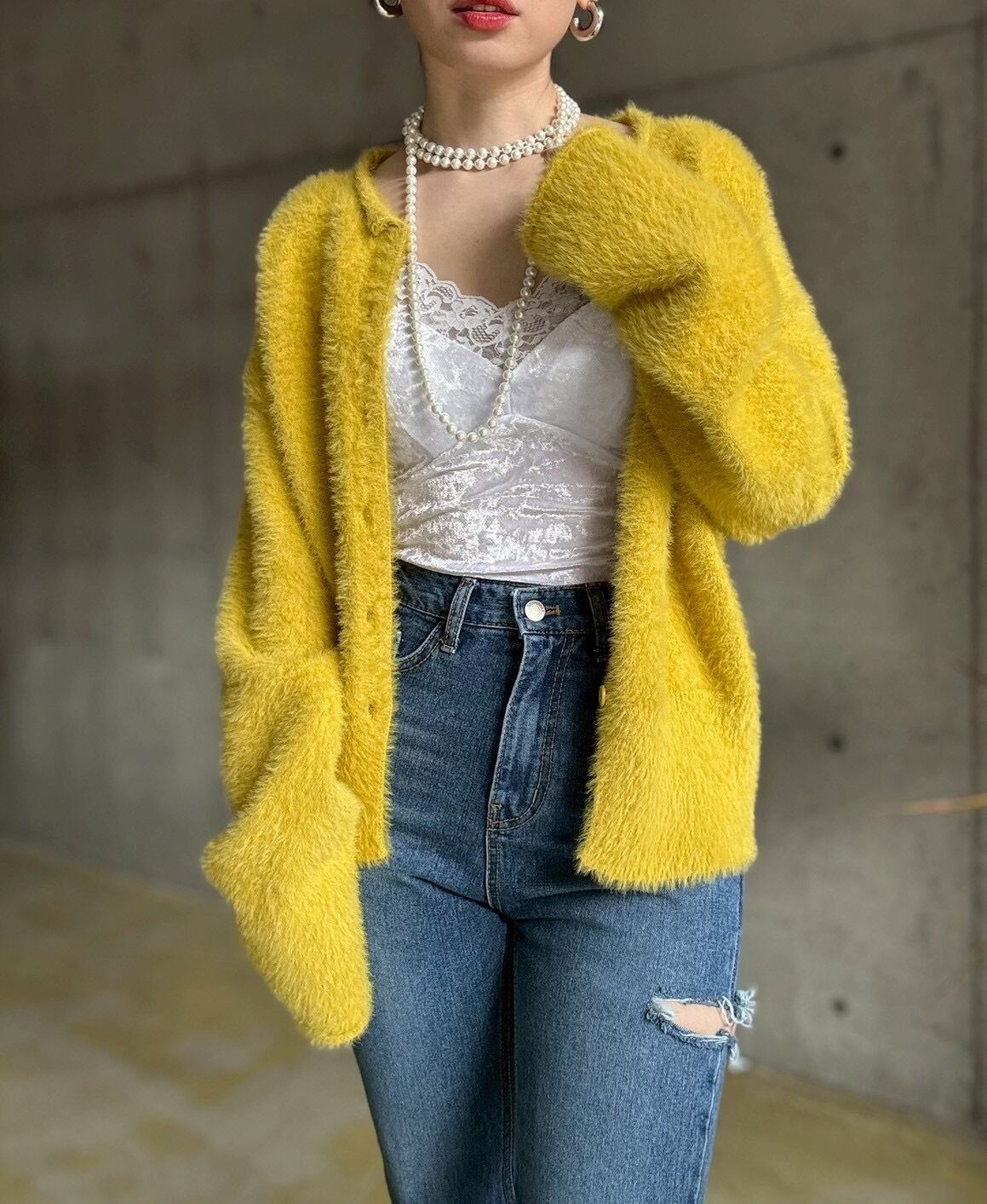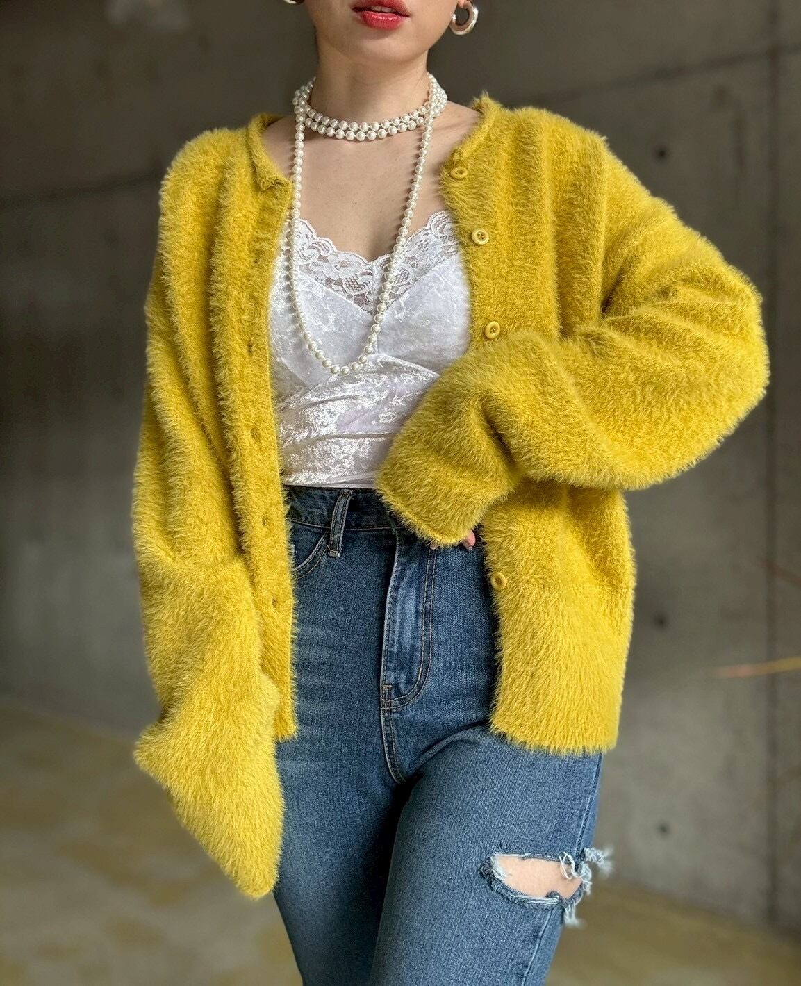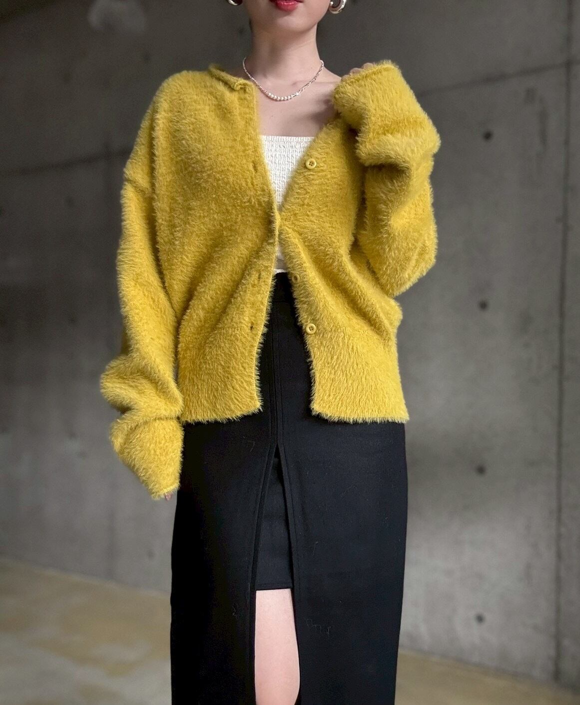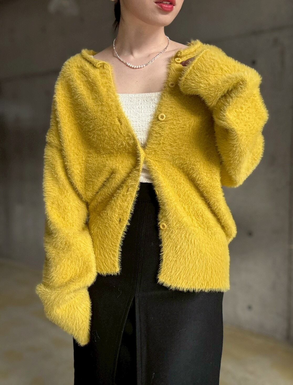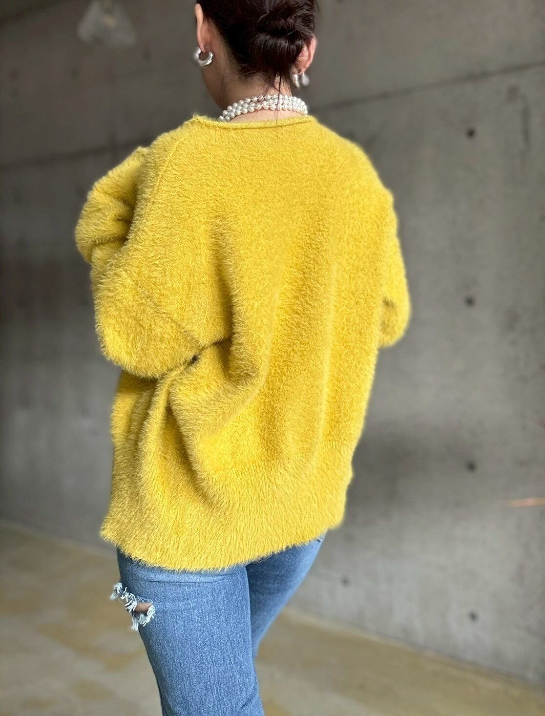 【1/20 21:00〜】ロールネックシャギーニットカーディガン【マスタード】