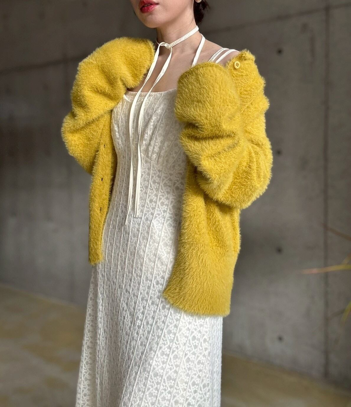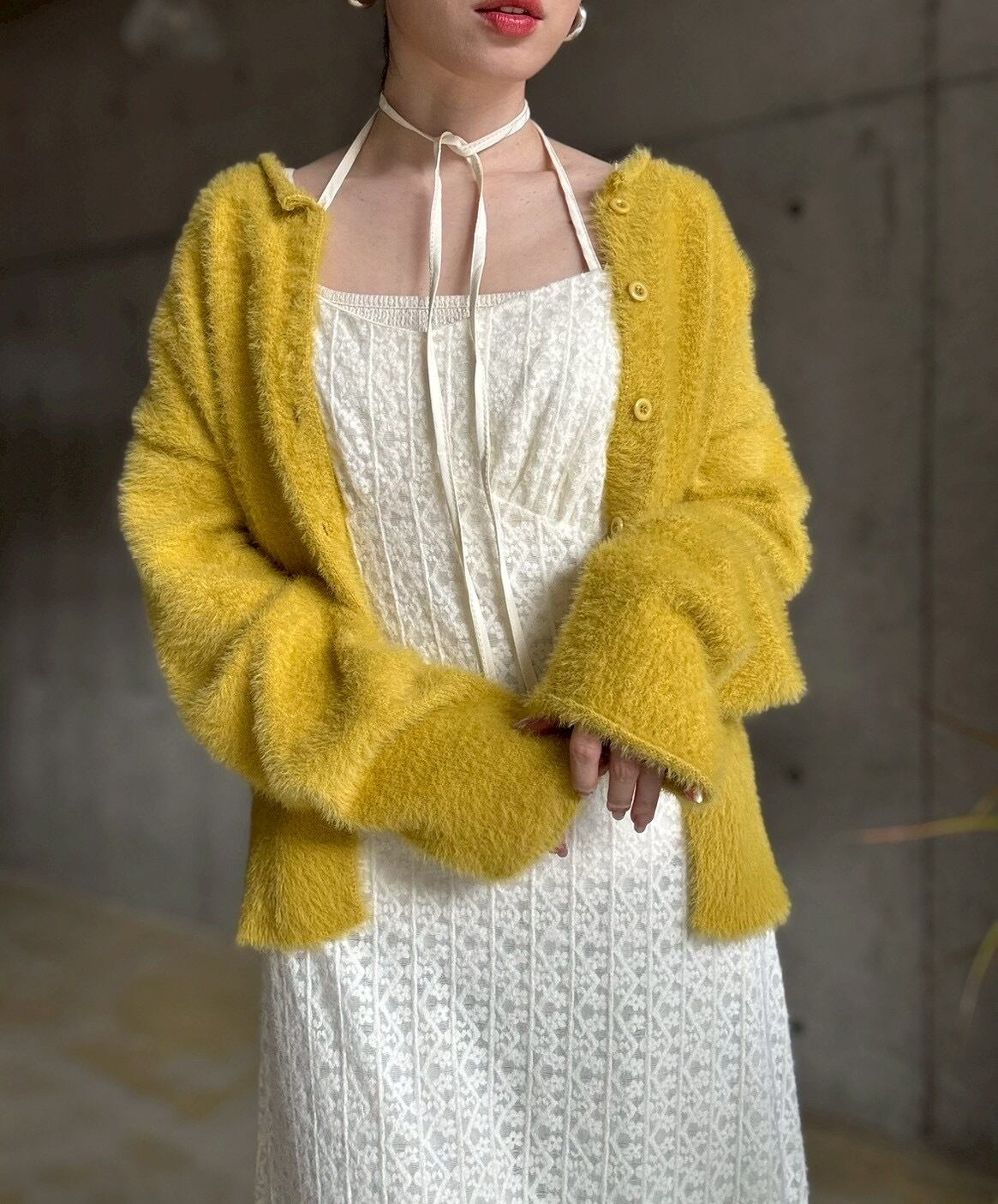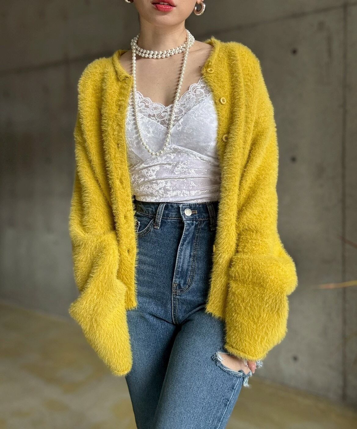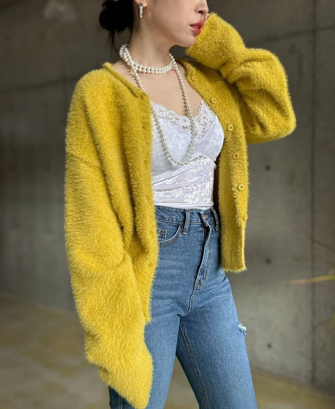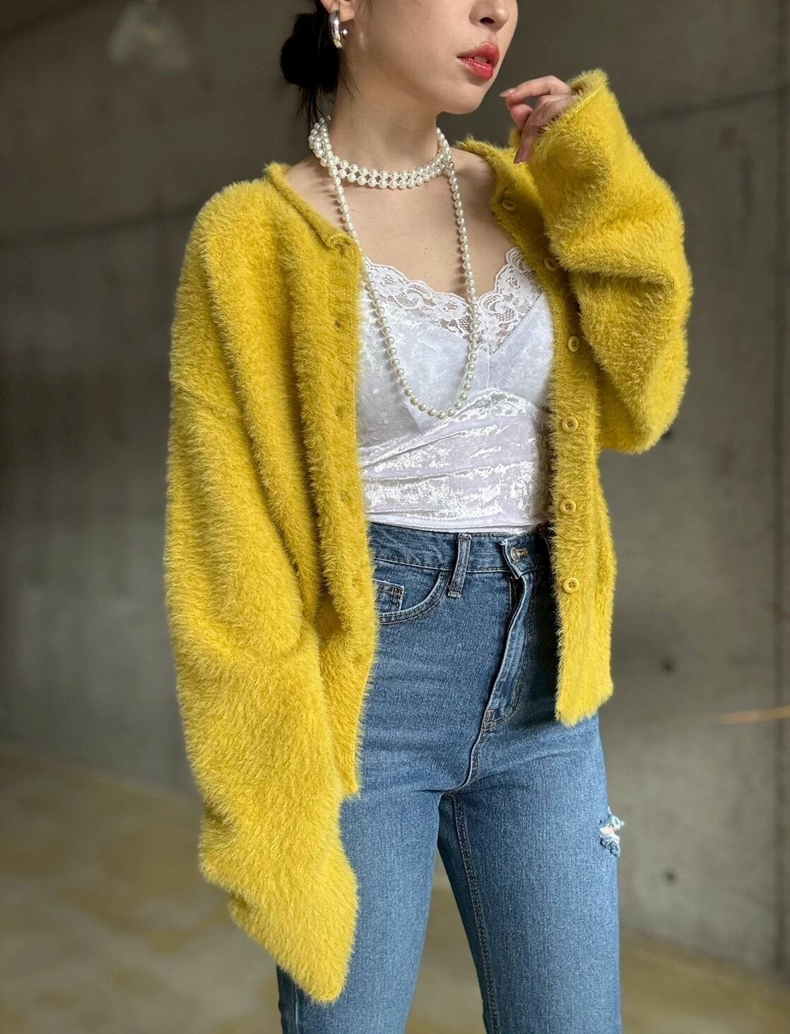【1/20 21:00〜】ロールネックシャギーニットカーディガン【マスタード】