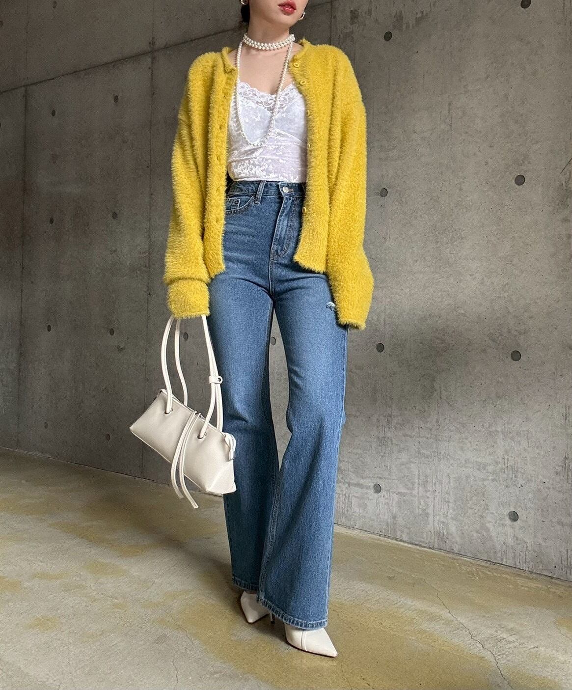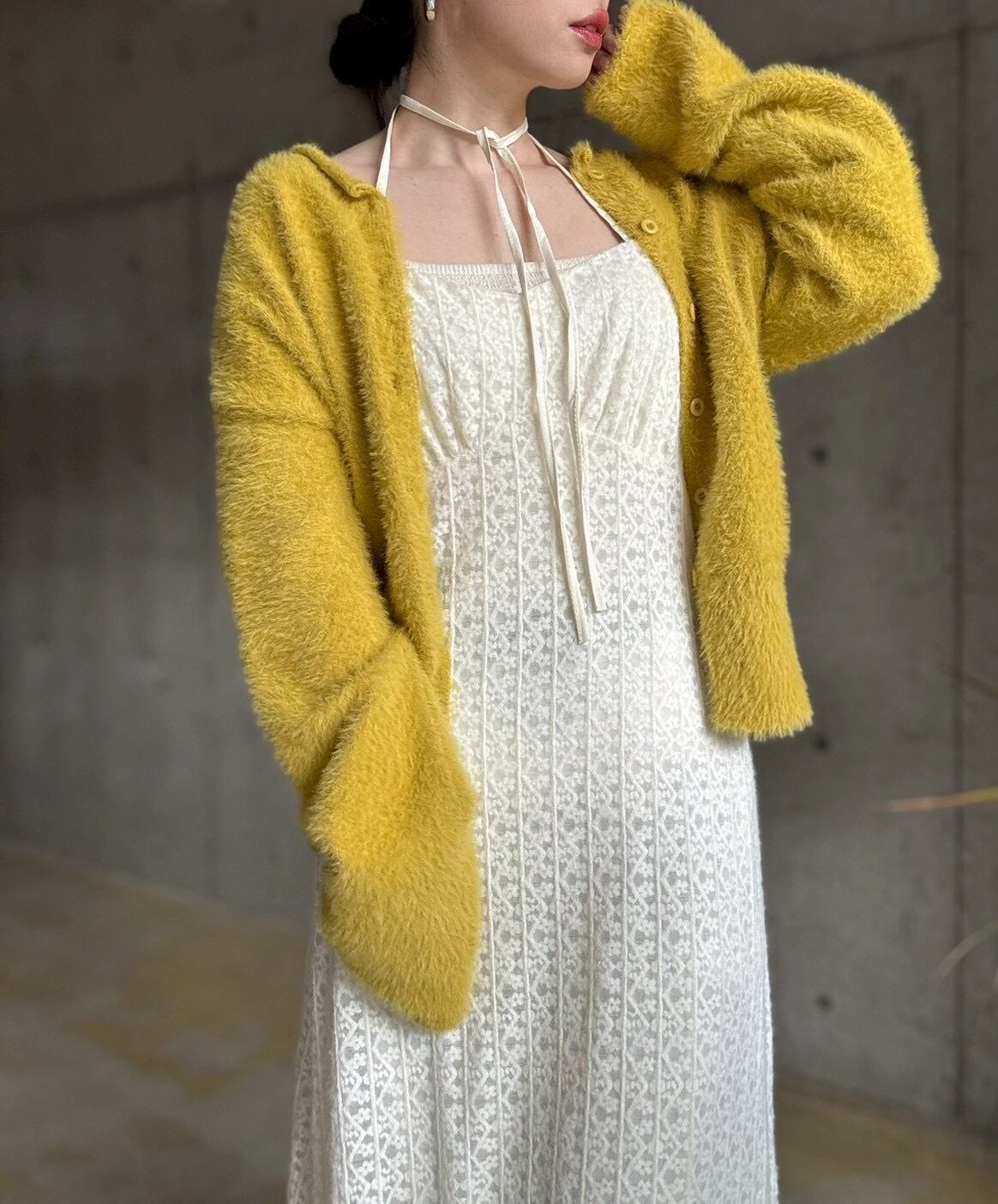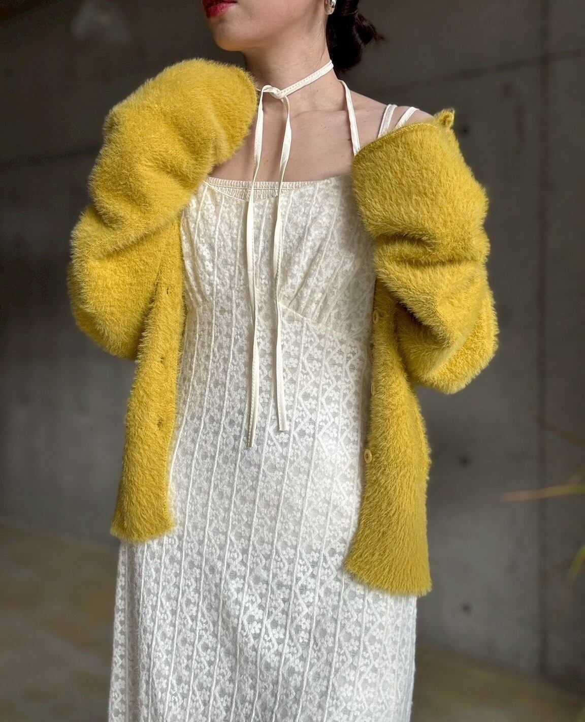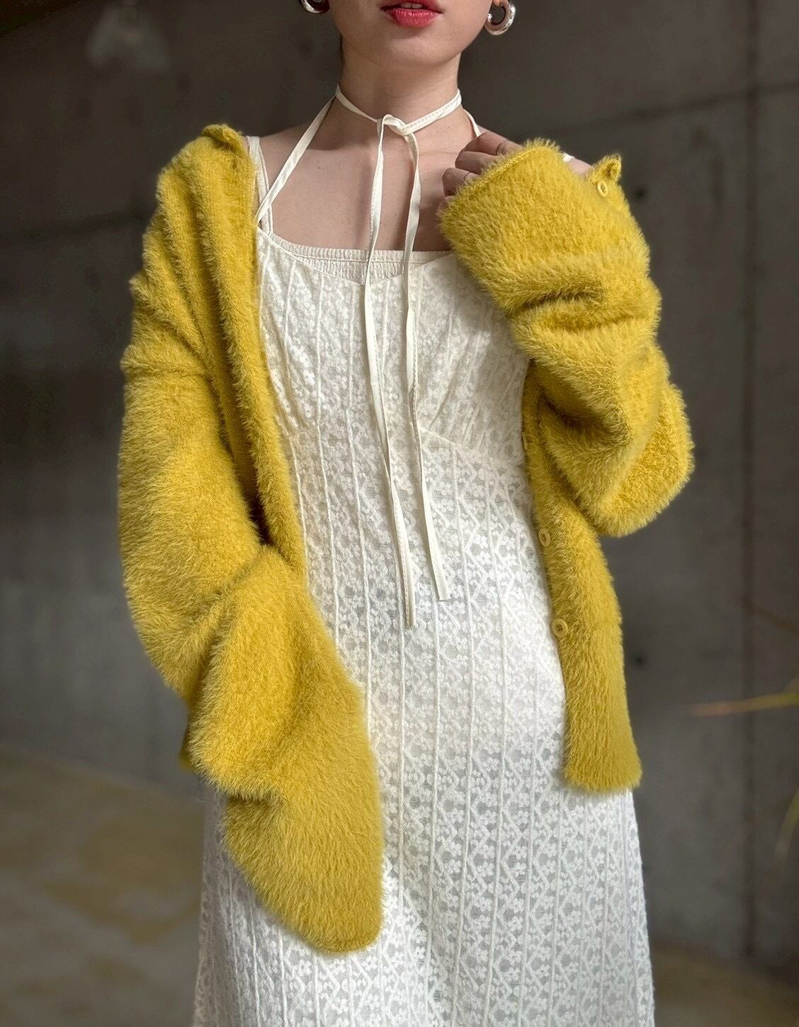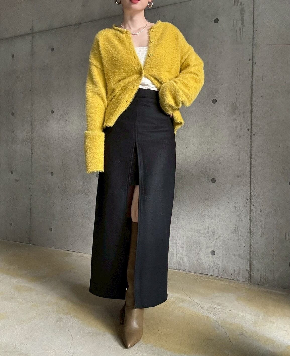 【1/20 21:00〜】ロールネックシャギーニットカーディガン【マスタード】