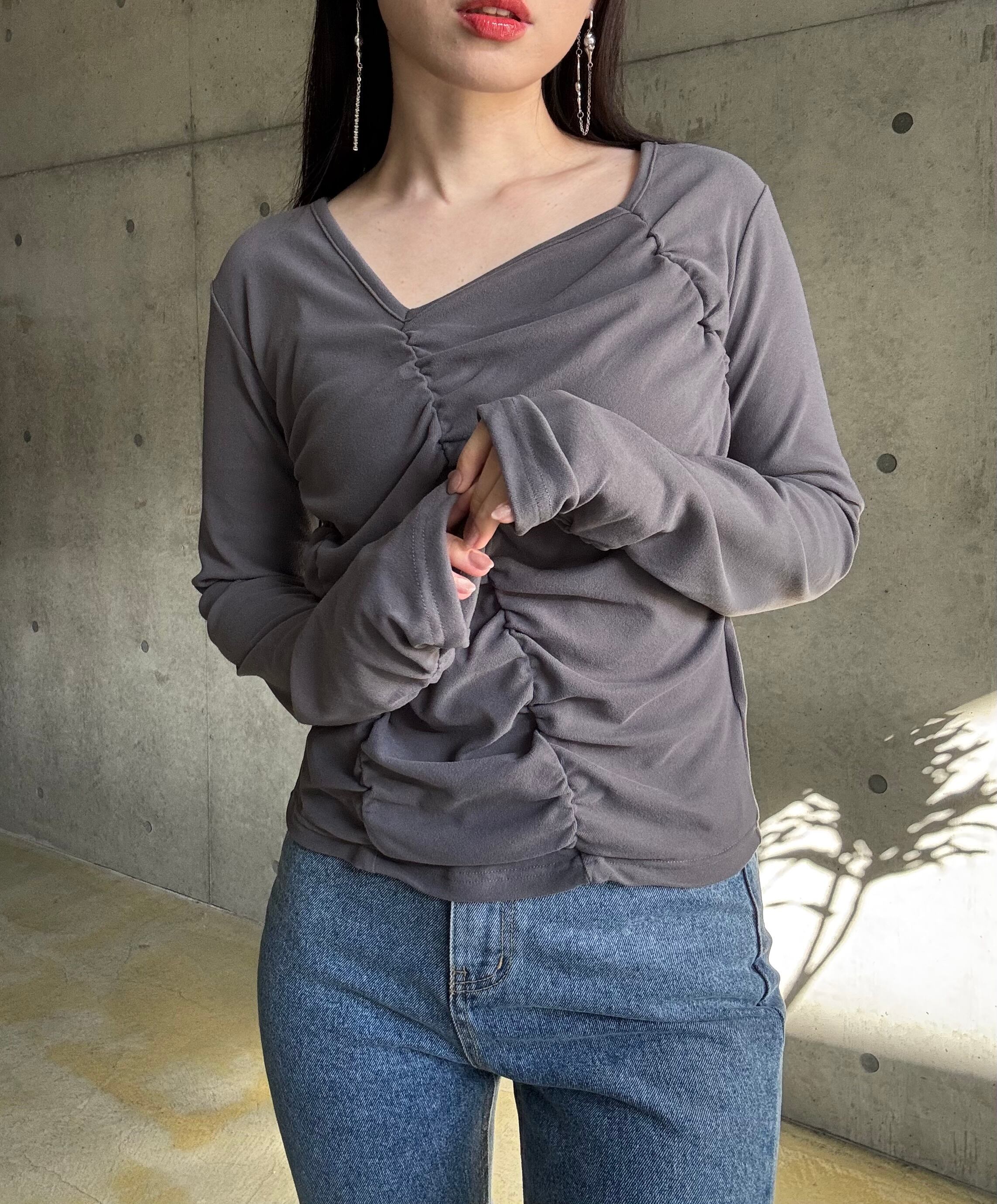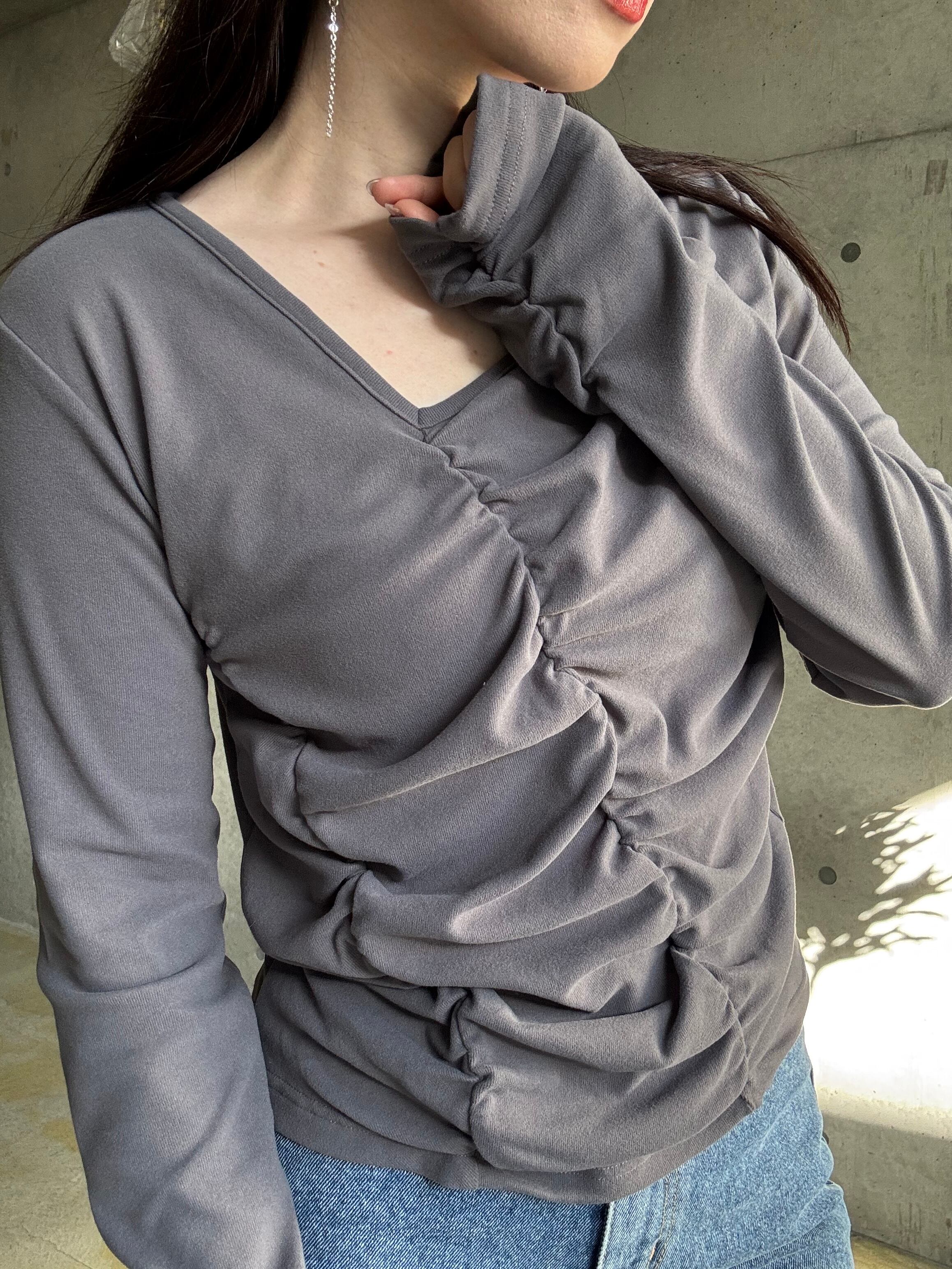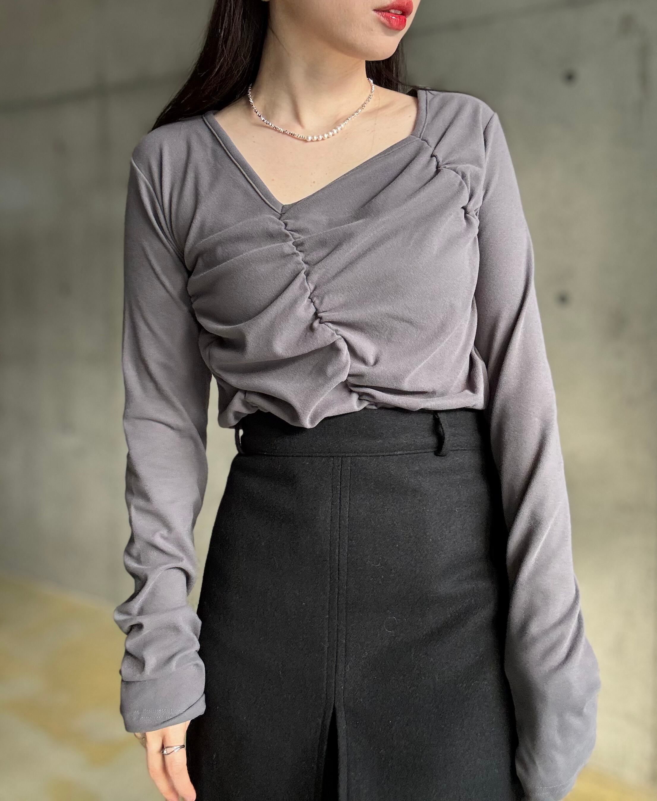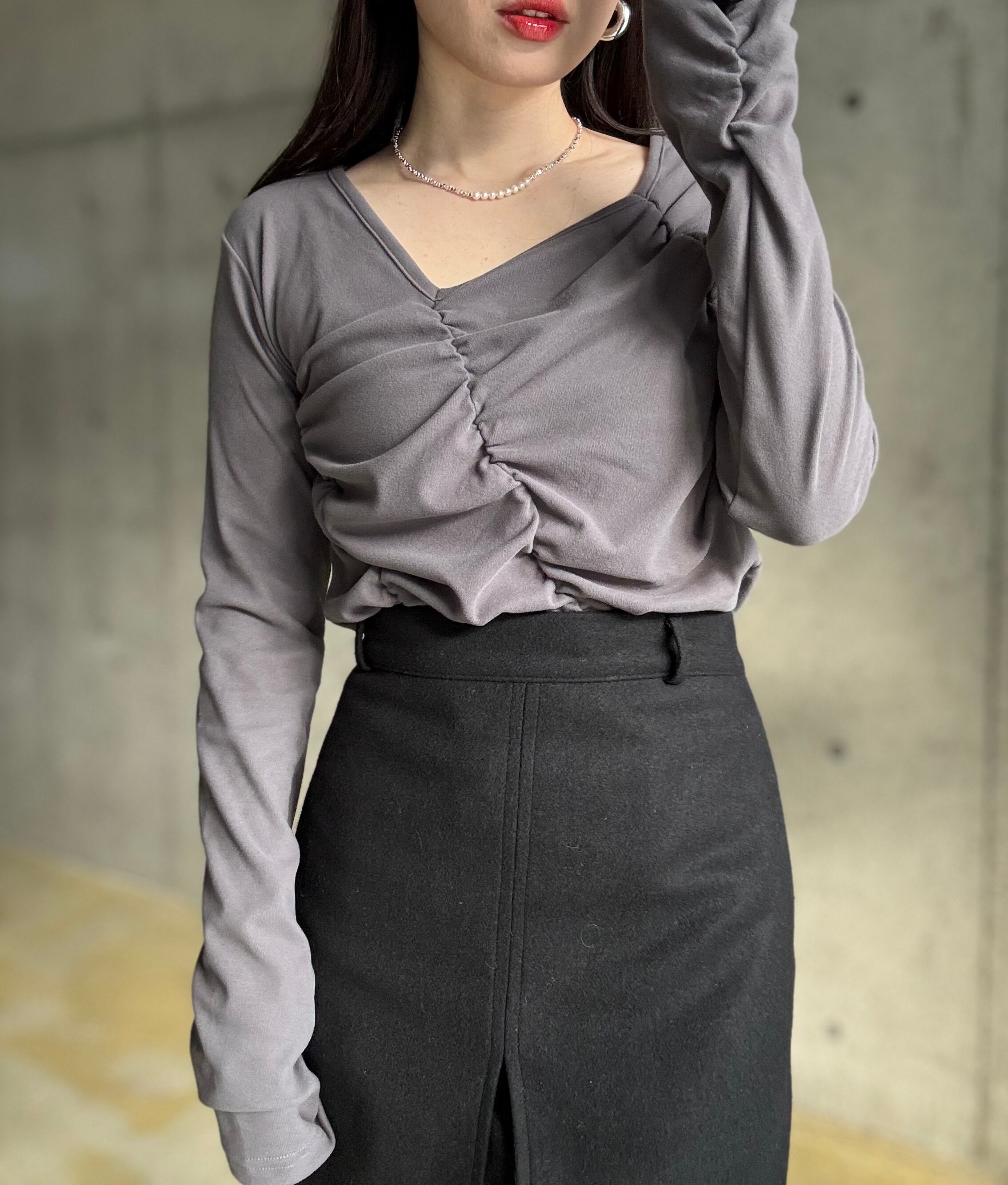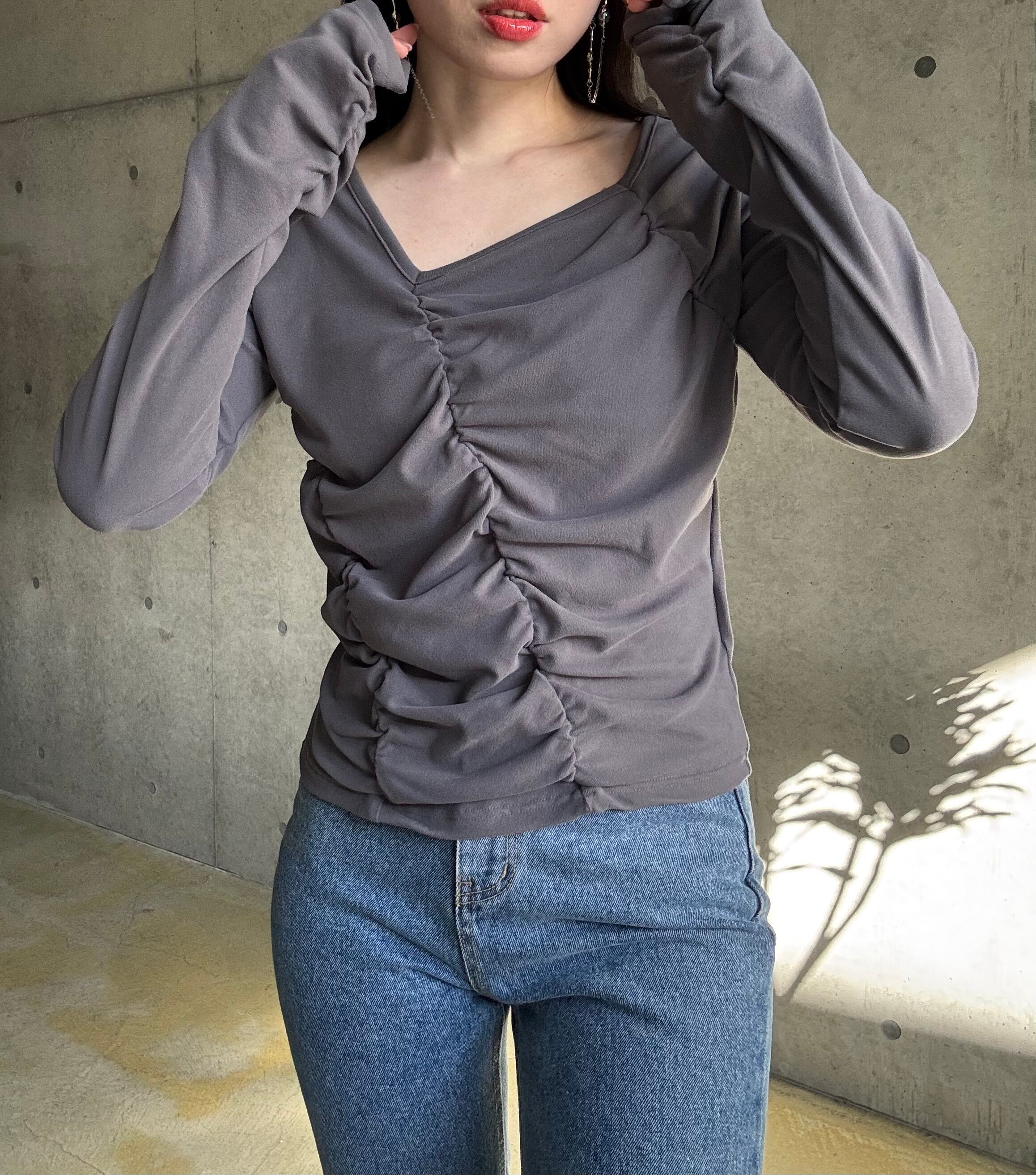 一度触ったらやみつき♡ふんわり起毛感のある、なめらかでうっとりしちゃう肌触りのシャーリングデザイントップス✨