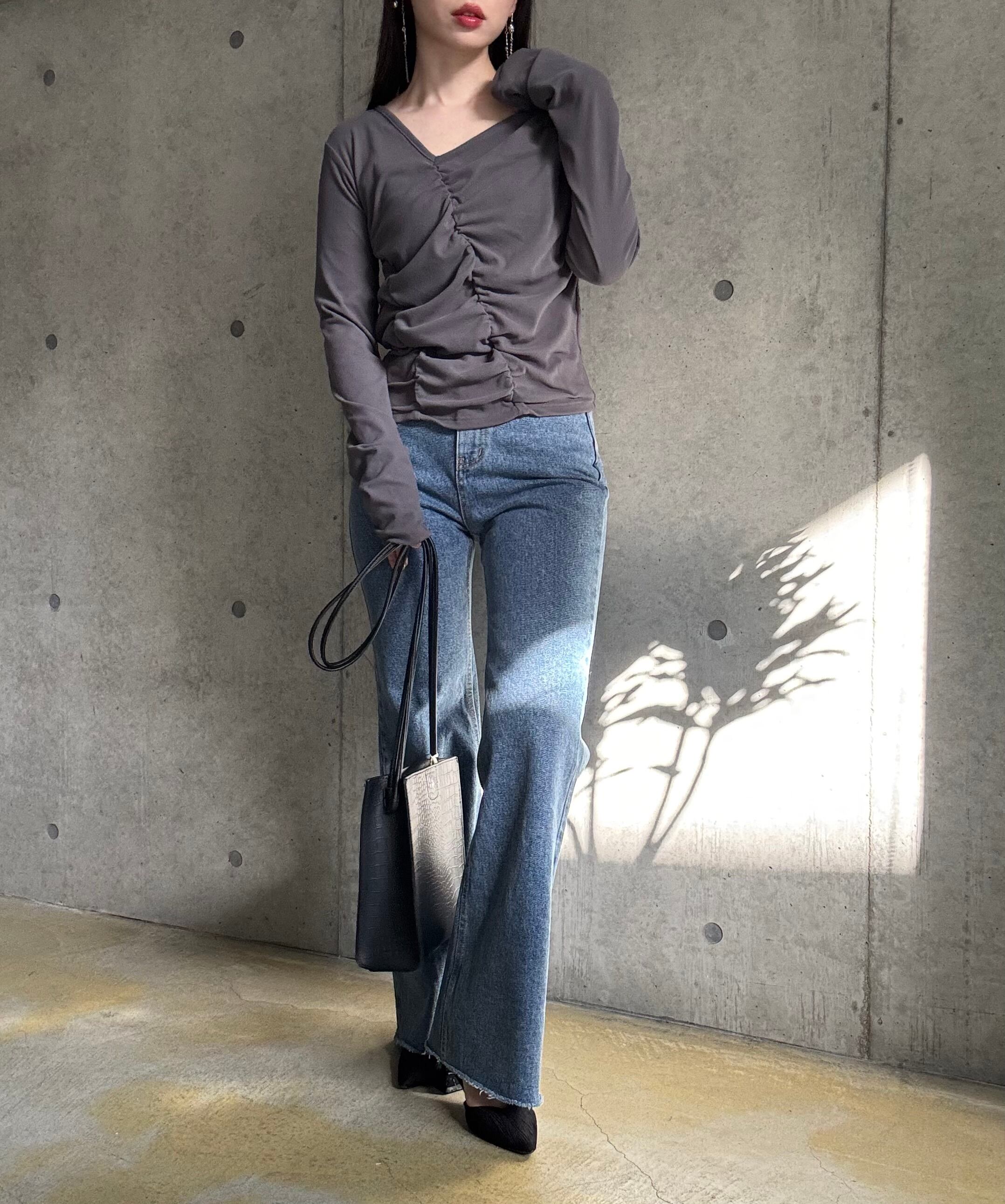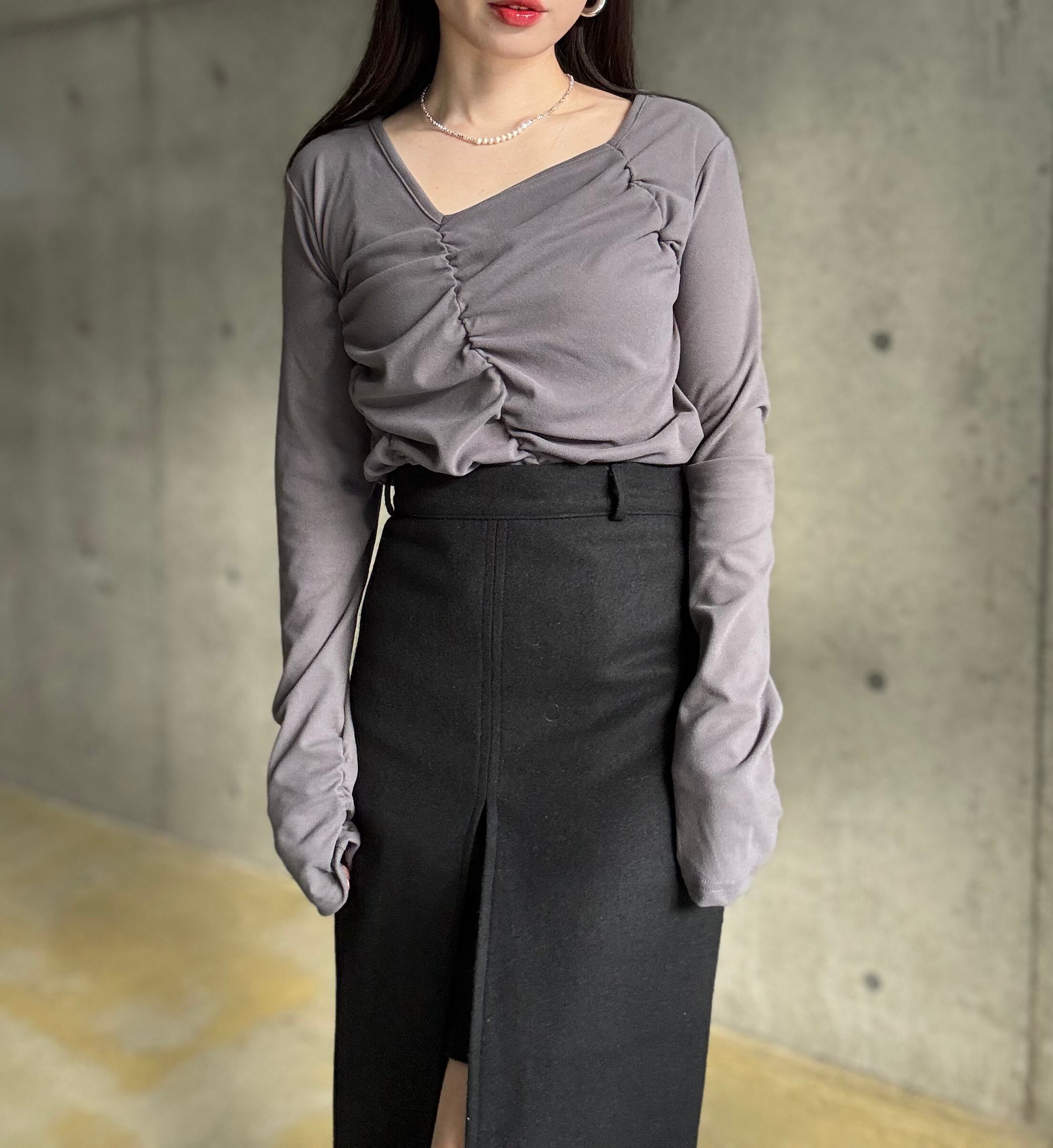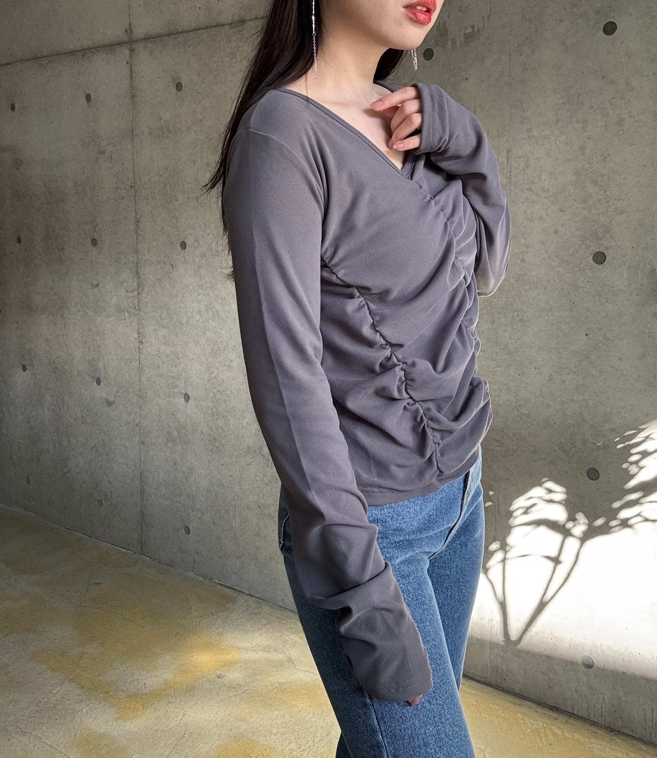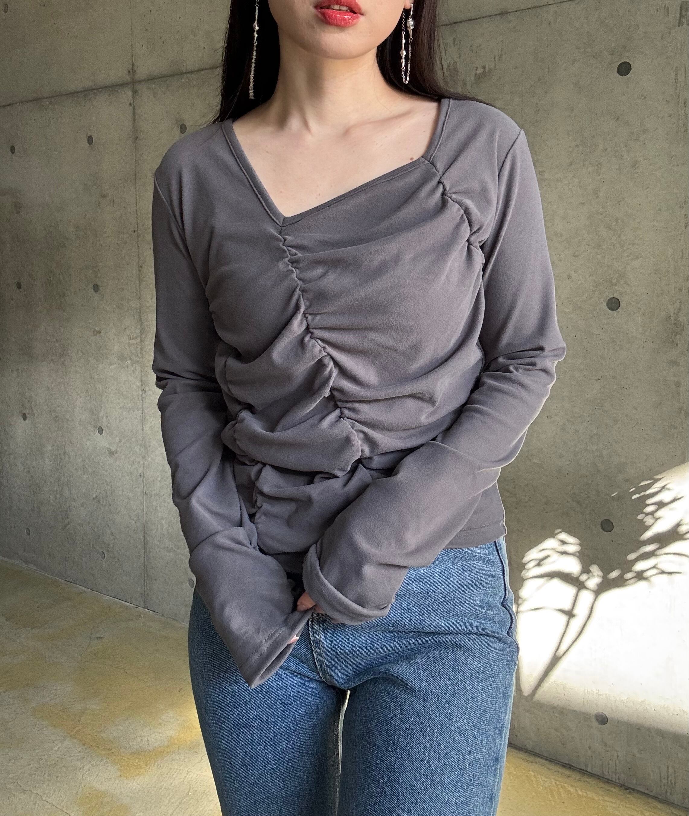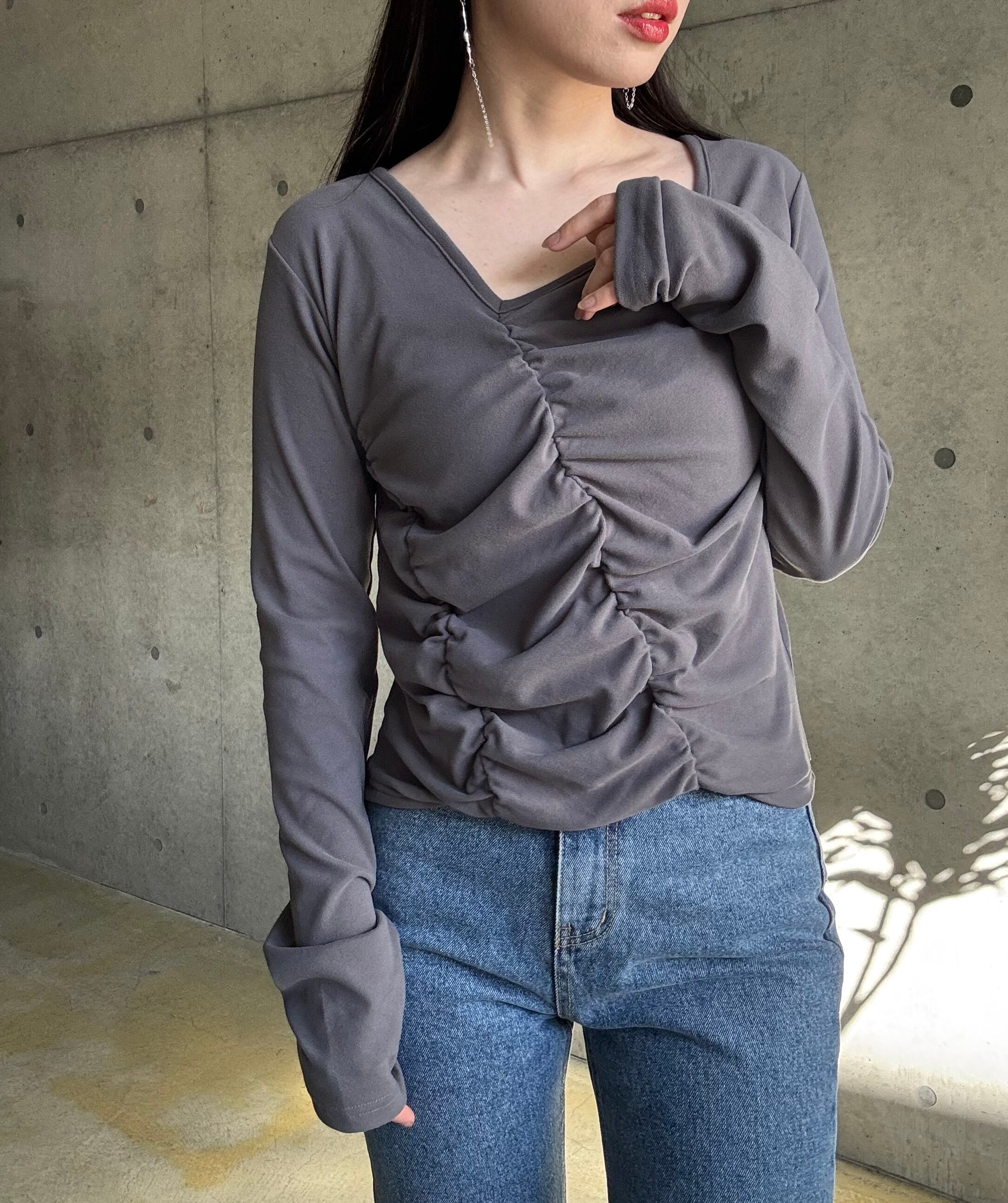 一度触ったらやみつき♡ふんわり起毛感のある、なめらかでうっとりしちゃう肌触りのシャーリングデザイントップス✨
