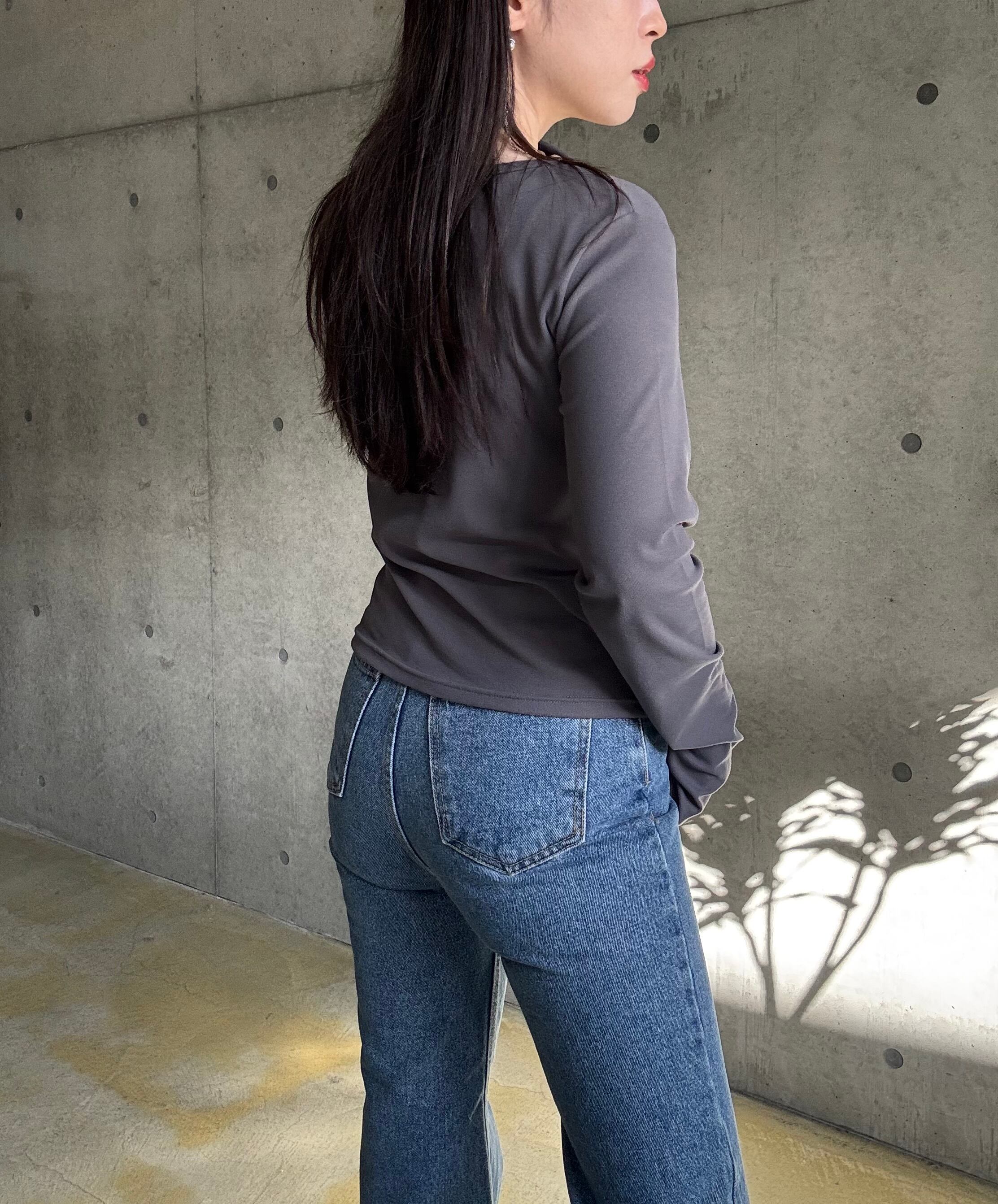 ネックは着るだけでこなれ感を演出できるアシンメトリーデザイン♪