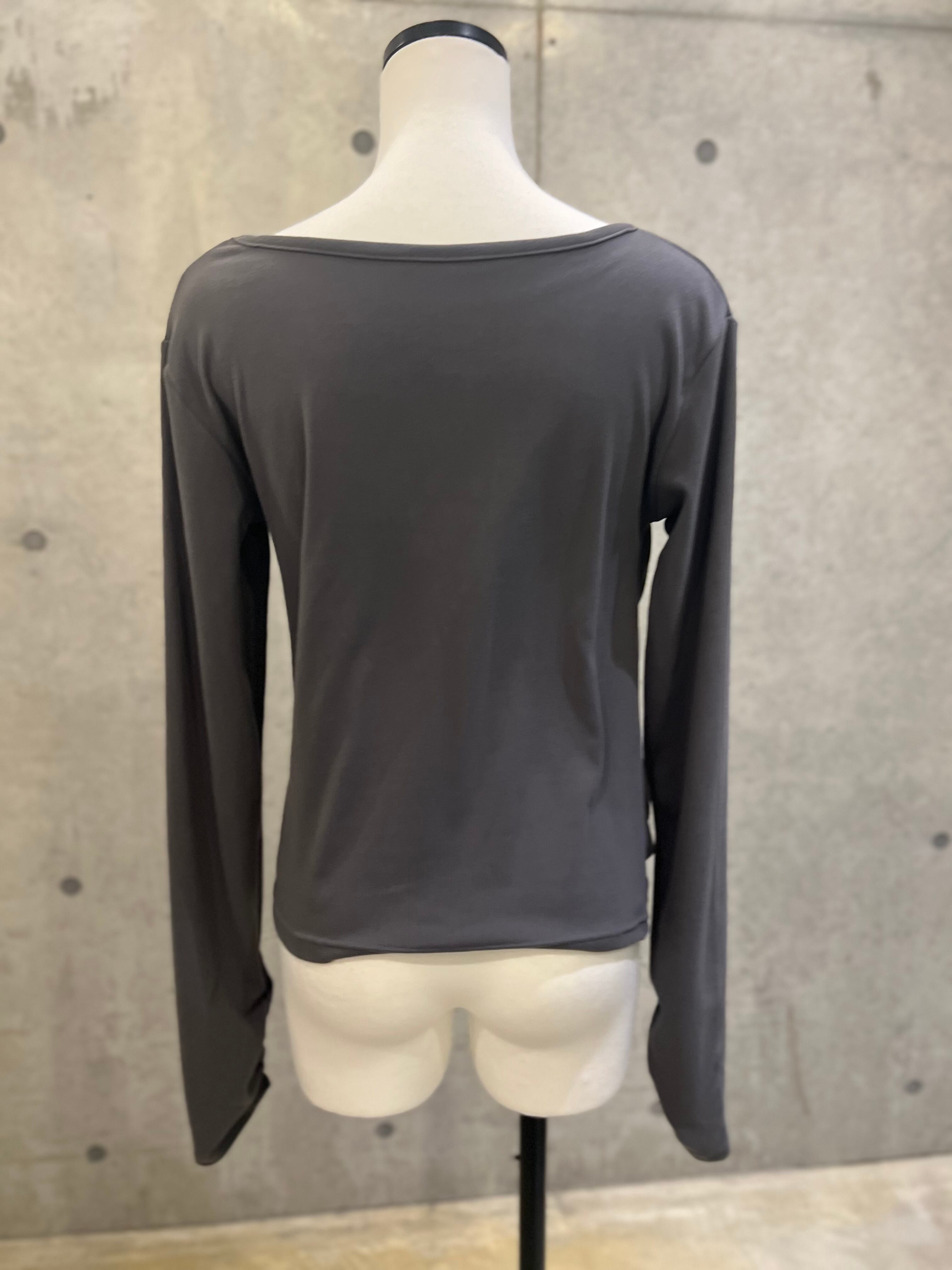 ふわとろアシメネックシャーリングプルオーバー【チャコール】