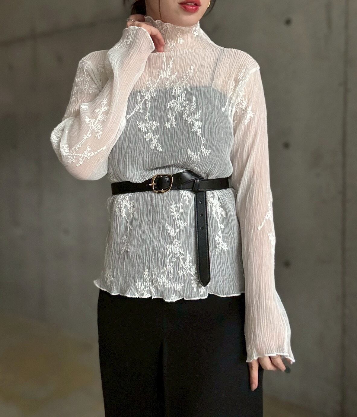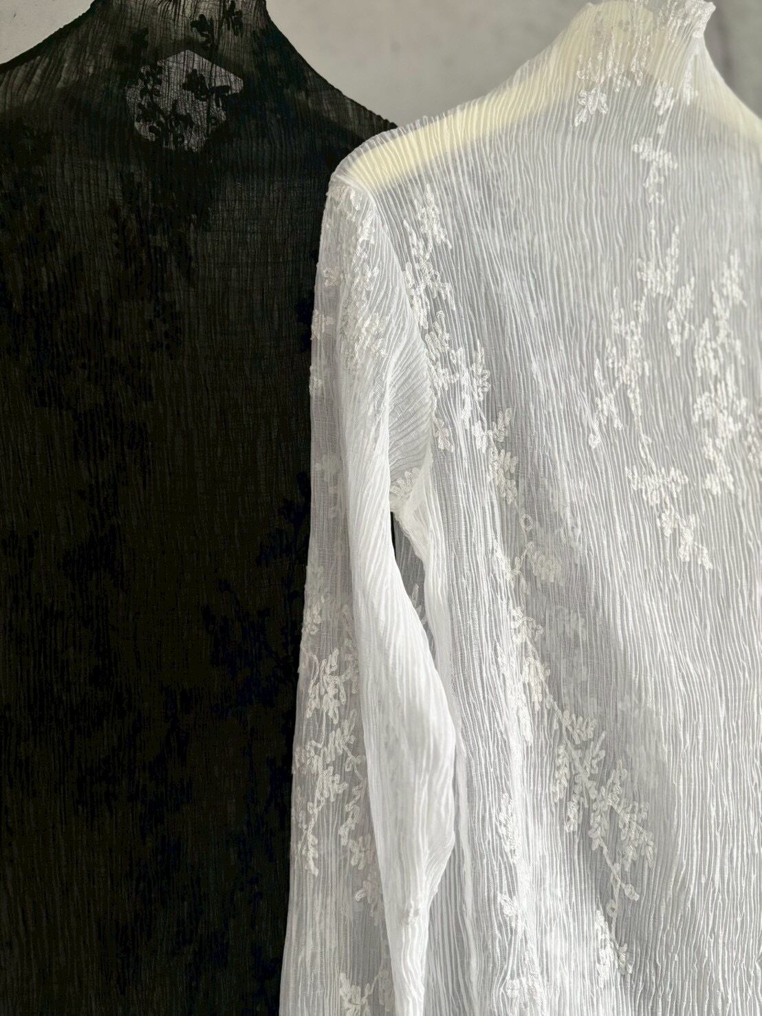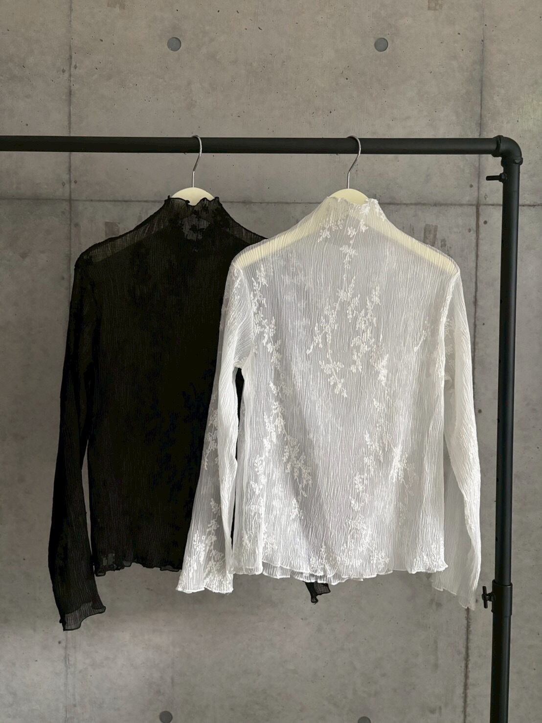 【即納】刺繍デザインプリーツ加工シアーtops【ホワイト】